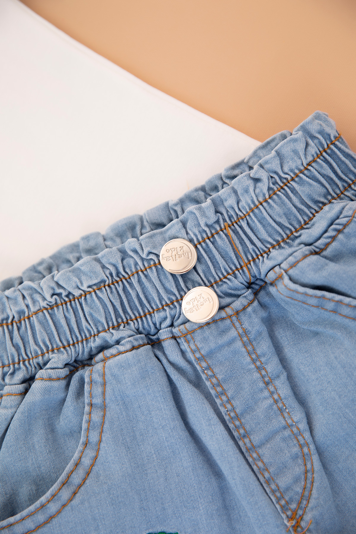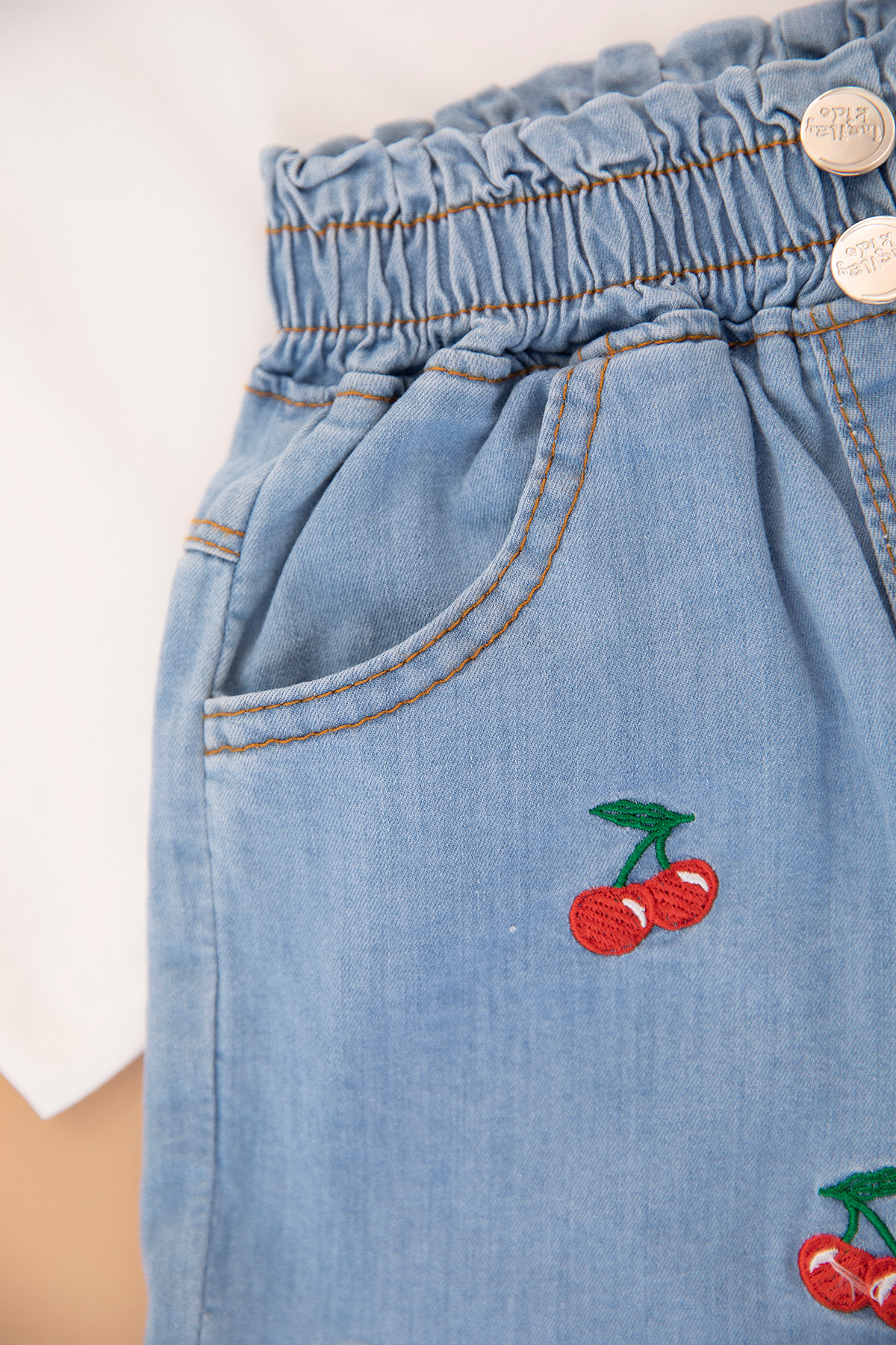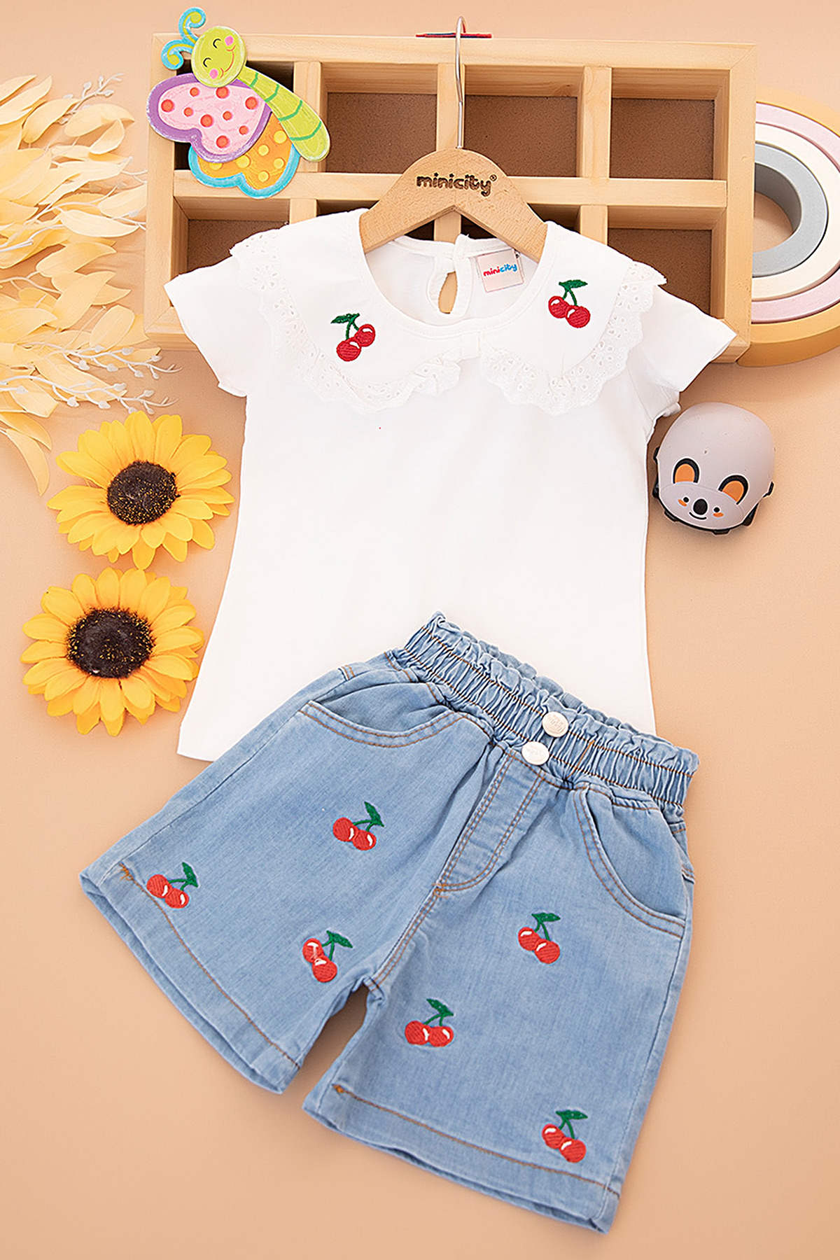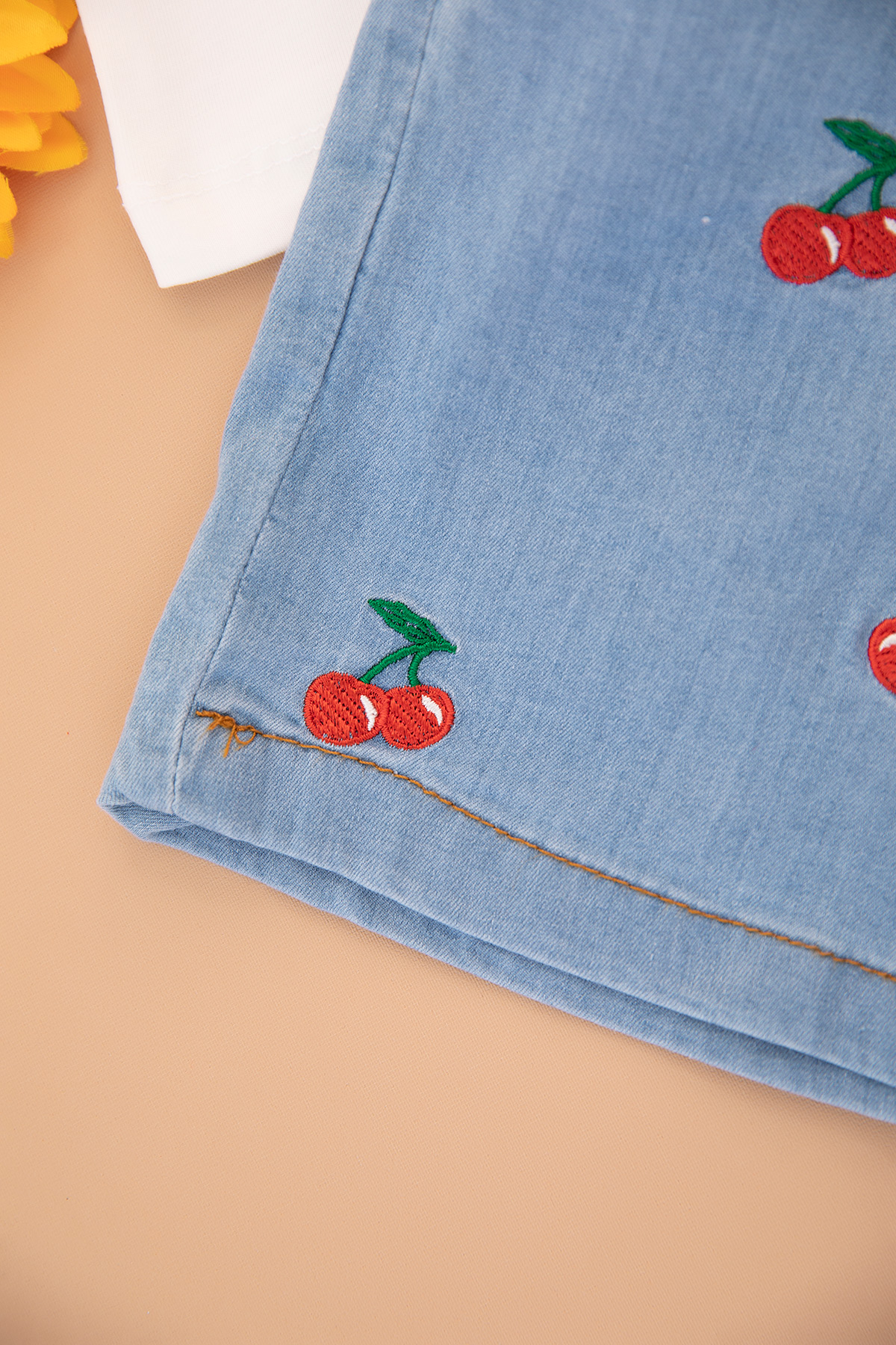 Kız Çocuk Kiraz Nakışlı Badi Kot Şort Takım - 2516 (3-7 Yaş)