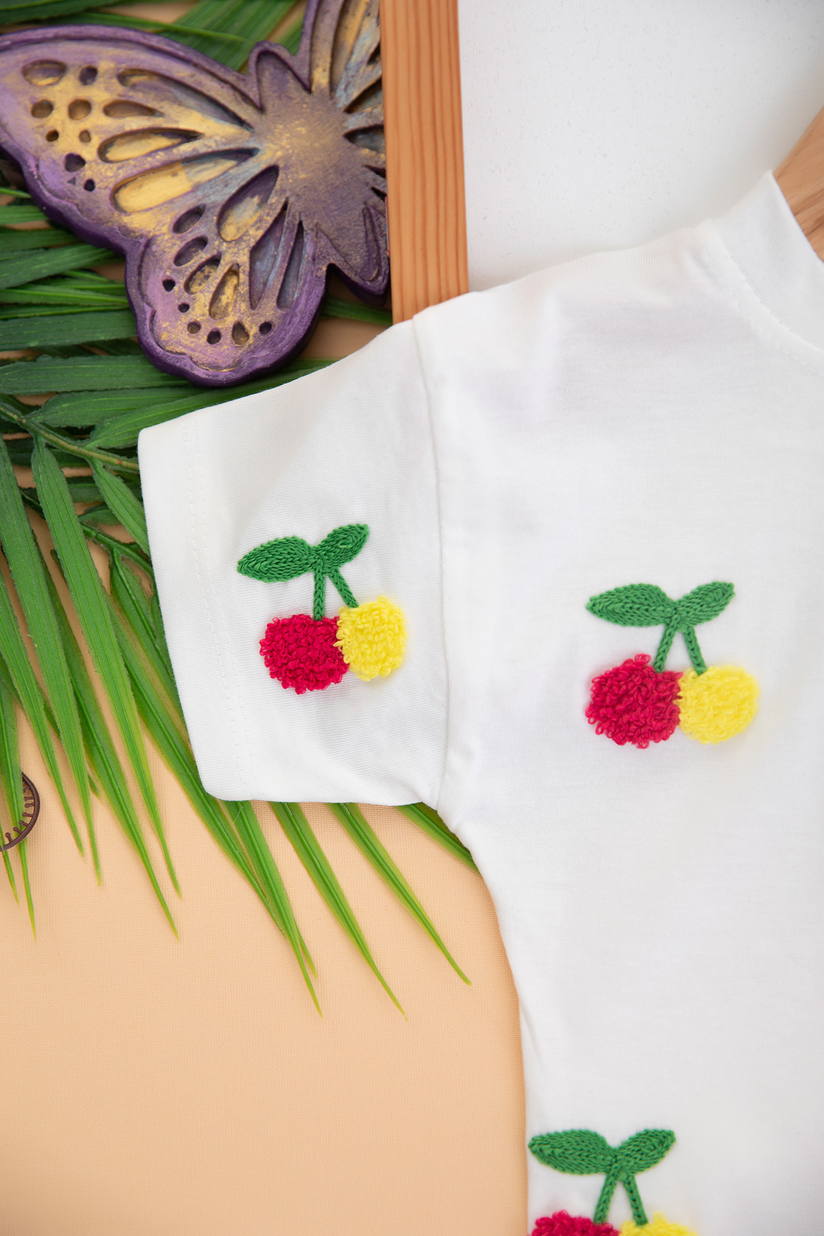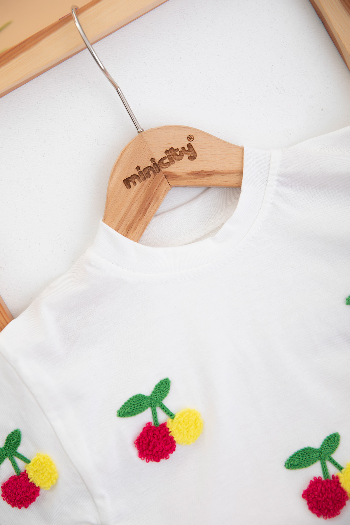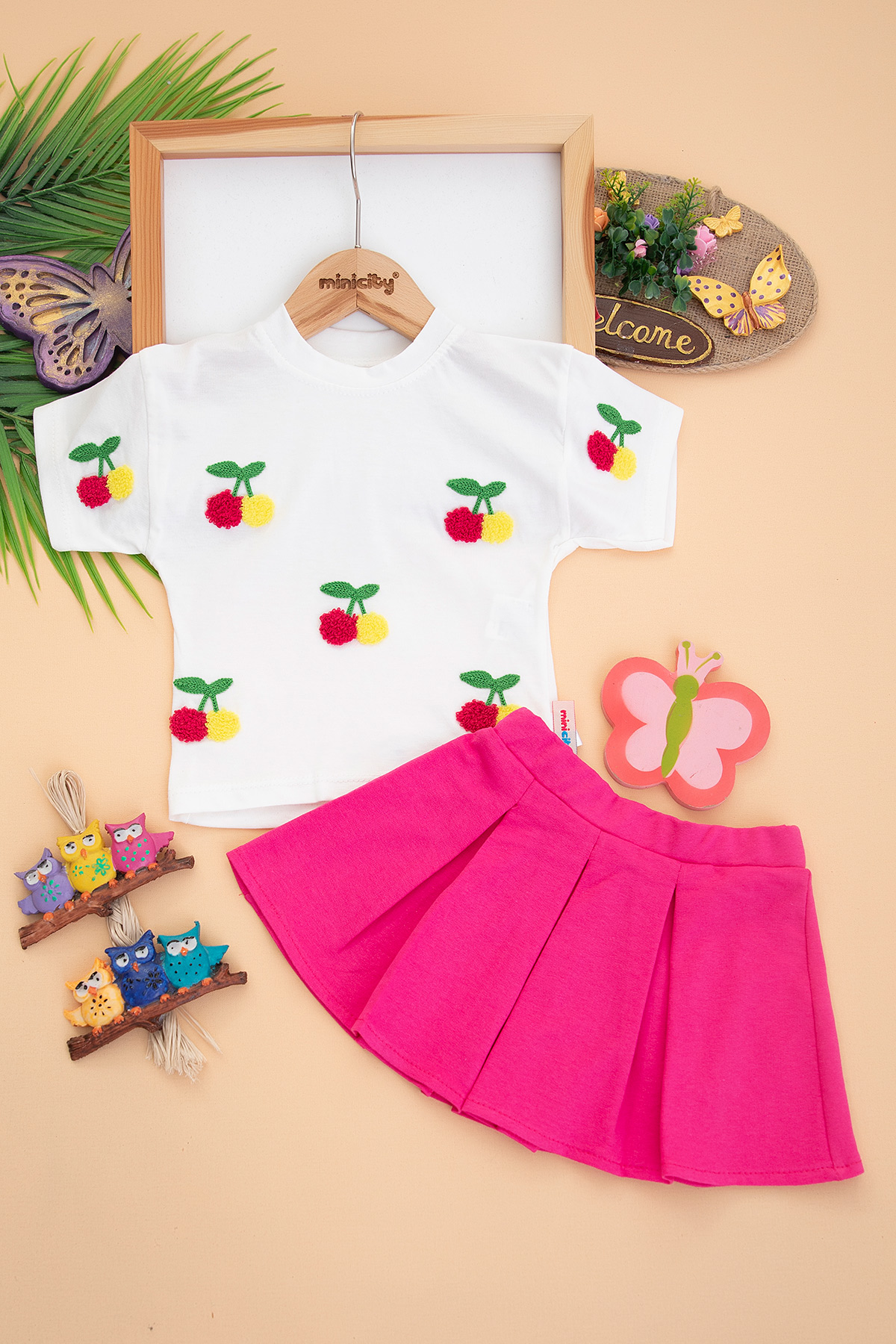 Kız Çocuk Kiraz Nakışlı Etekli Takım - 3011 (1-4 Yaş)
