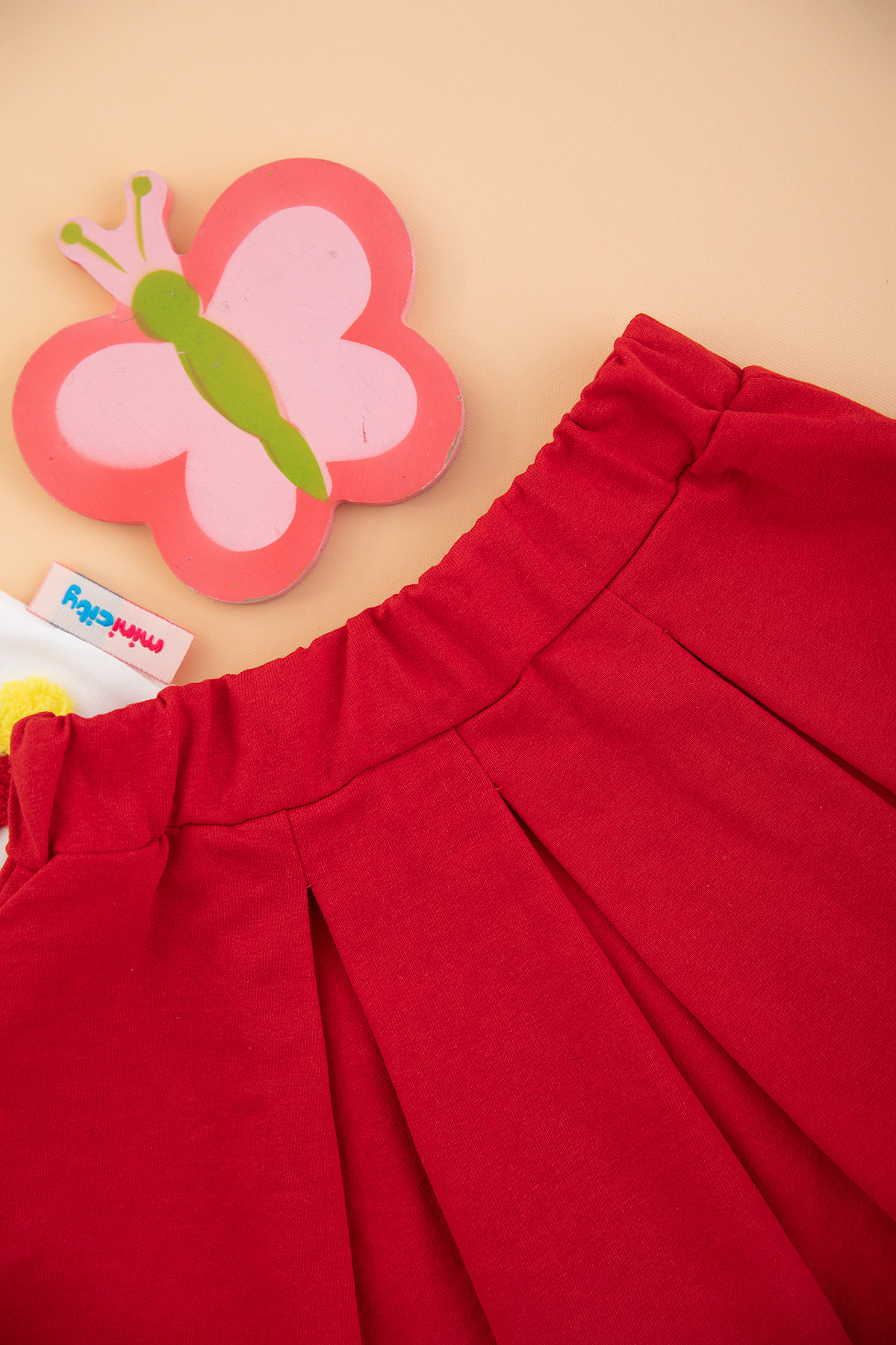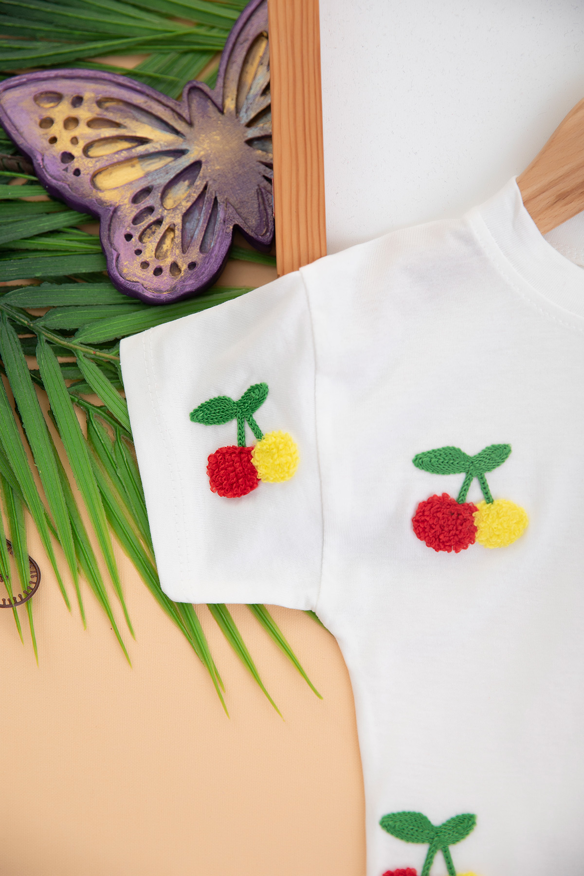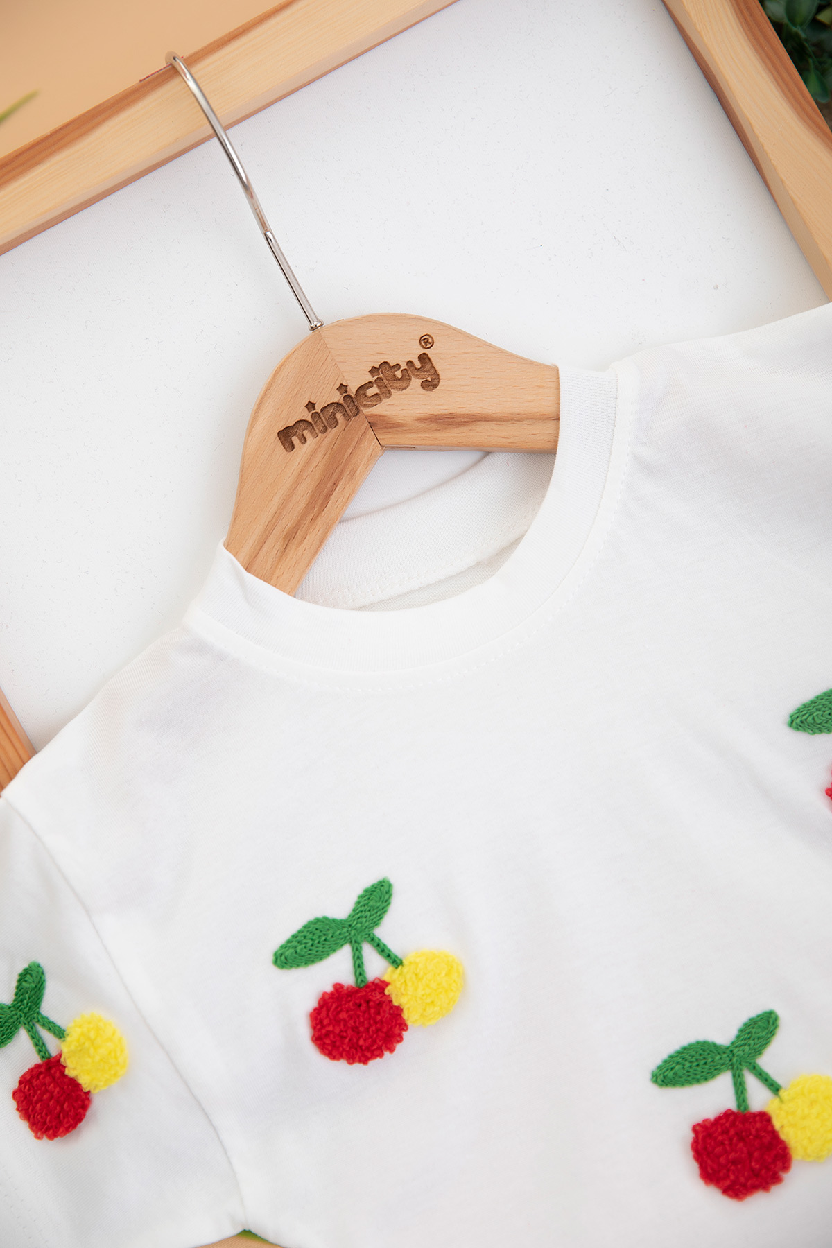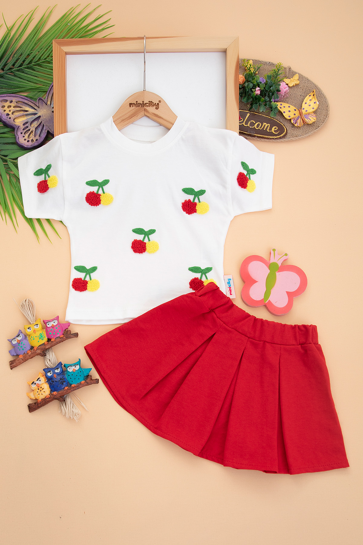 Kız Çocuk Kiraz Nakışlı Etekli Takım - 3011 (1-4 Yaş)