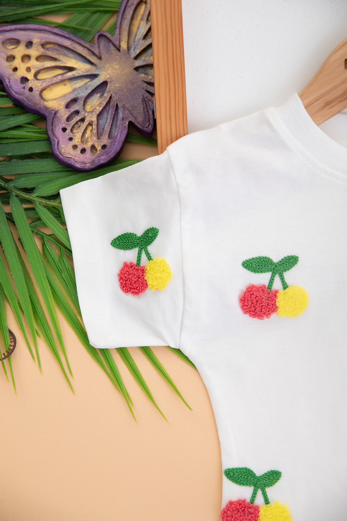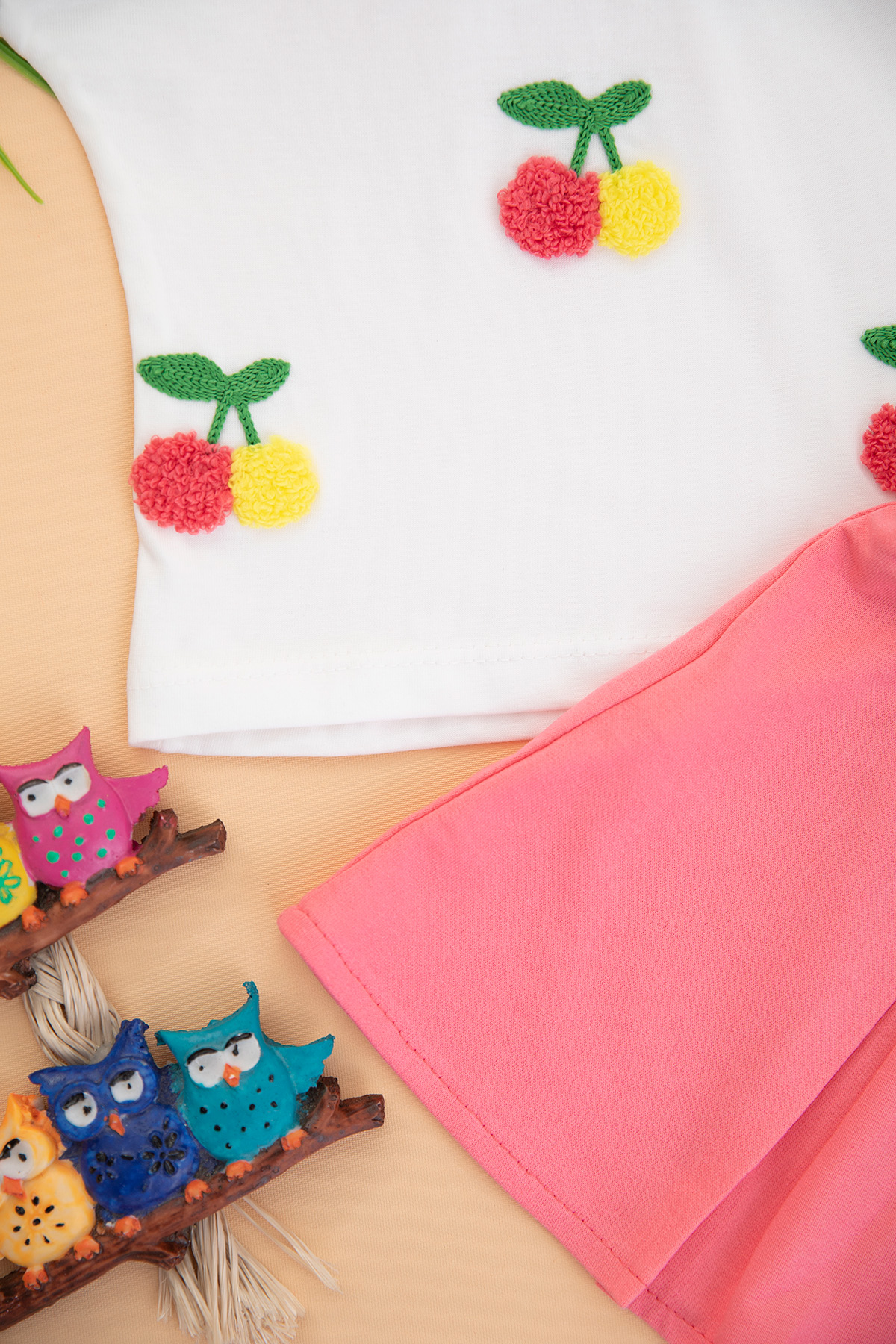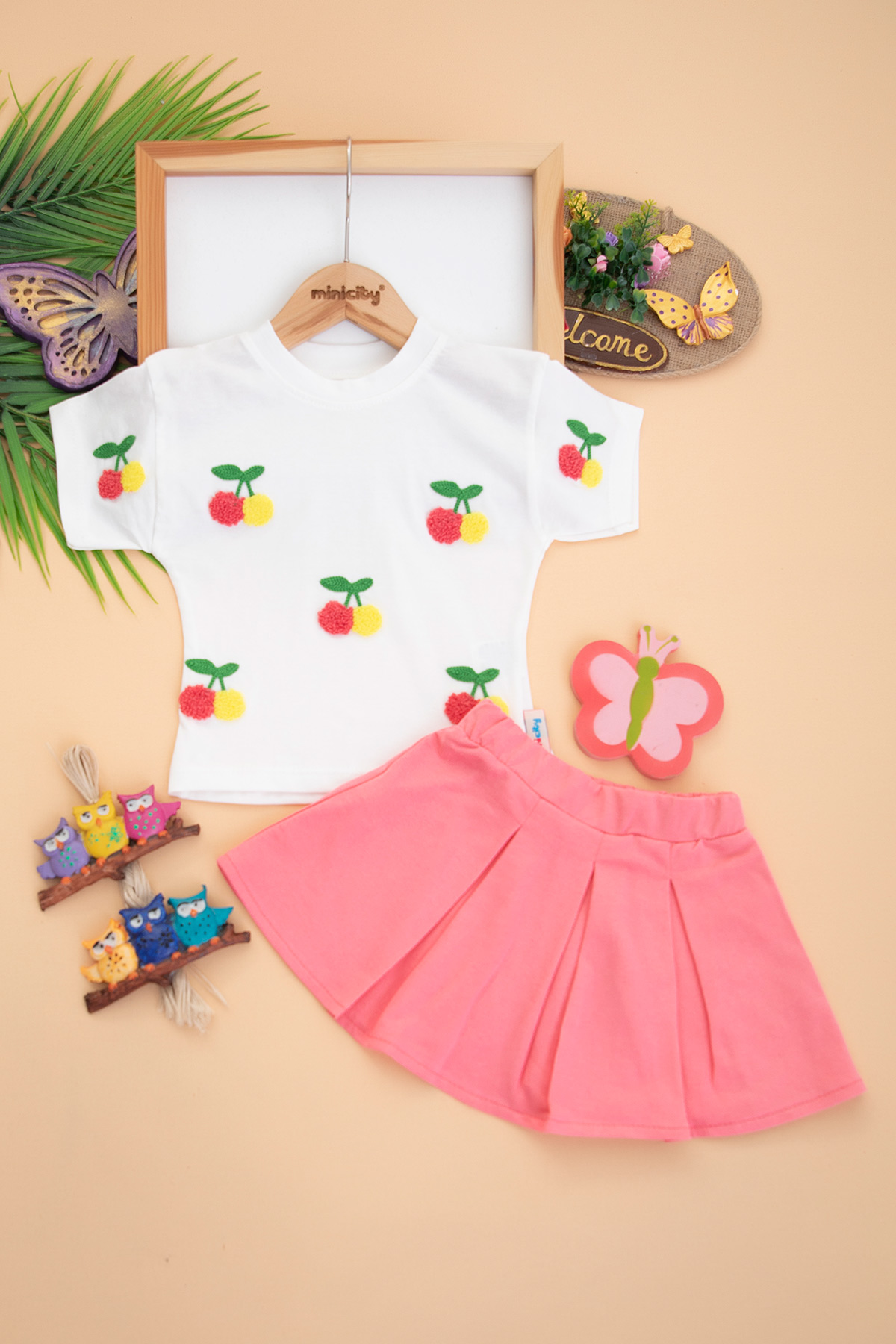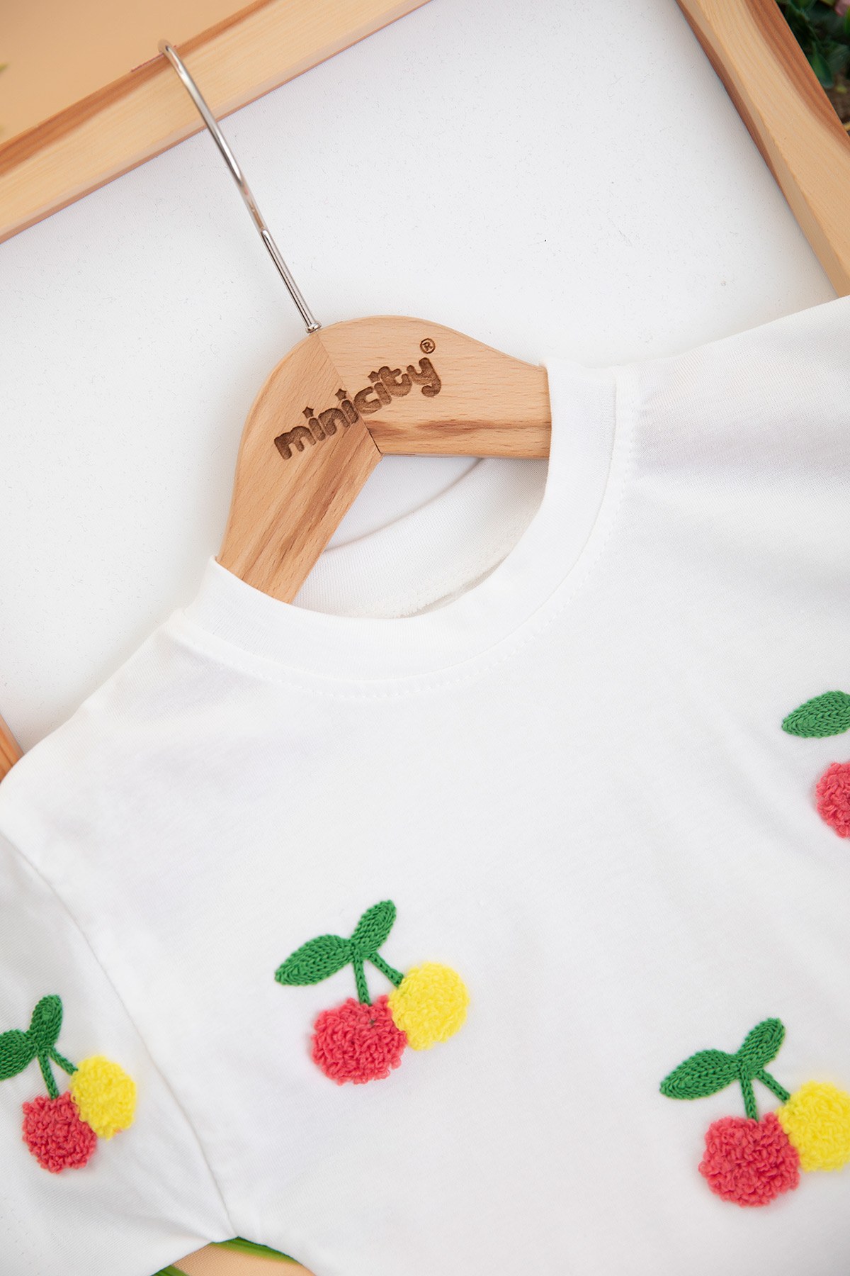 Kız Çocuk Kiraz Nakışlı Etekli Takım - 3011 (1-4 Yaş)