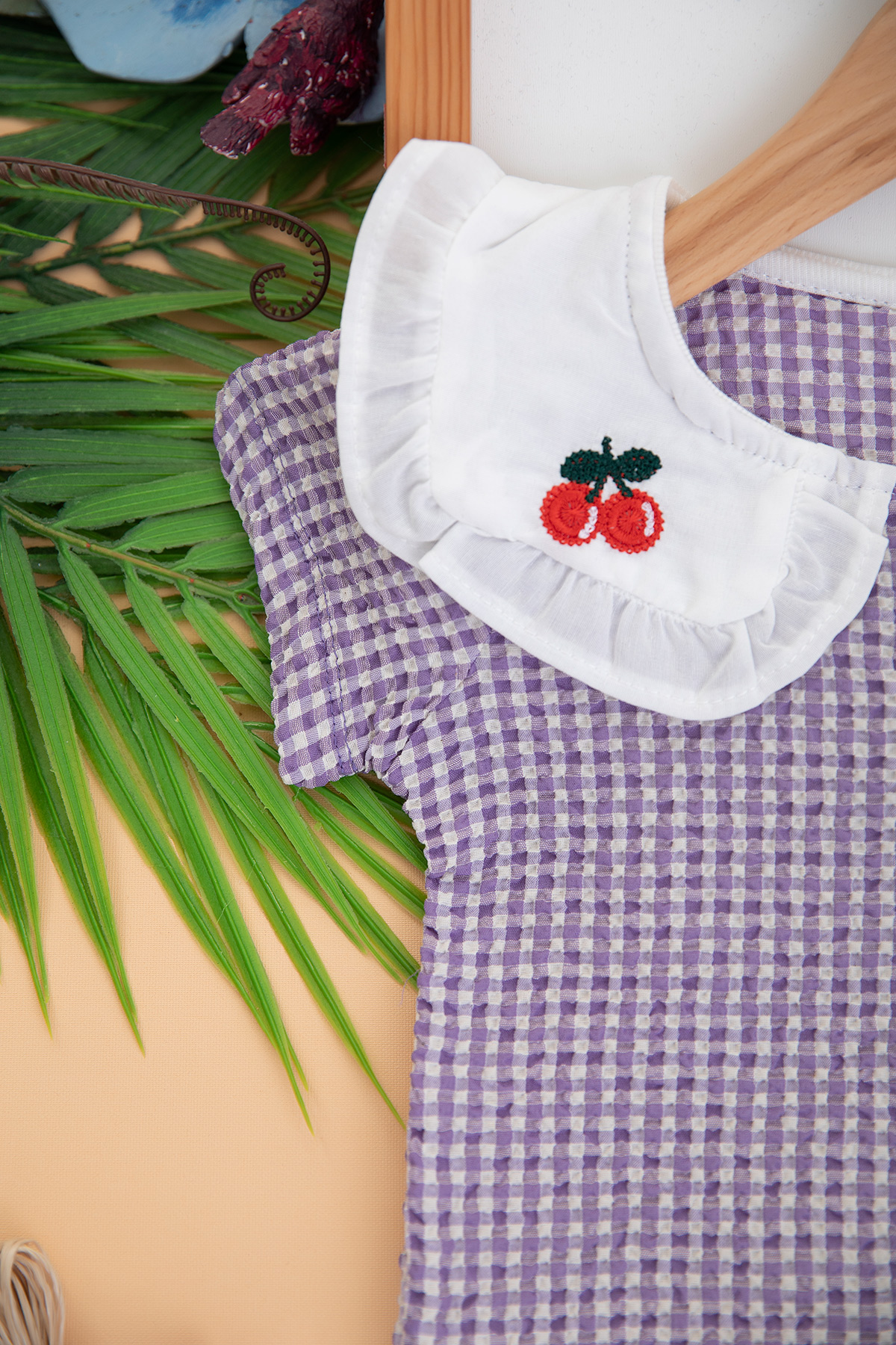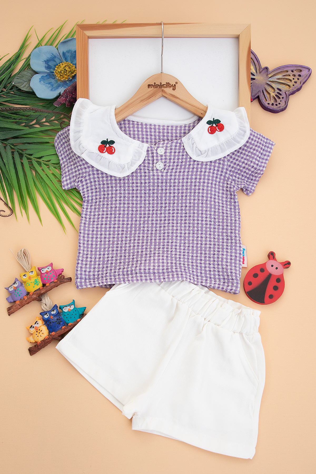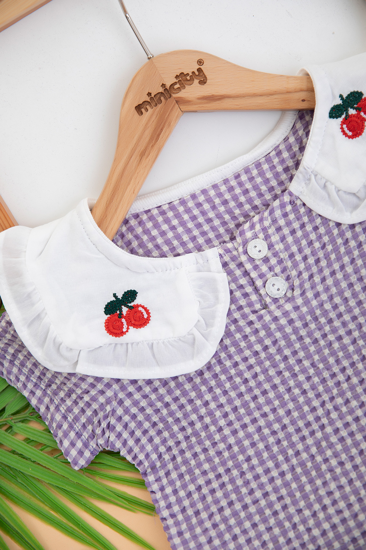 Kız Çocuk Kiraz Nakışlı Gömlekli Takım - 1105 (2-5 Yaş)