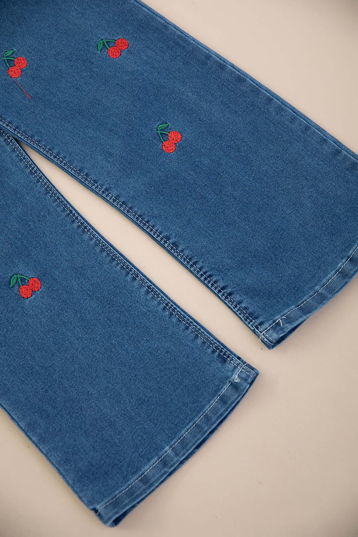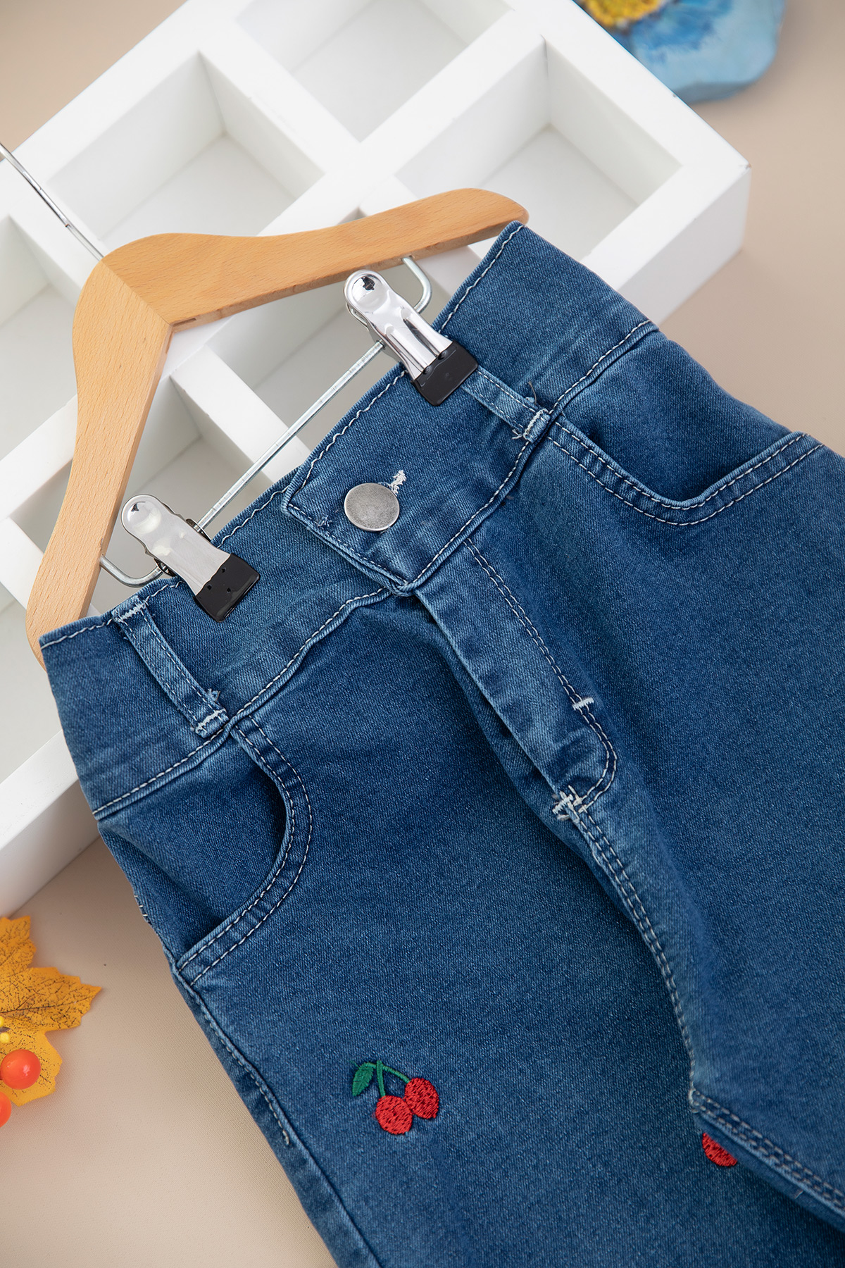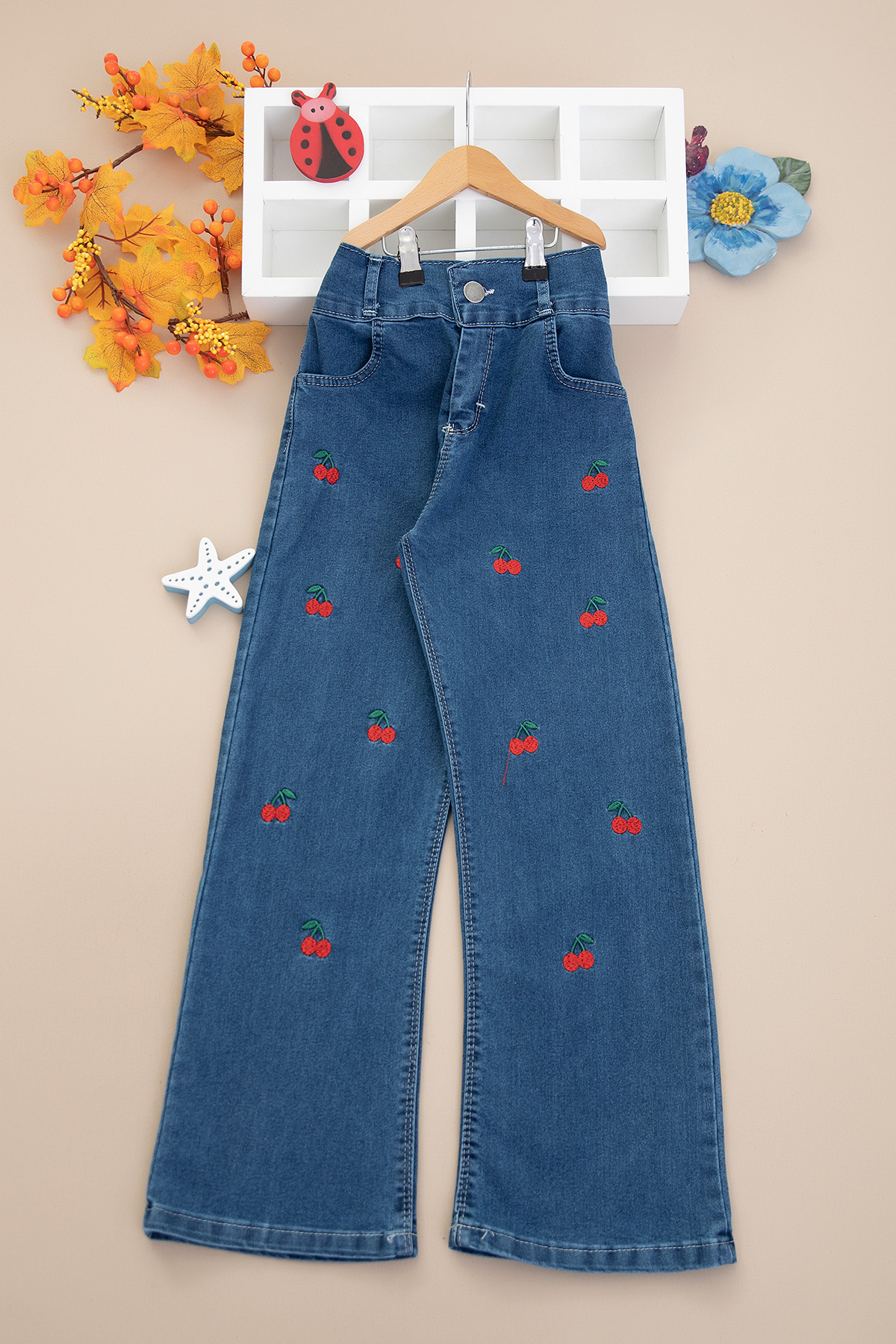 Kız Çocuk Kiraz Nakışlı Kot Pantolon - 4183 (2-9 Yaş)