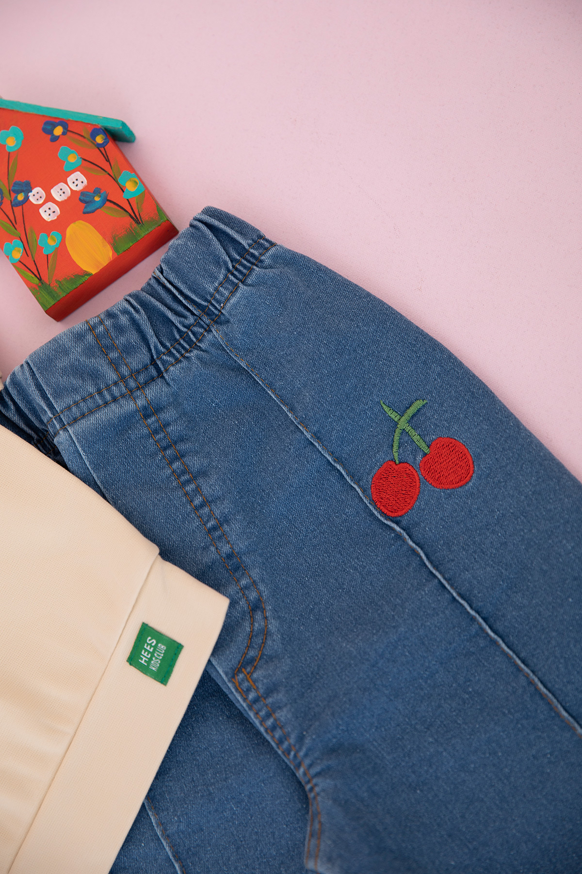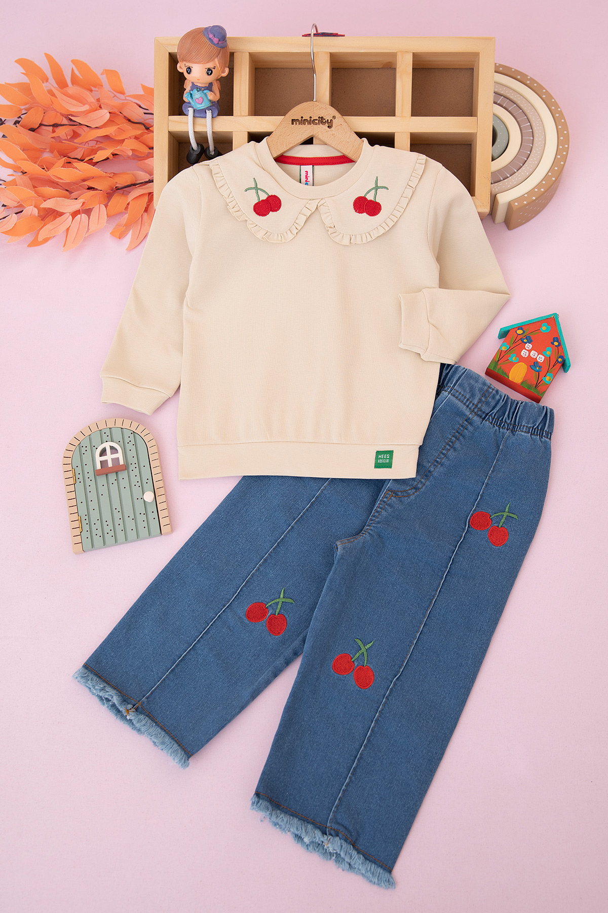 Kız Çocuk Kiraz Nakışlı Kot Pantolon Takım (2-7 Yaş)