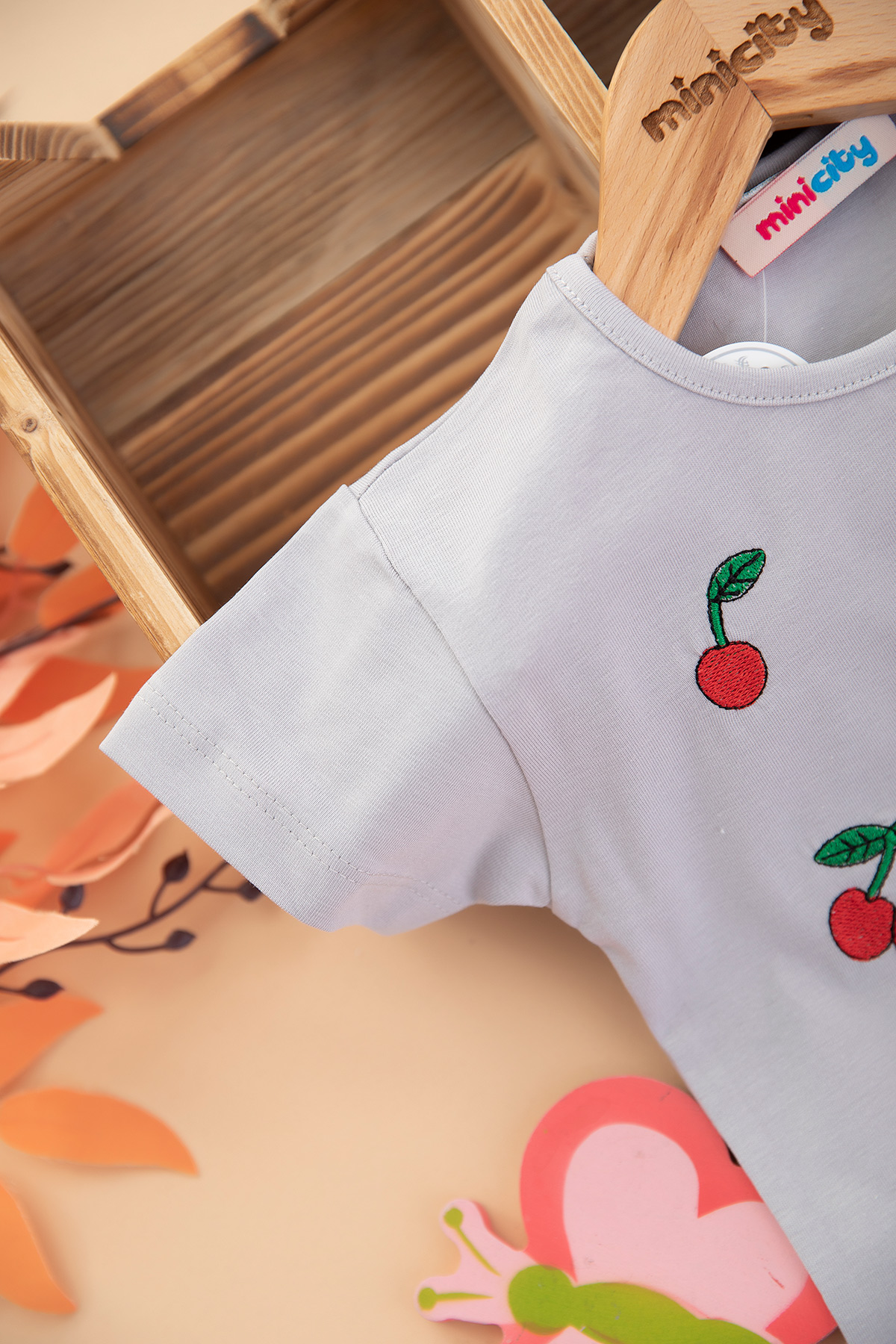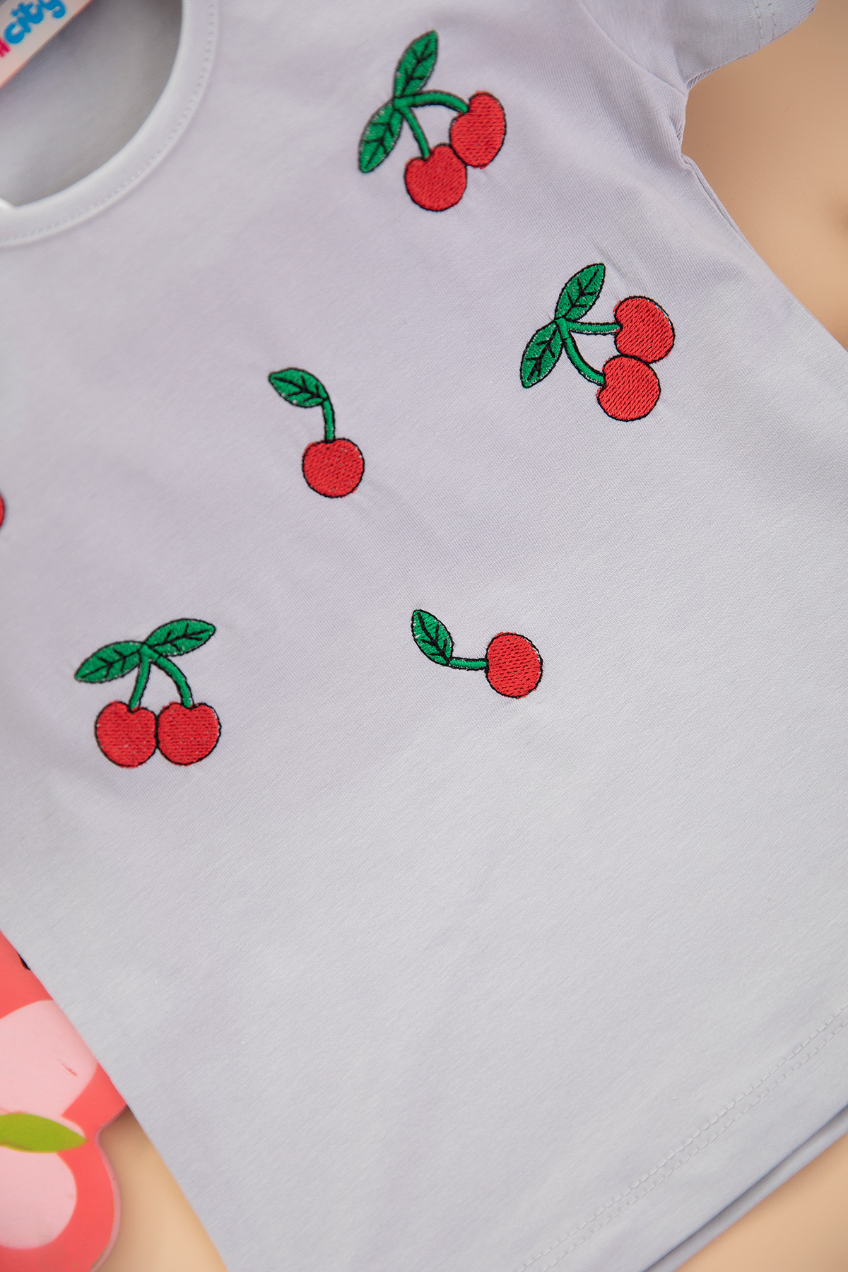 Kız Çocuk Kiraz Nakışlı Likralı Badi -540 (3-11 Yaş)