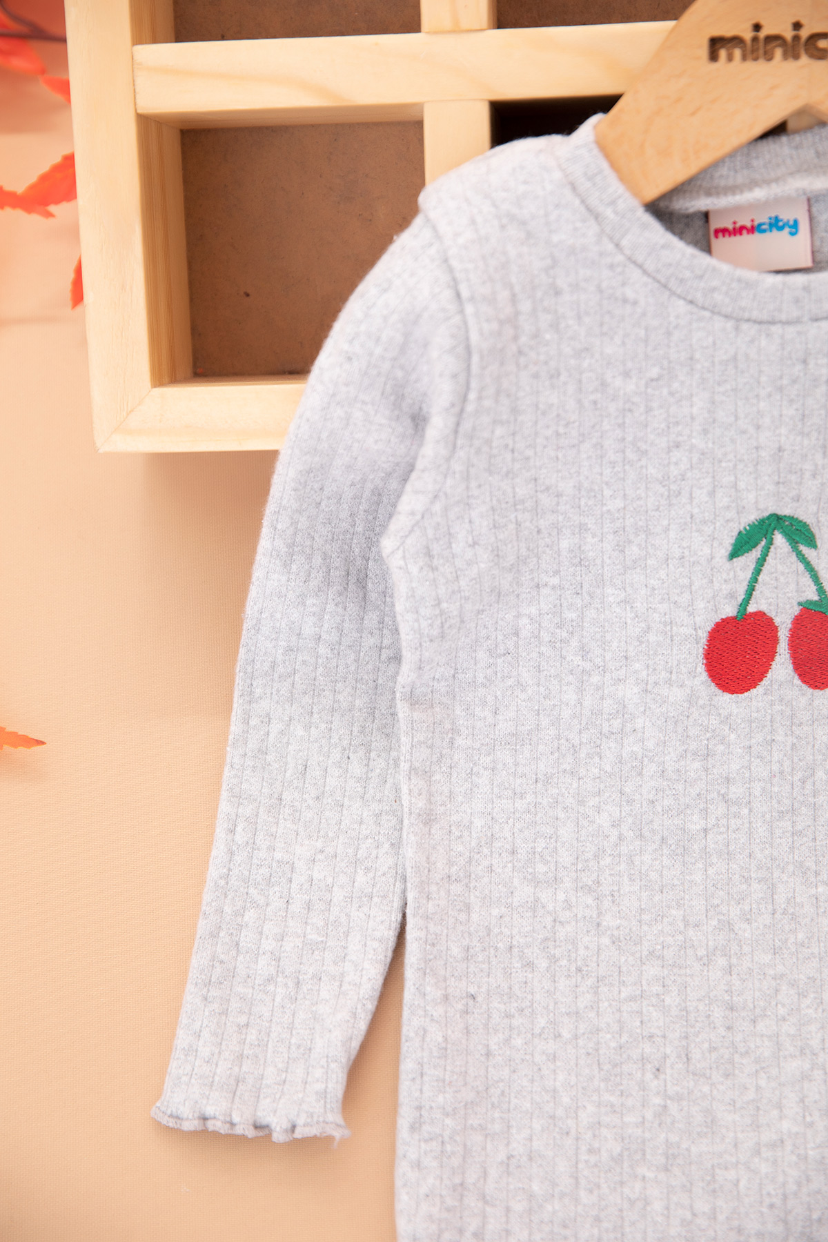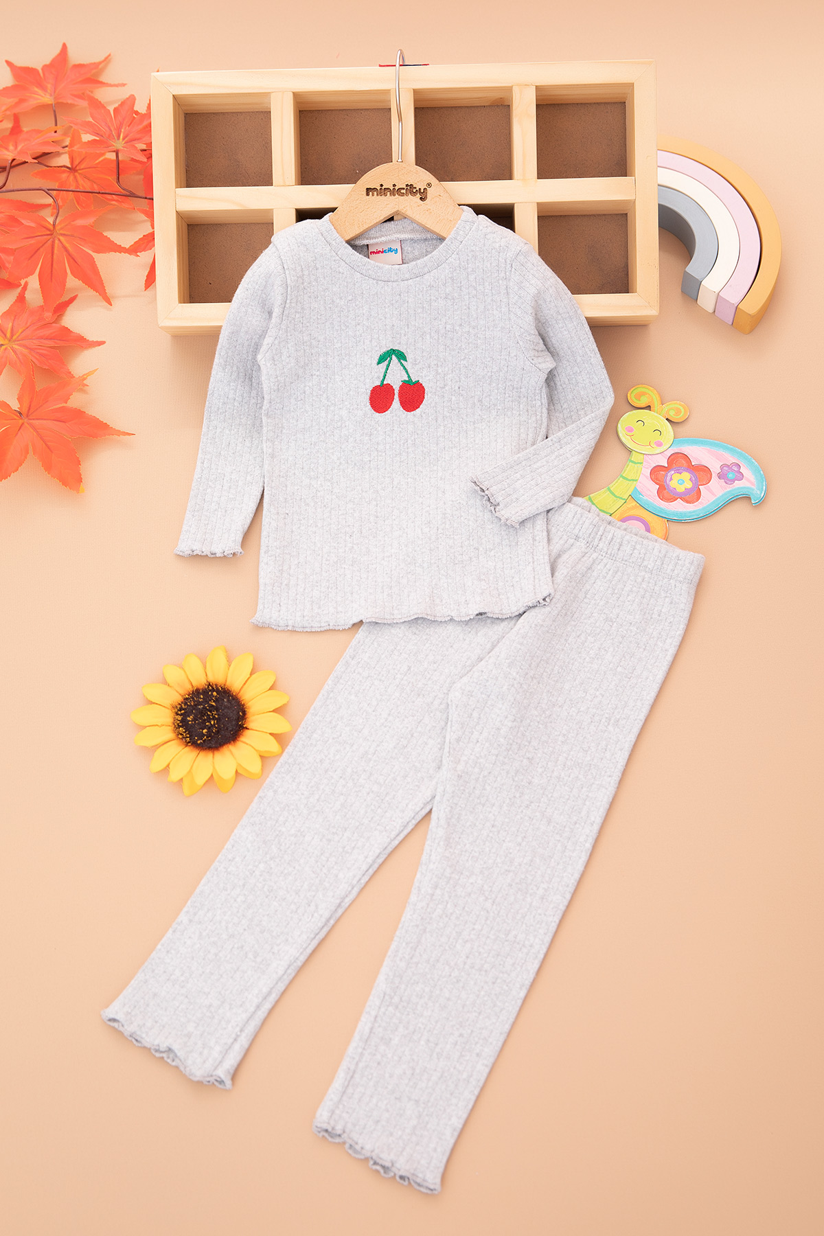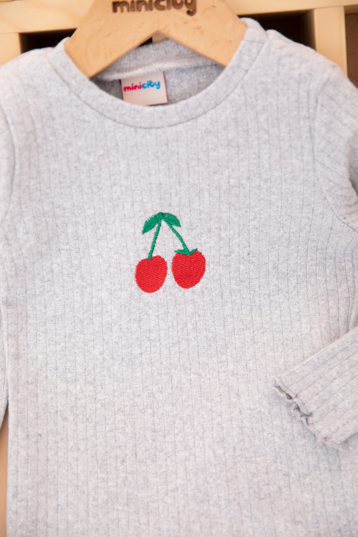 Kız Çocuk Kiraz Nakışlı Raporlu Takım - 11900 (2-5 Yaş)