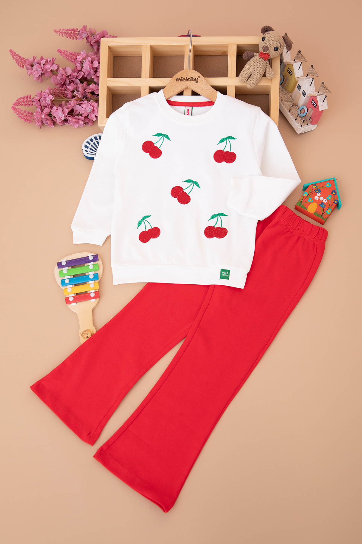 Kız Çocuk Kiraz Nakışlı Takım - Hs-46 (4-10 Yaş)