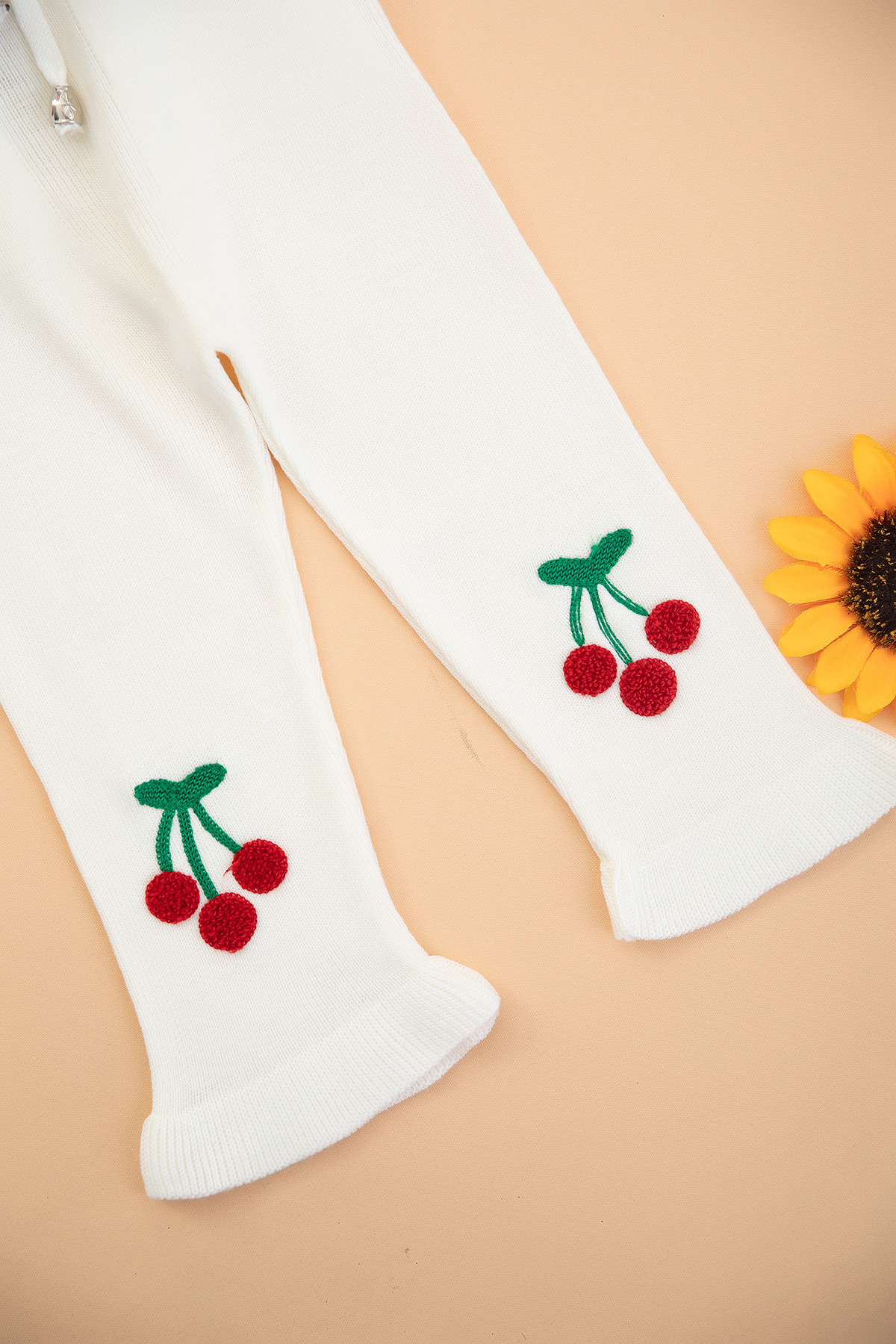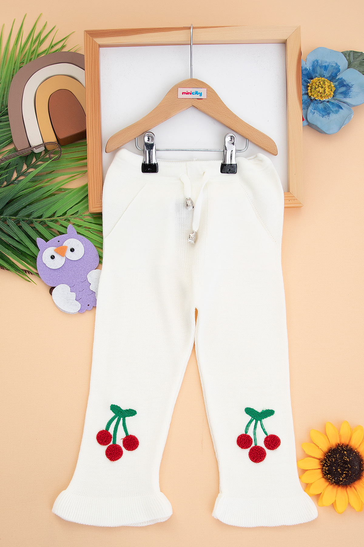 Kız Çocuk Kiraz Nakışlı Triko Tayt (2-8 Yaş)