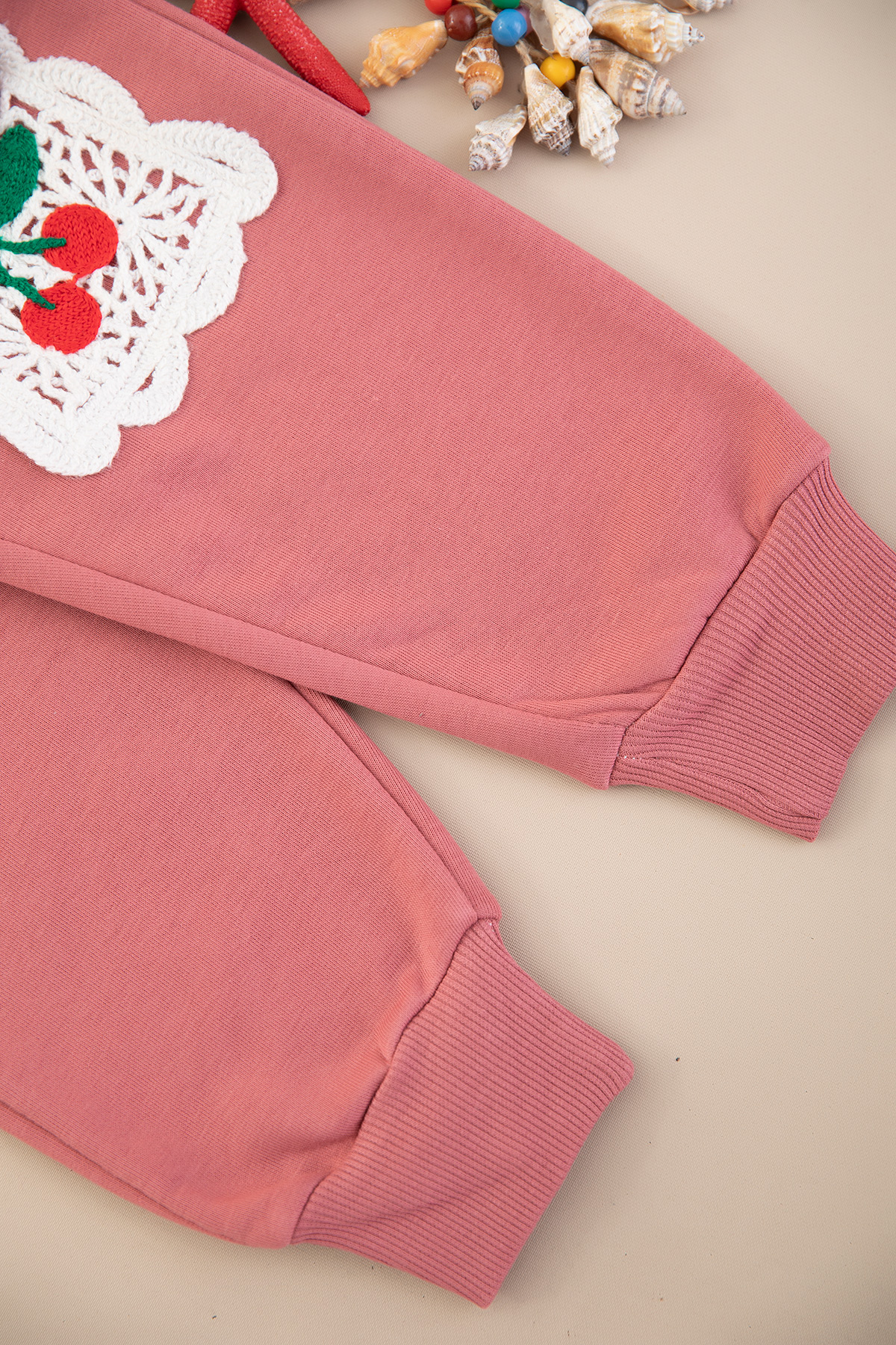 Kız Çocuk Kiraz Nakışlı Üçip Tek Alt - 4097 (3-7 Yaş)