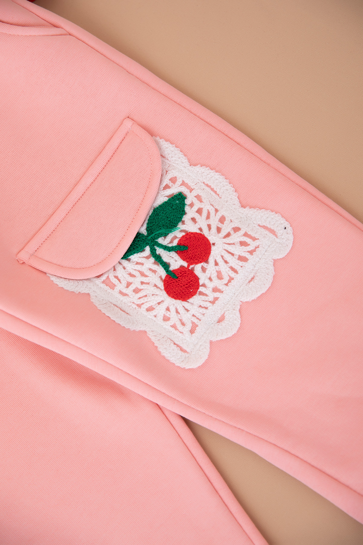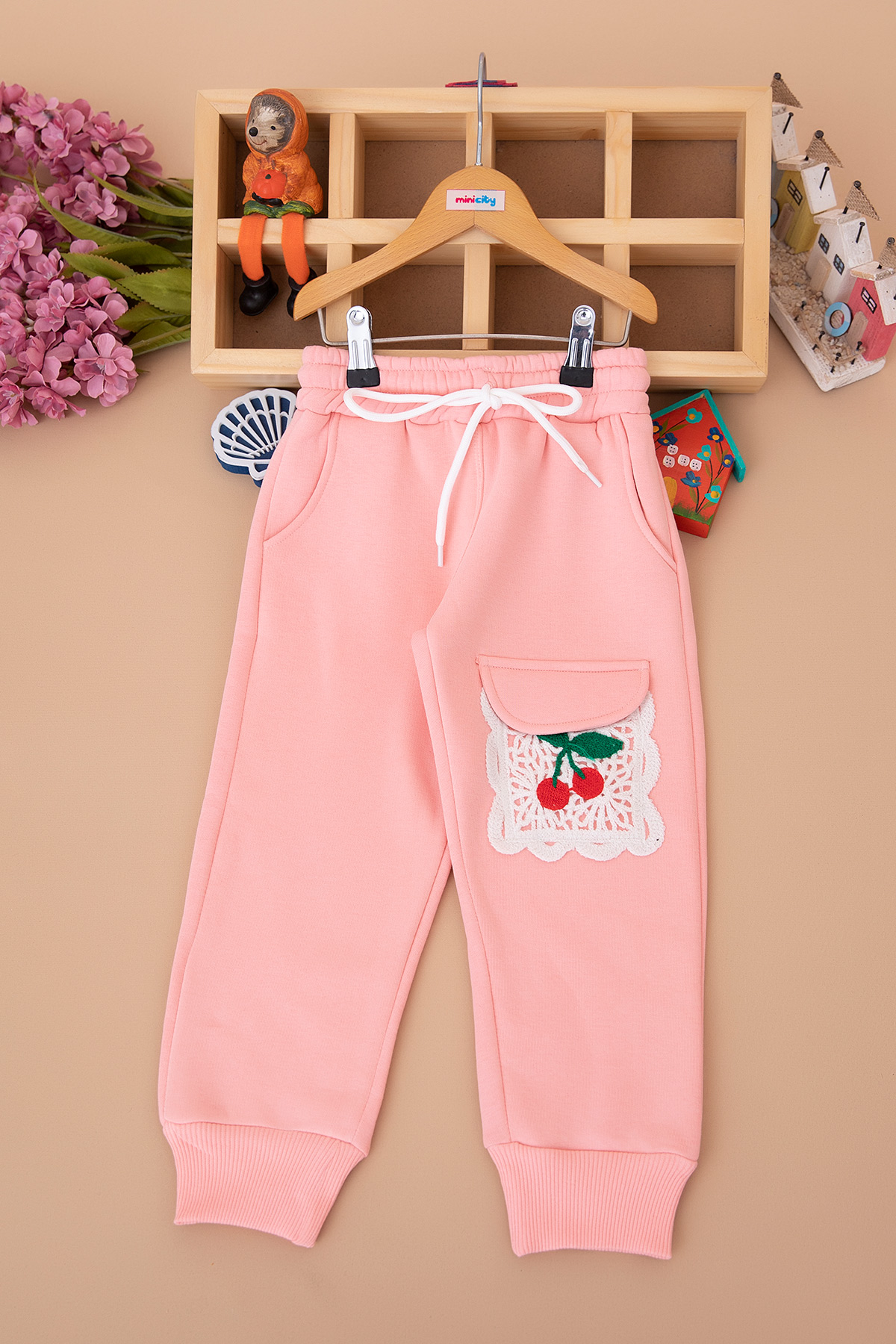 Kız Çocuk Kiraz Nakışlı Üçip Tek Alt - 4097 (3-7 Yaş)