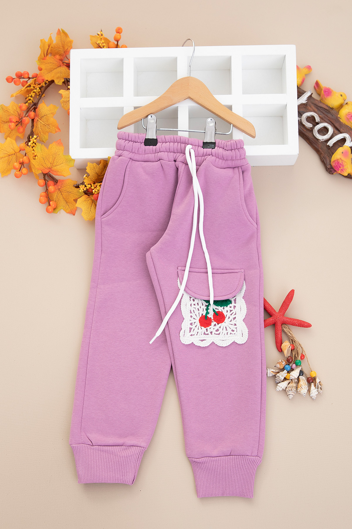 Kız Çocuk Kiraz Nakışlı Üçip Tek Alt - 4098 (8-12 Yaş)