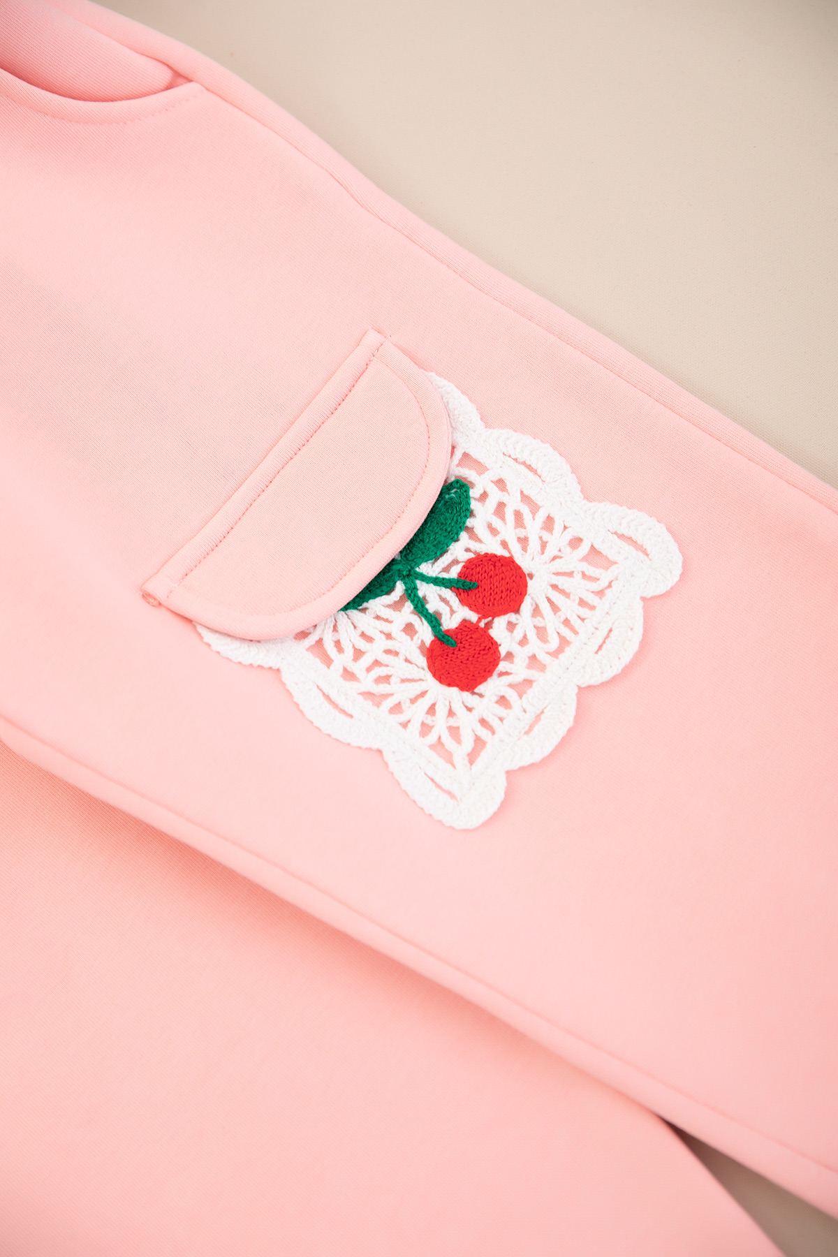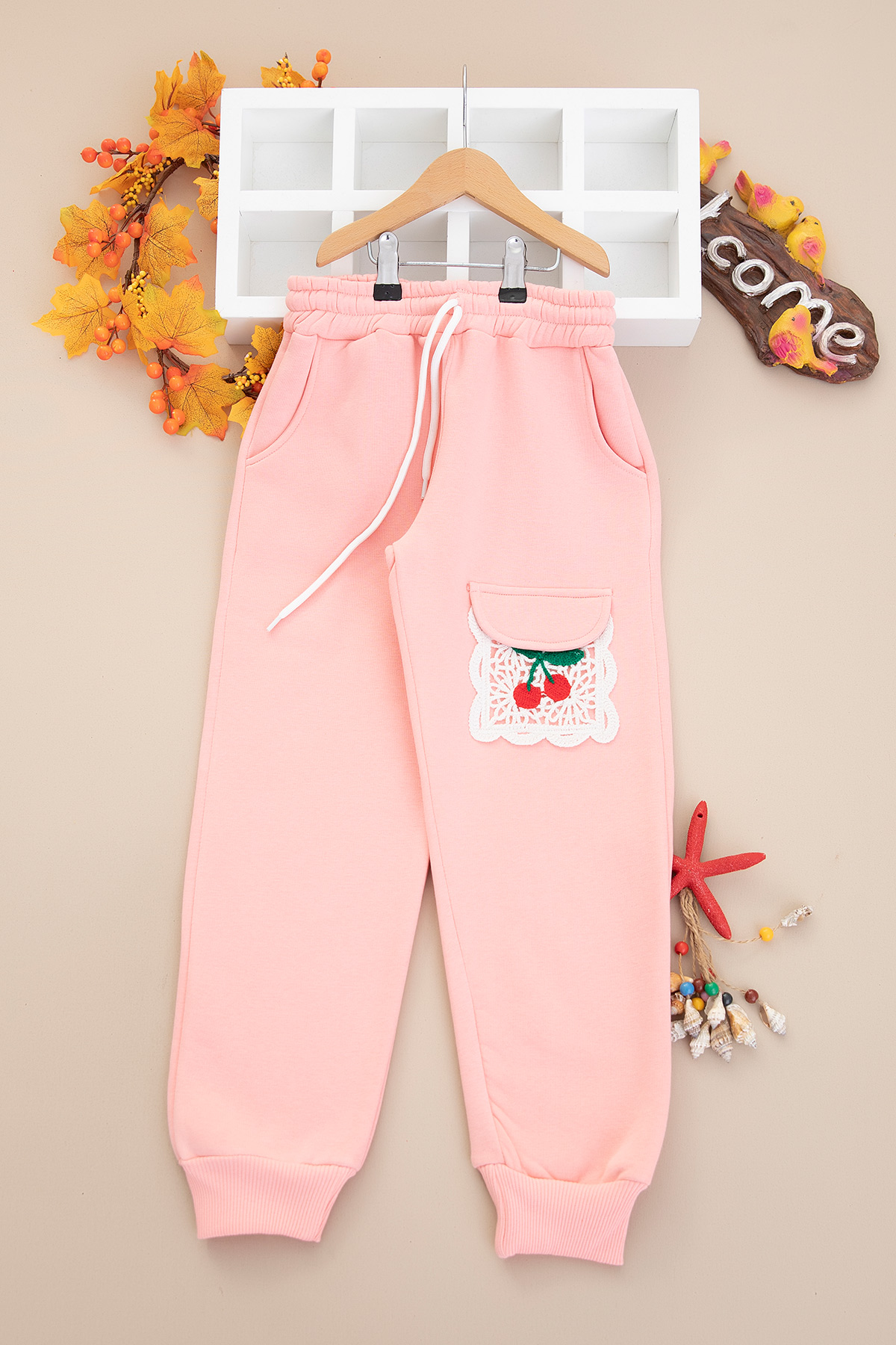 Kız Çocuk Kiraz Nakışlı Üçip Tek Alt - 4098 (8-12 Yaş)