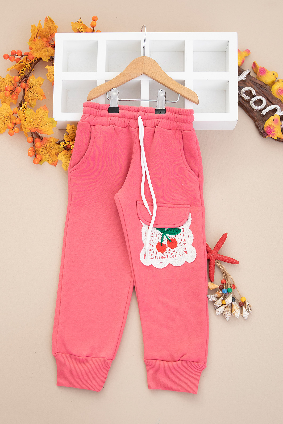 Kız Çocuk Kiraz Nakışlı Üçip Tek Alt - 4098 (8-12 Yaş)