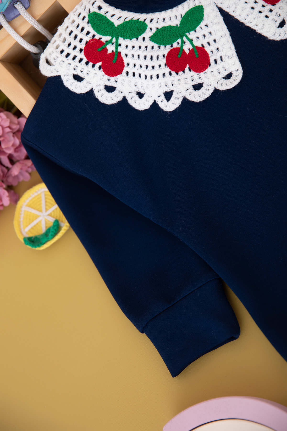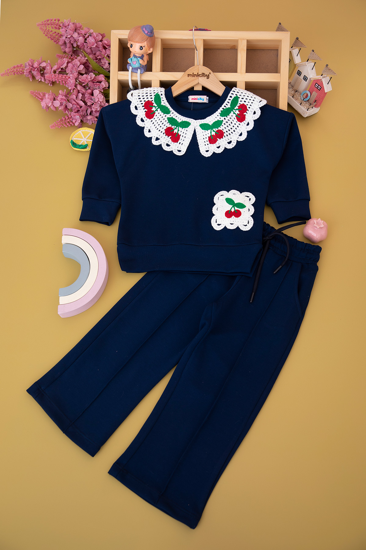 Kız Çocuk Kiraz Yaka Cep Detaylı Takım - 5110 (4-11 Yaş)