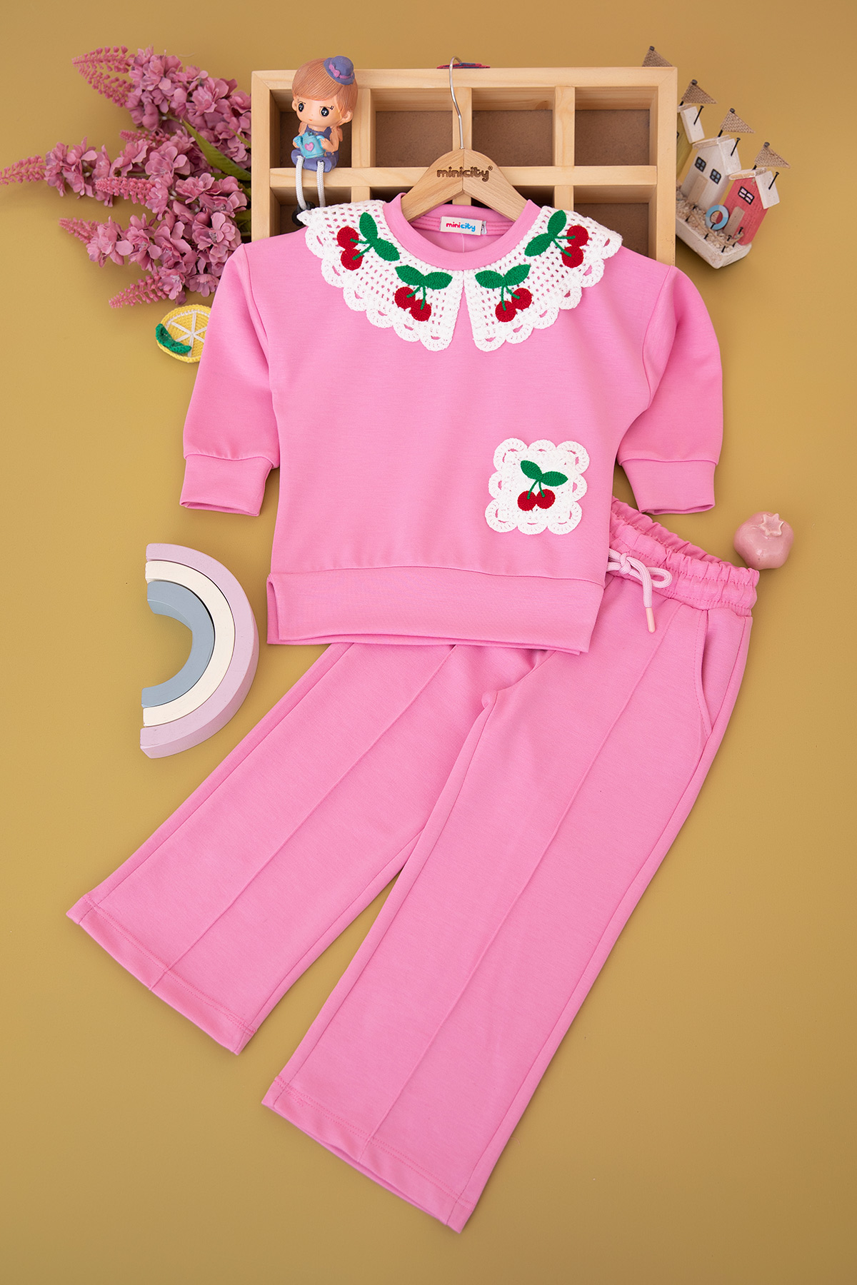 Kız Çocuk Kiraz Yaka Cep Detaylı Takım - 5110 (4-11 Yaş)