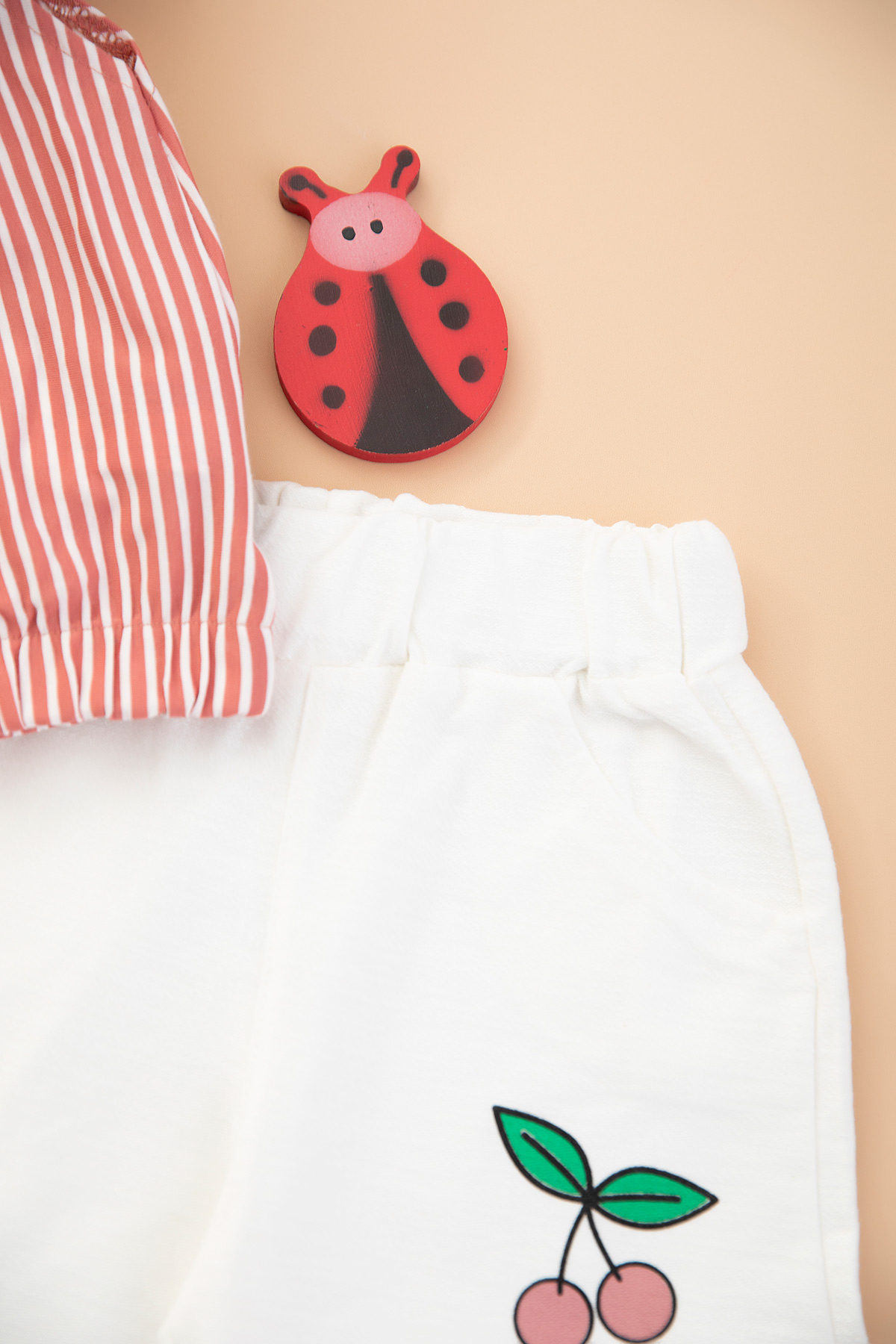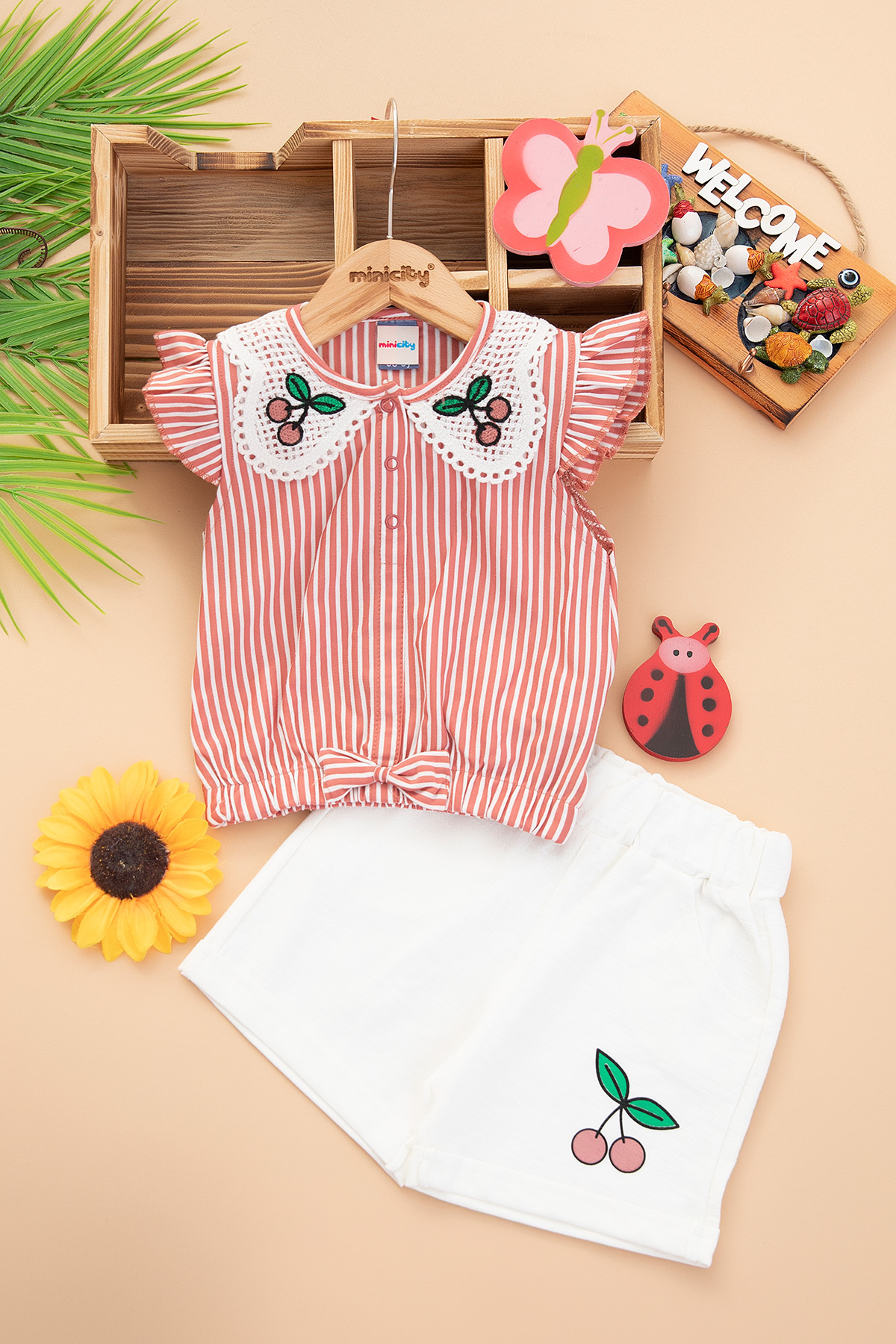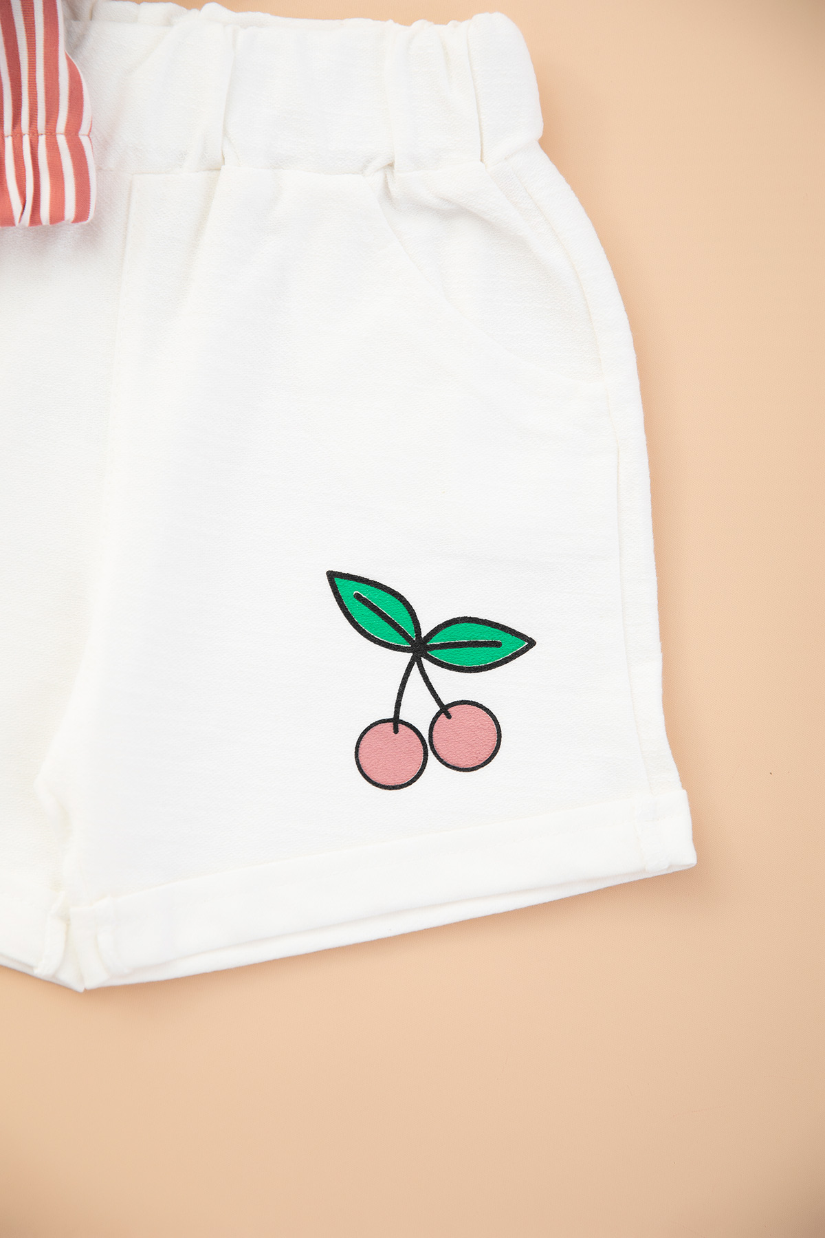 Kız Çocuk Kiraz Yakalı Şortlu Takım - 25403 (3-6 Yaş)