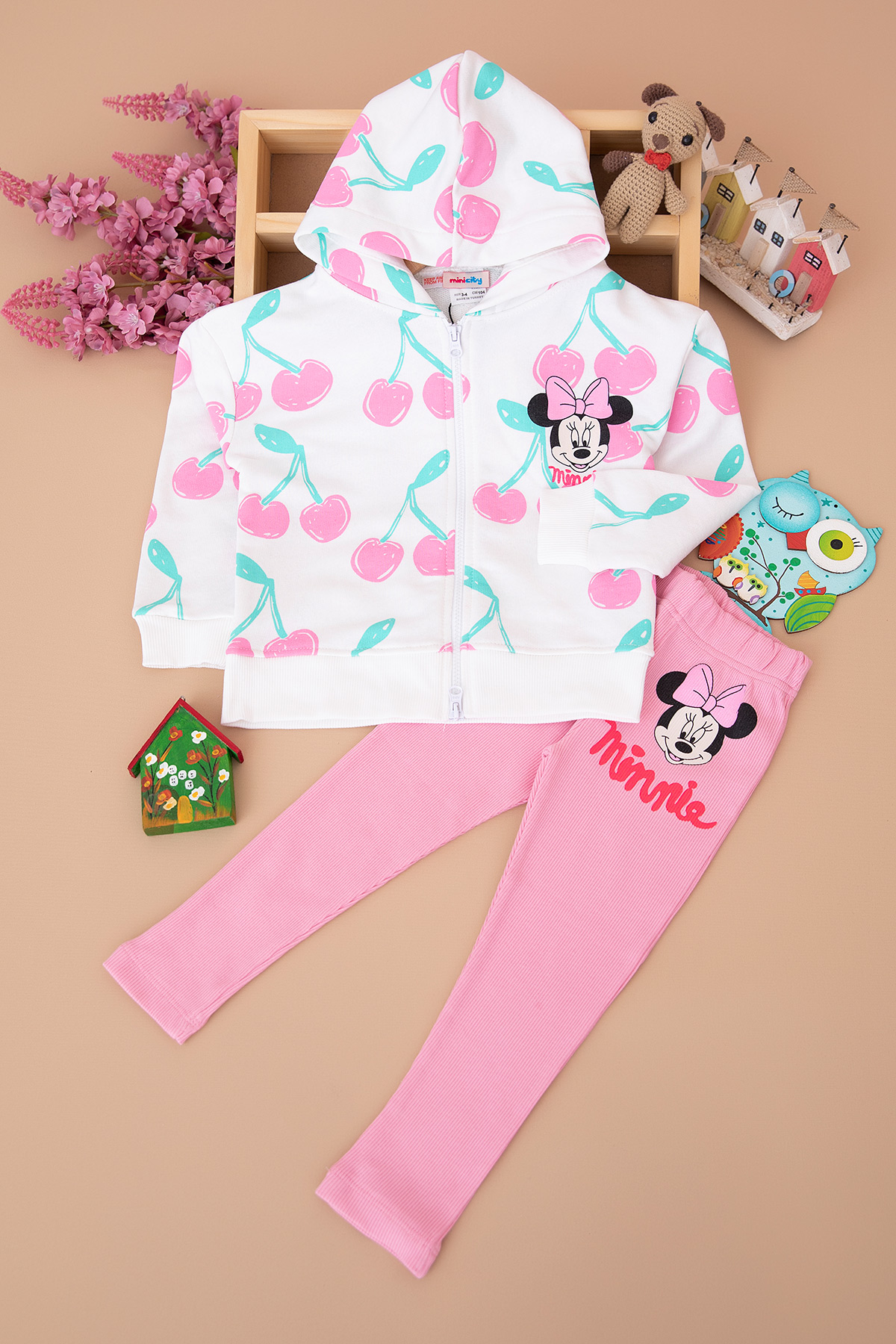Kız Çocuk Kirazlı Minnie Fermuarlı Takım (3-10 Yaş)