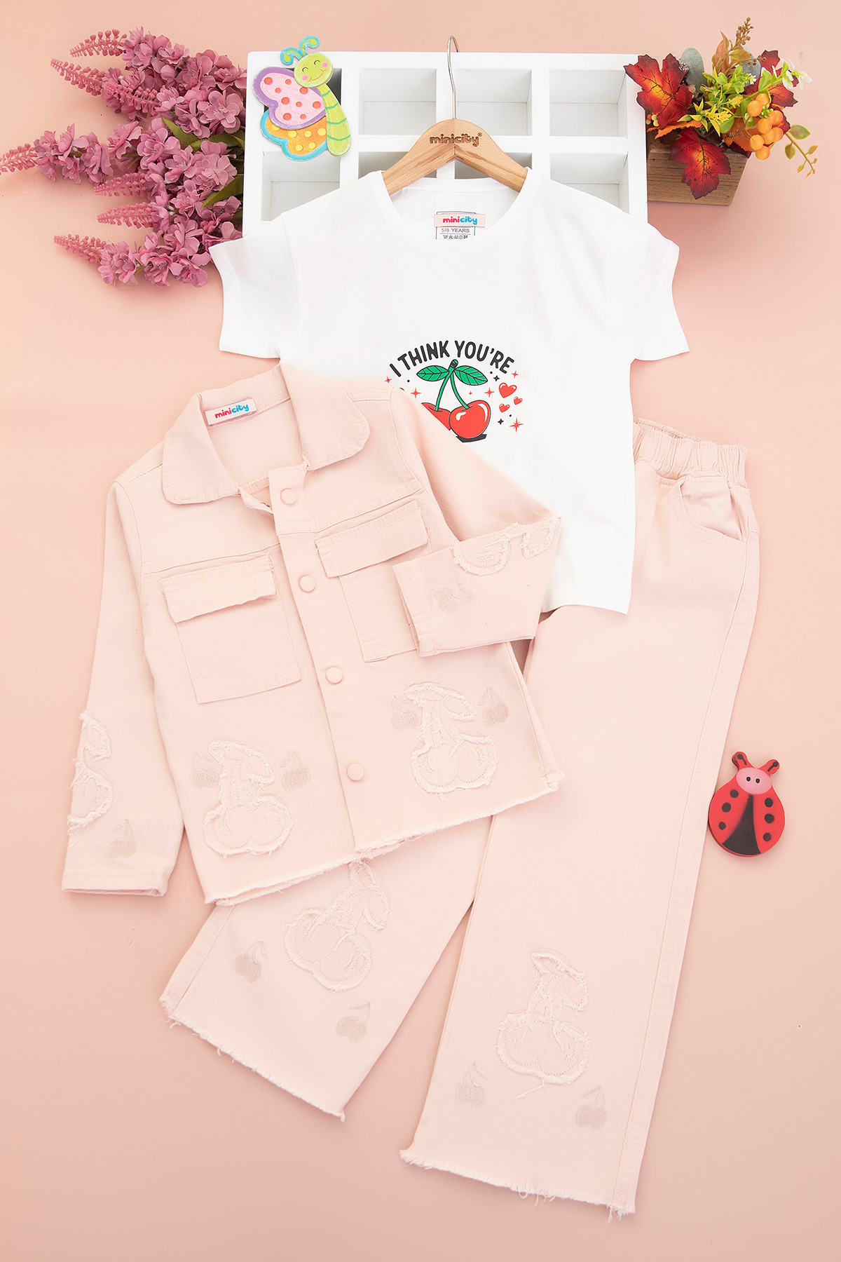 Kız Çocuk Kirazlı Üçlü Takım - 70720 (5-12 Yaş)