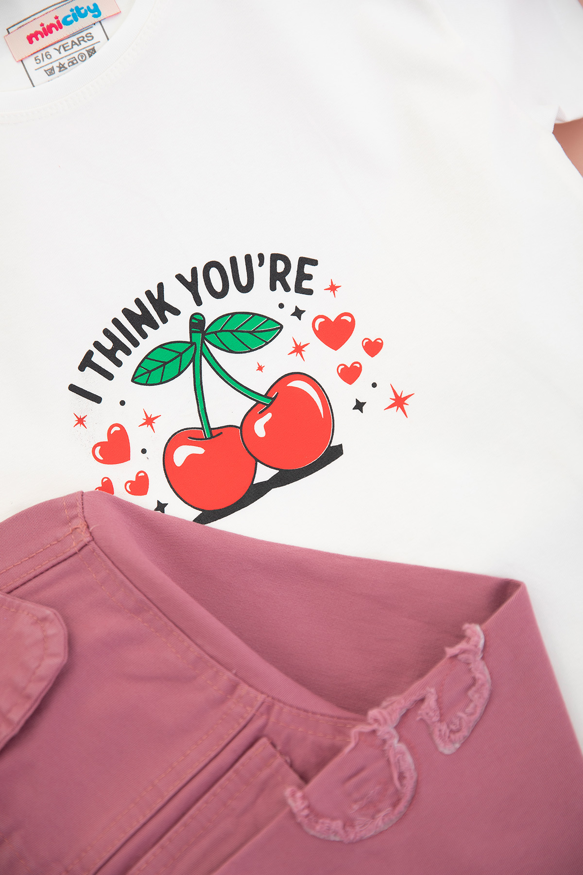 Kız Çocuk Kirazlı Üçlü Takım - 70720 (5-12 Yaş)
