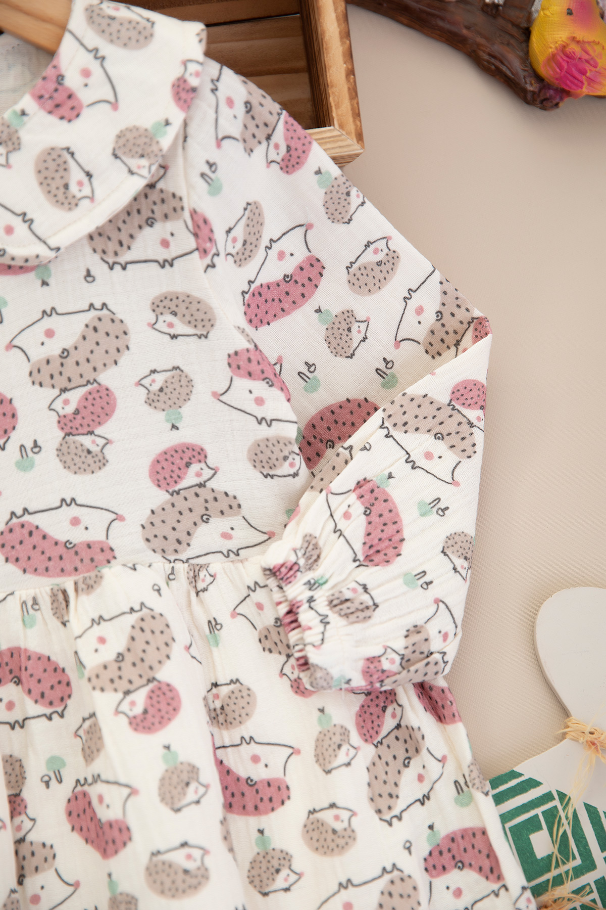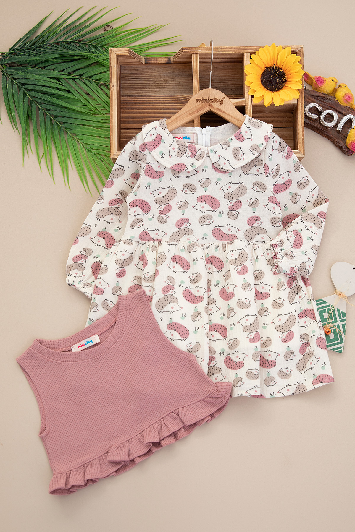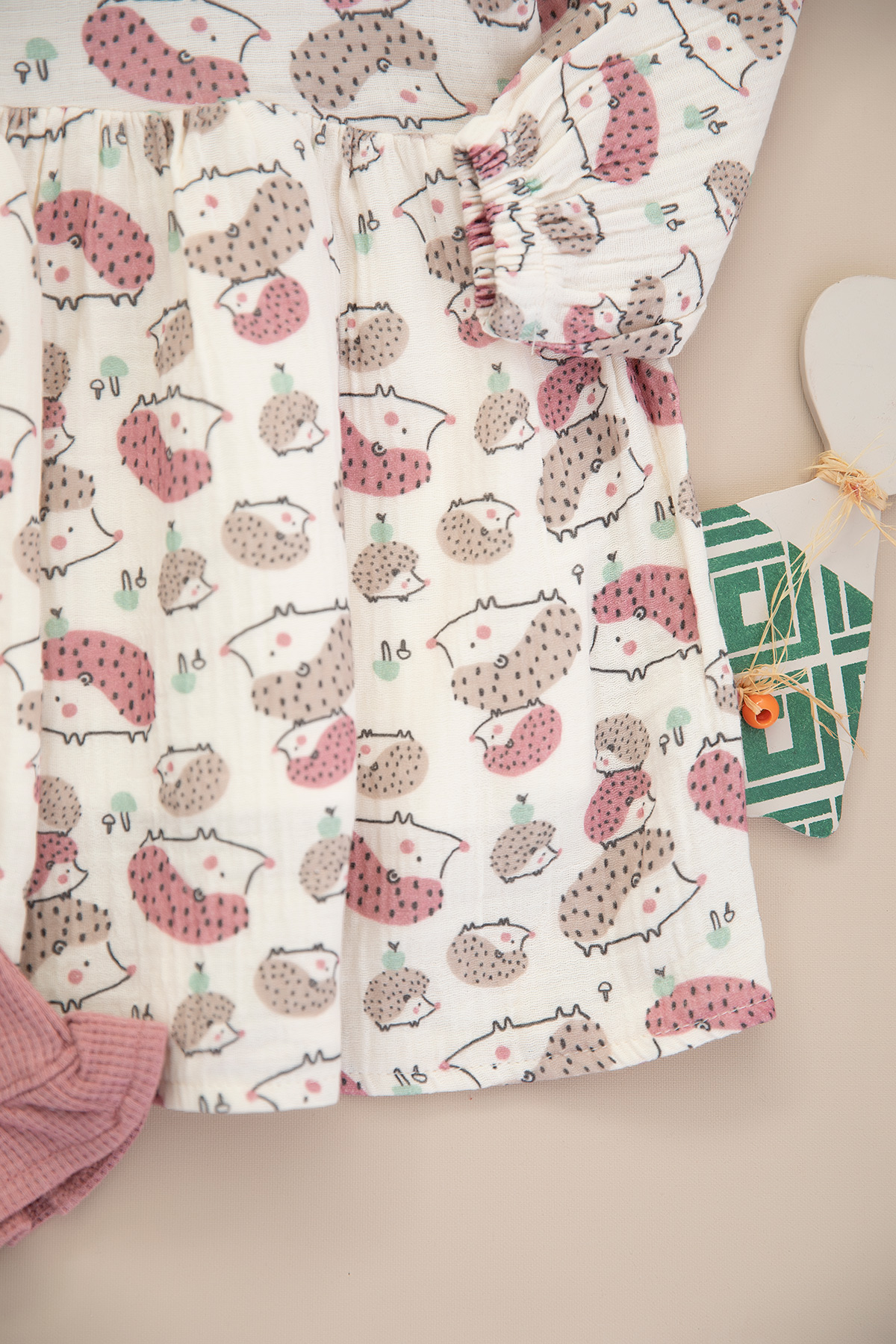 Kız Çocuk Kirpi Desenli Süveterli Elbise - 1597 (2-5 Yaş)