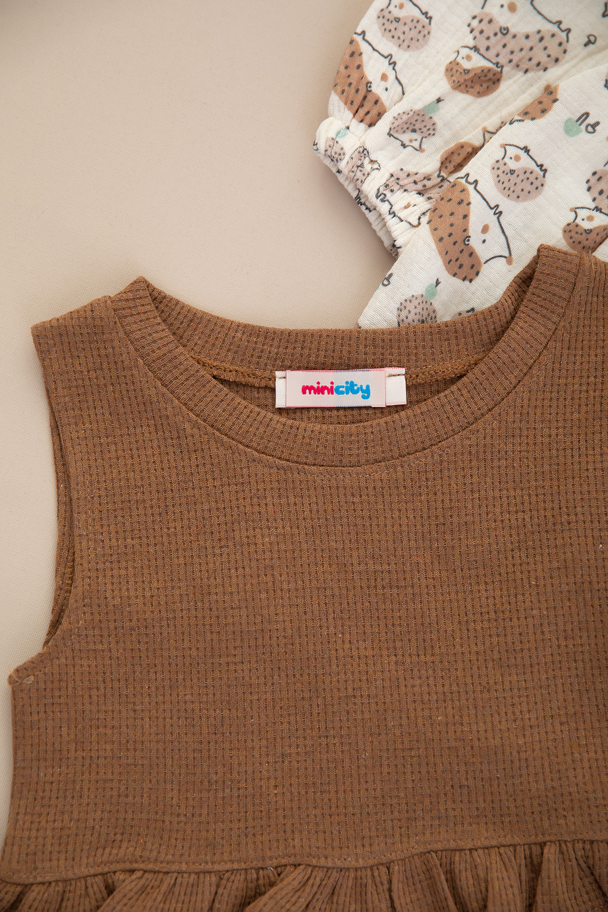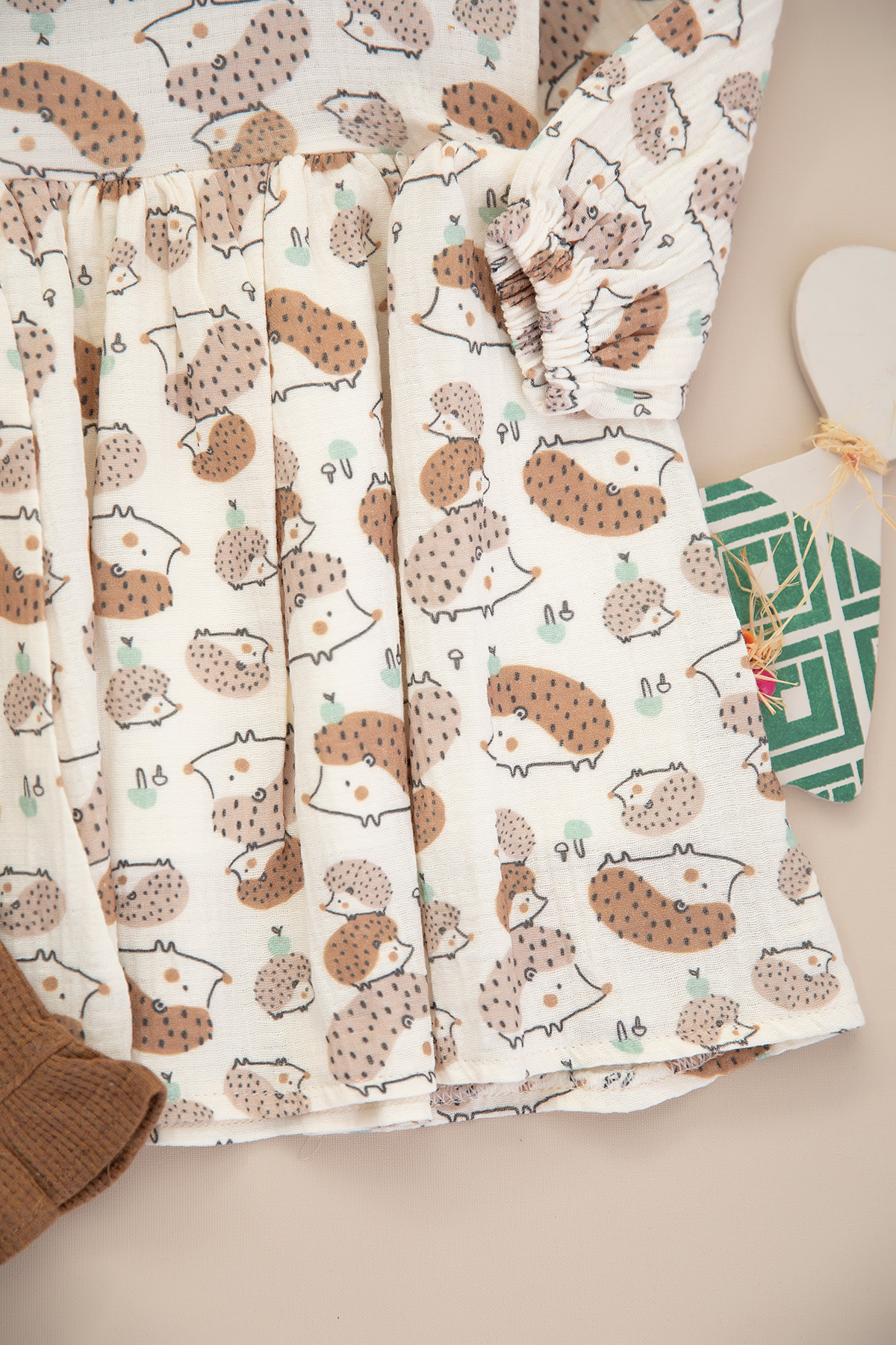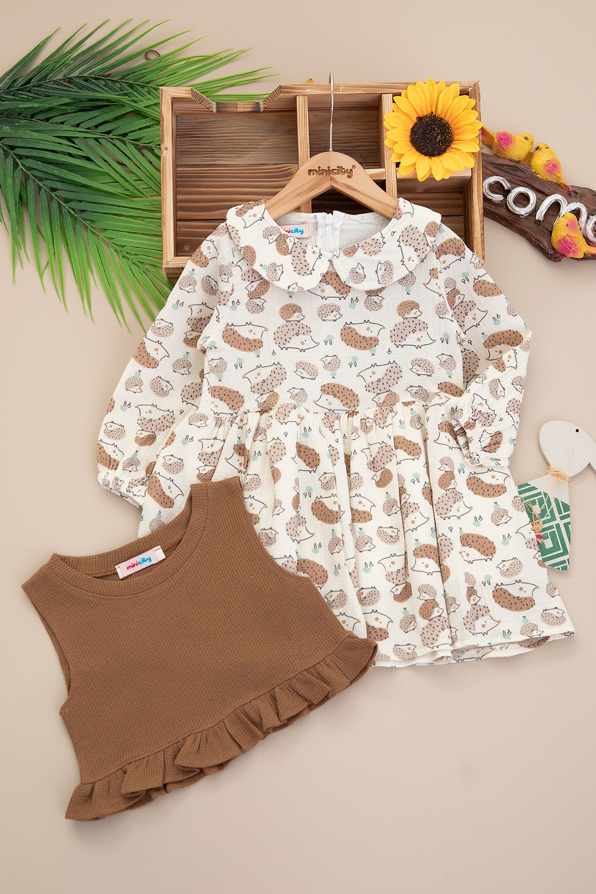 Kız Çocuk Kirpi Desenli Süveterli Elbise - 1597 (2-5 Yaş)