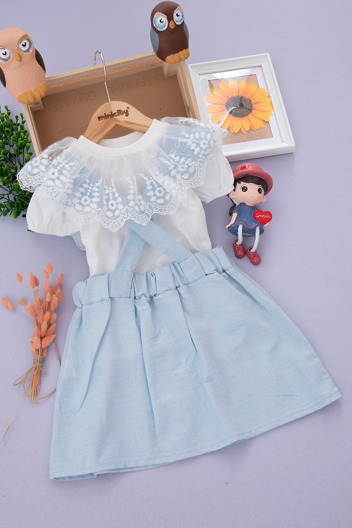 Kız Çocuk Kısa Kollu Salopet Takım -708 (3-7 Yaş)