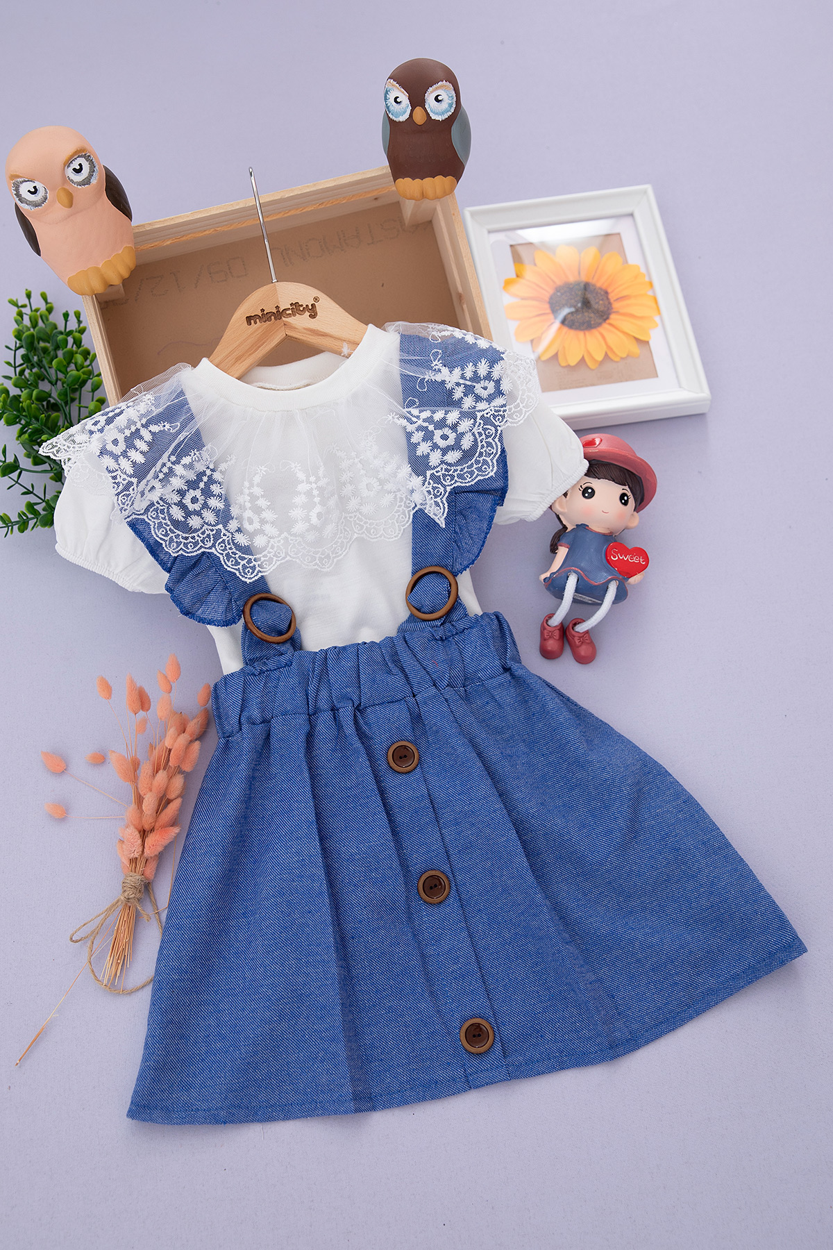 Kız Çocuk Kısa Kollu Salopet Takım -708 (3-7 Yaş)