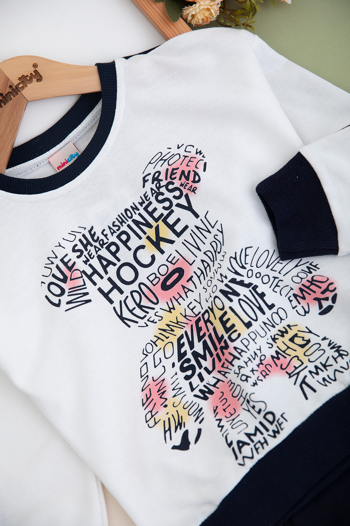 Kız Çocuk Kol Abiyeli Ayıcık Baskılı Takım - 9533 (5-8 Yaş)