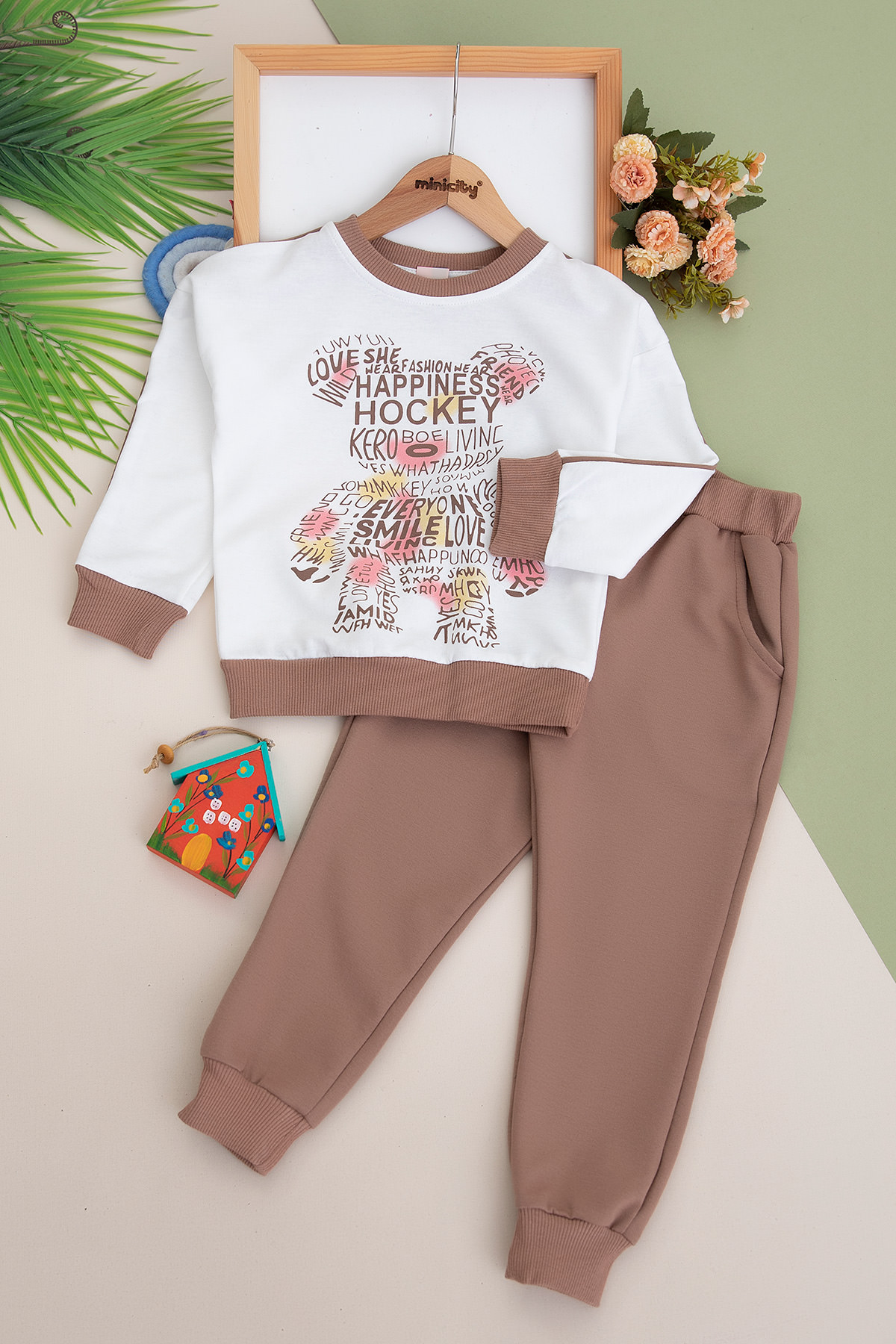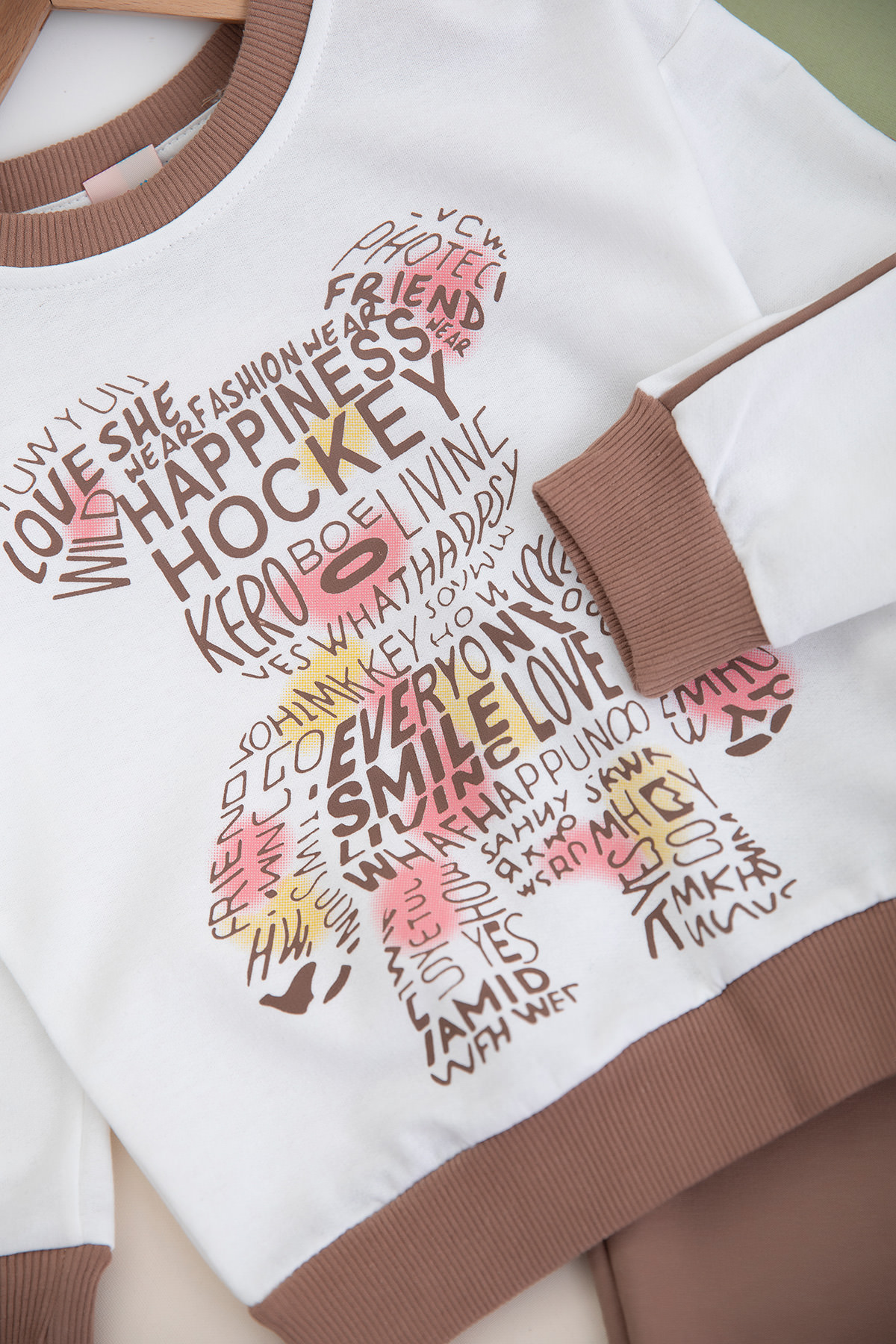 Kız Çocuk Kol Abiyeli Ayıcık Baskılı Takım - 9533 (5-8 Yaş)