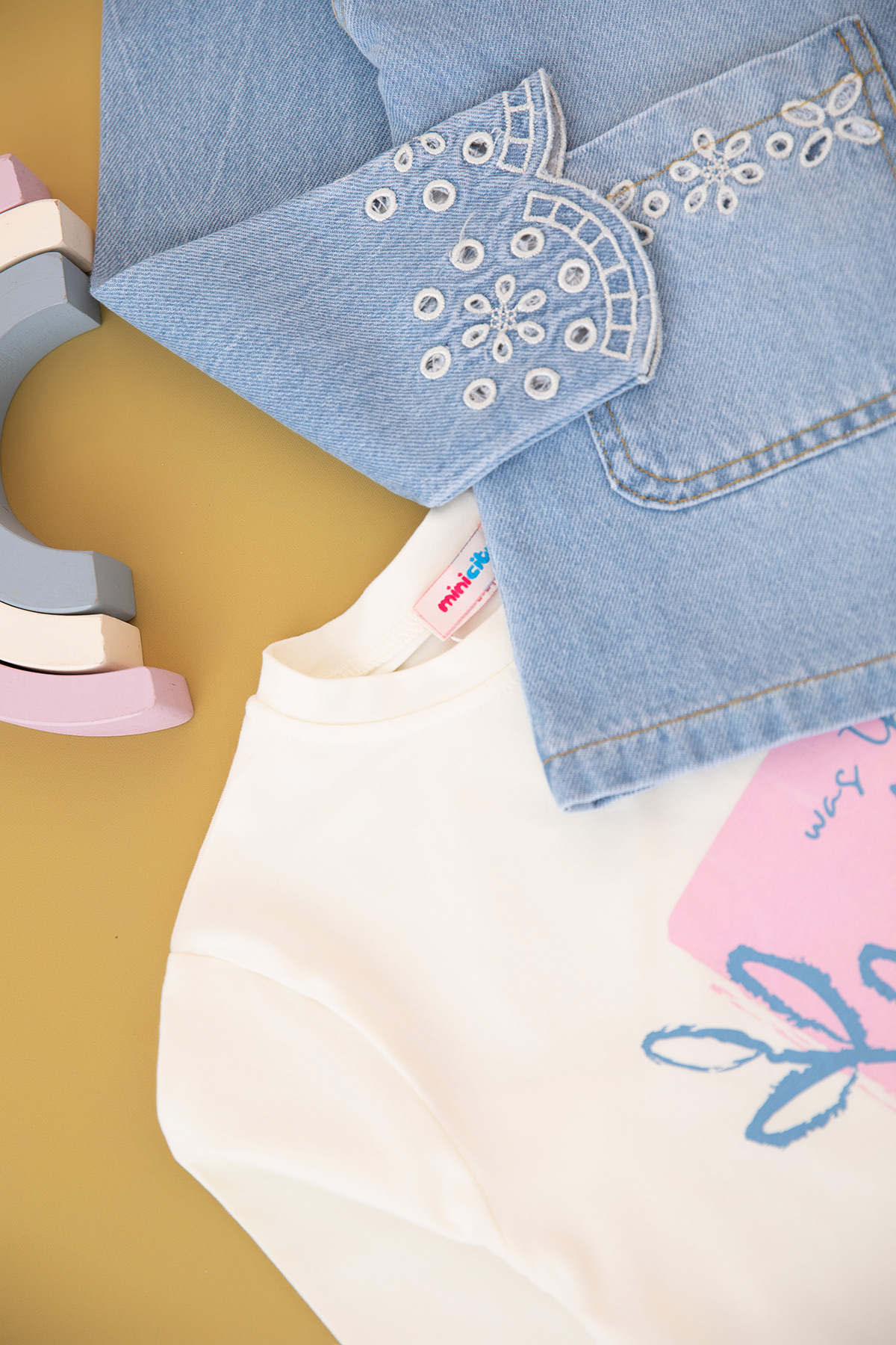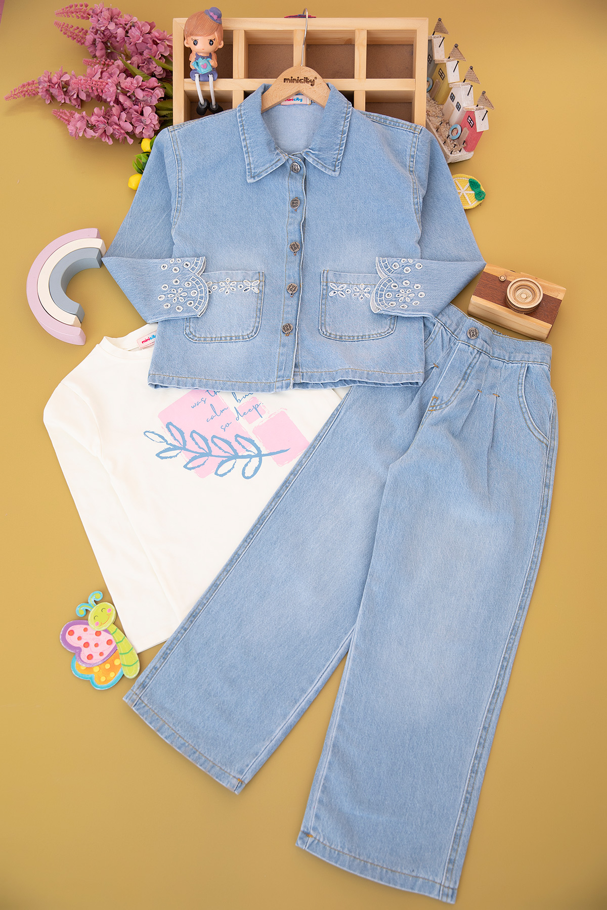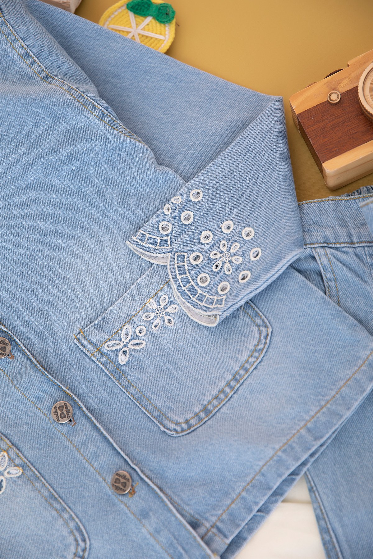 Kız Çocuk Kol Brode Kot Takım - 1751 (8-11 Yaş)
