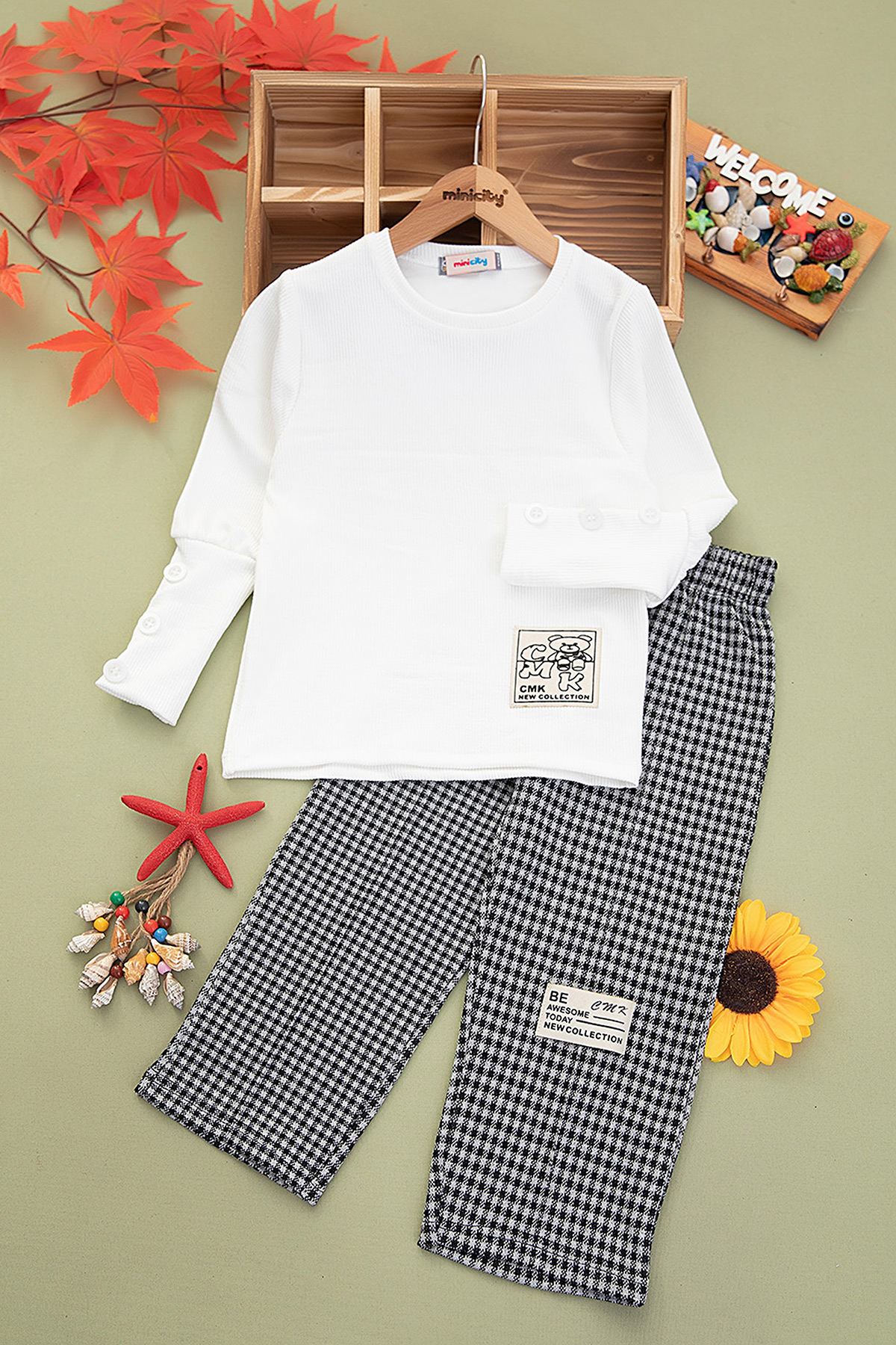 Kız Çocuk Kol Düğmeli Alt Kareli Takım - 190050 (4-11 Yaş)