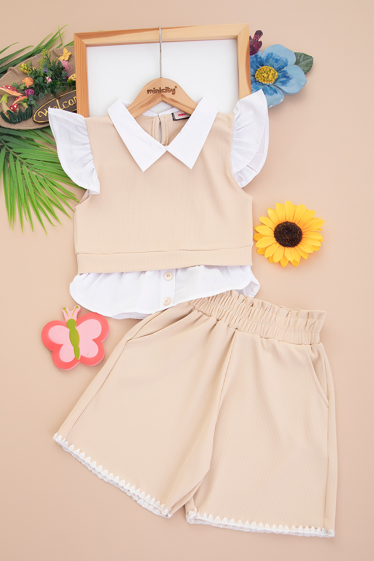 Kız Çocuk Kol Fırfırlı Şort Takım - 1020 (6-10 Yaş)