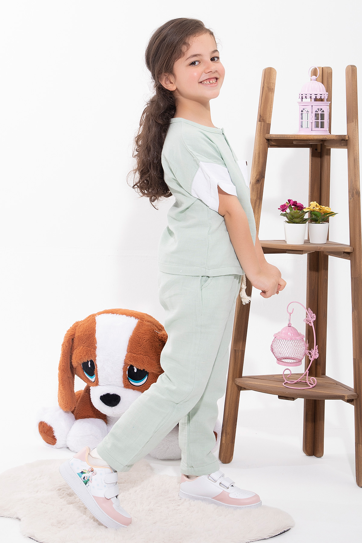 Kız Çocuk Kol Garnili Patlı Müslin Takım - 8042 (3-7 Yaş)