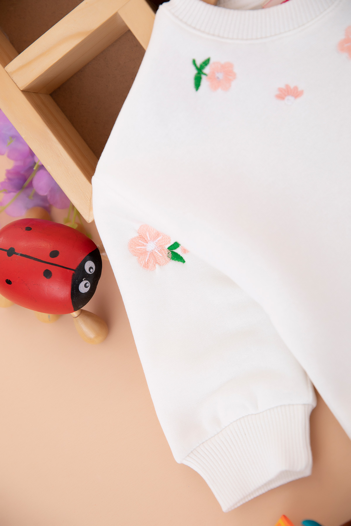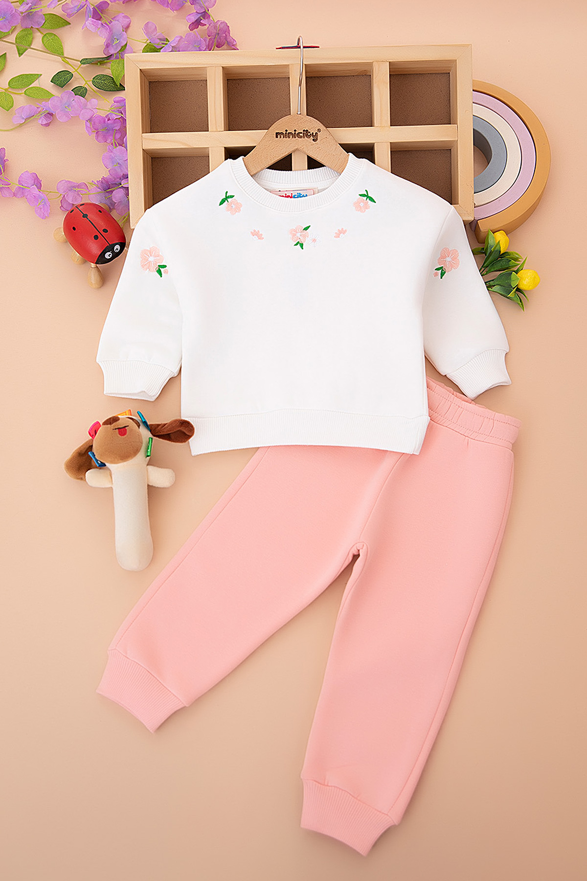 Kız Çocuk Kol Nakışlı Üçip Takım - 24082 (1-4 Yaş)
