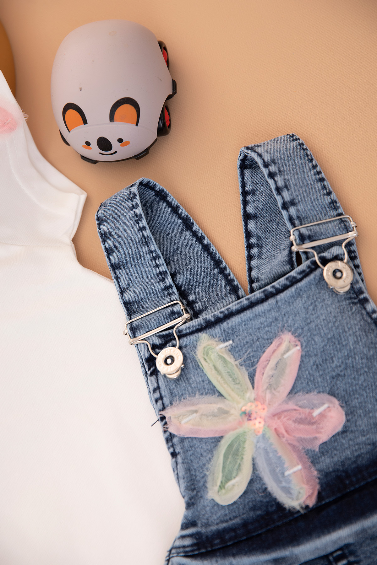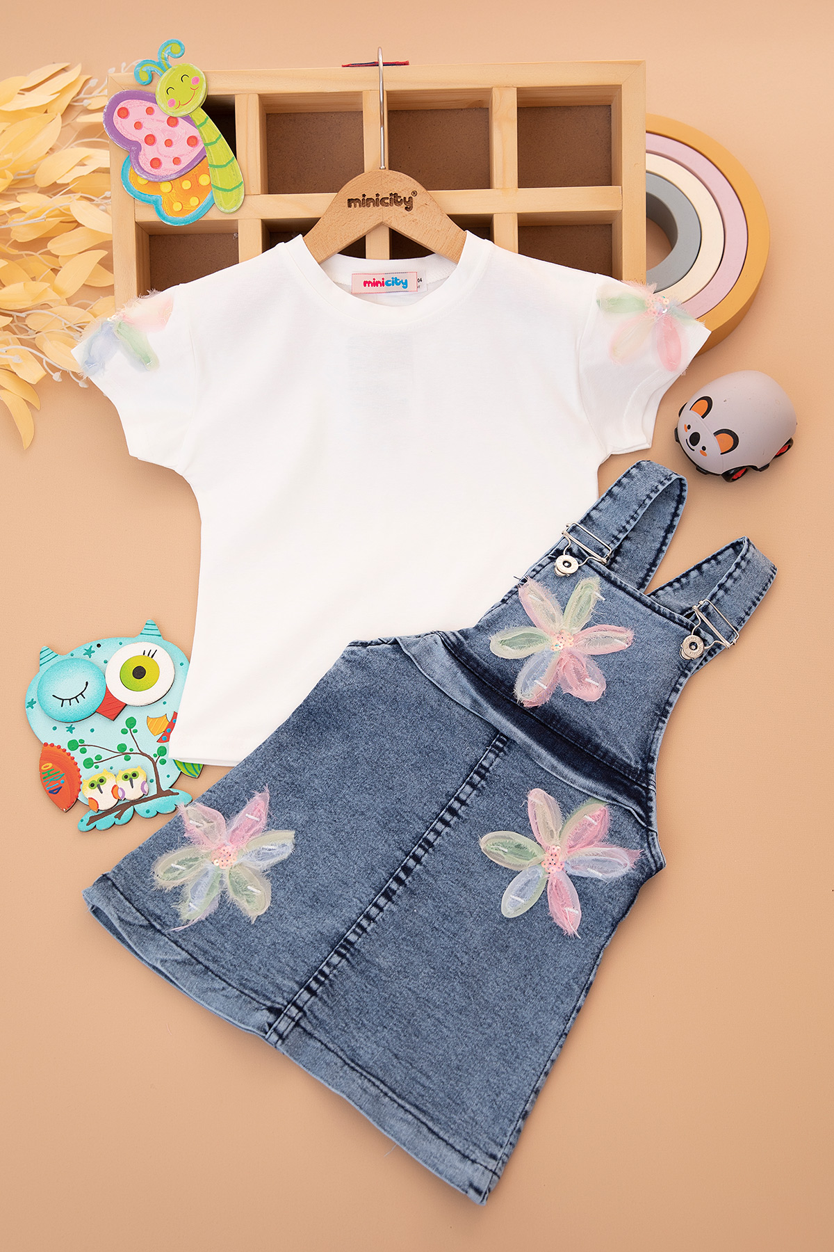 Kız Çocuk Kol Ön Çiçekli Etekli Salopet - 7241 (3-6 Yaş)