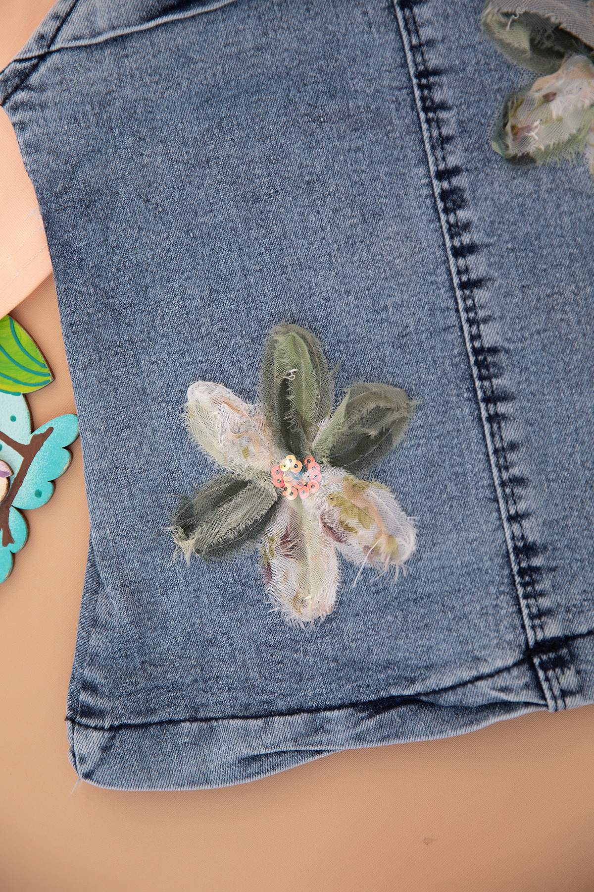 Kız Çocuk Kol Ön Çiçekli Etekli Salopet - 7241 (3-6 Yaş)