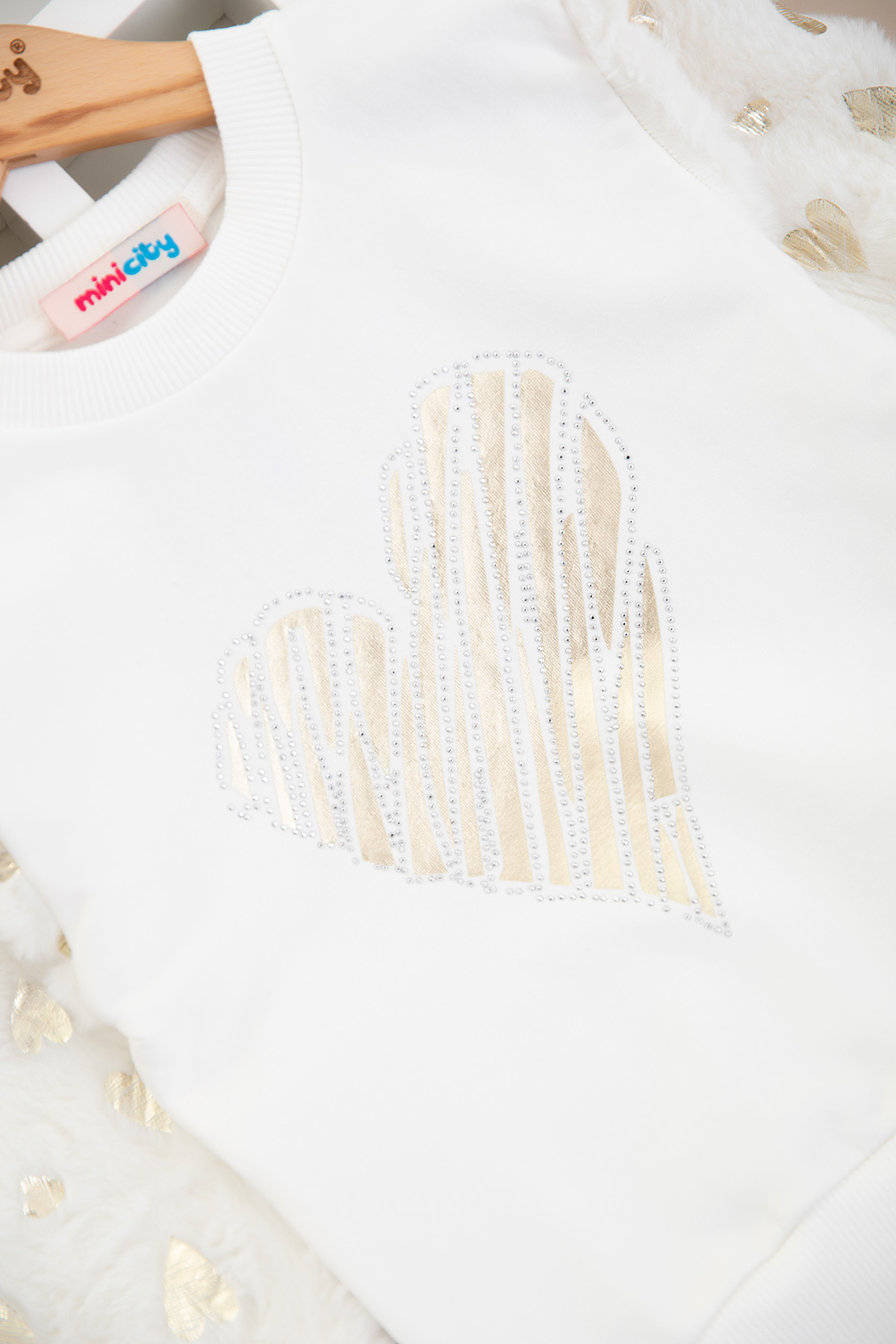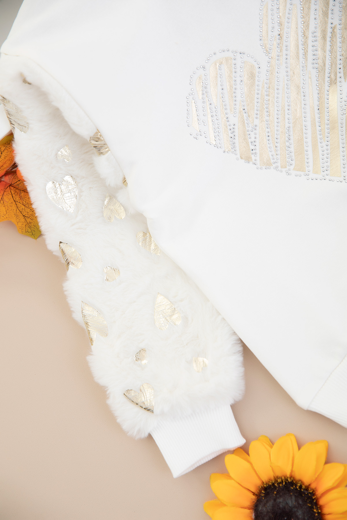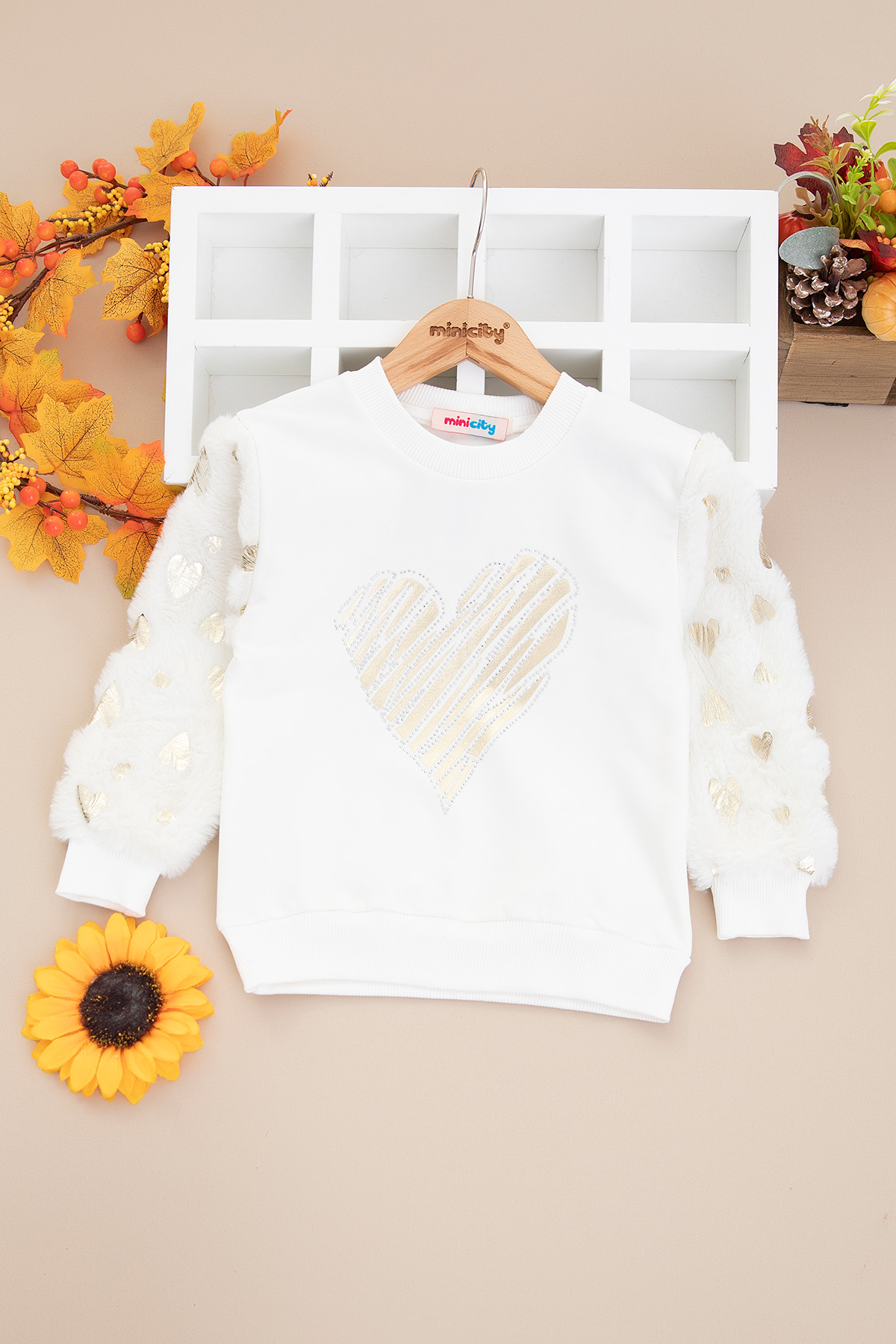 Kız Çocuk Kol Peluş Kalp Varak Sweat - 7633 (9-12 Yaş)