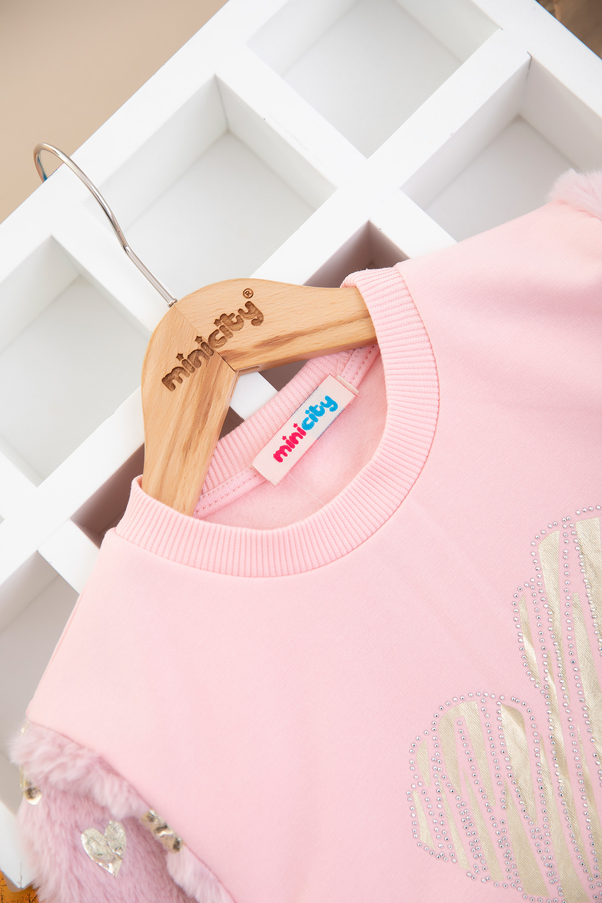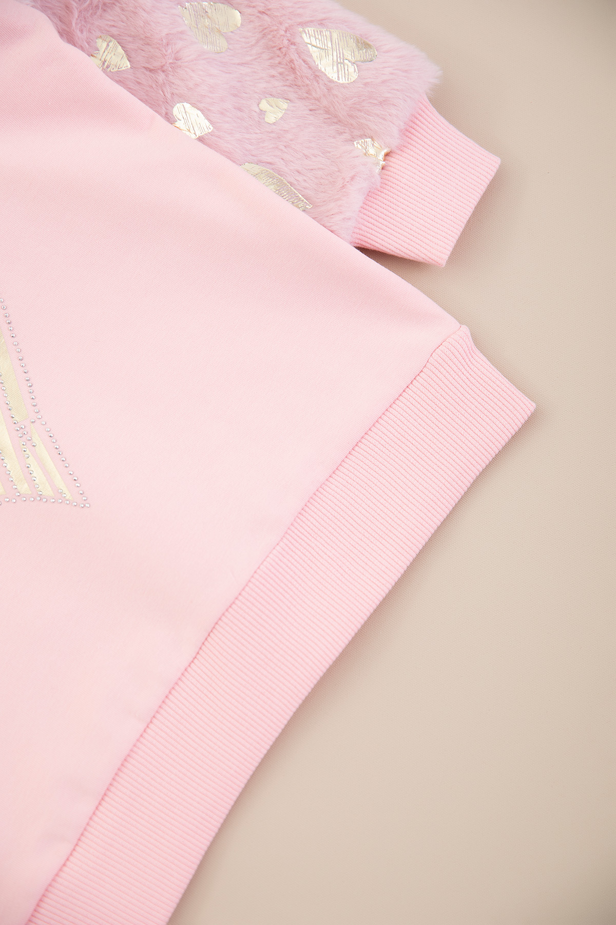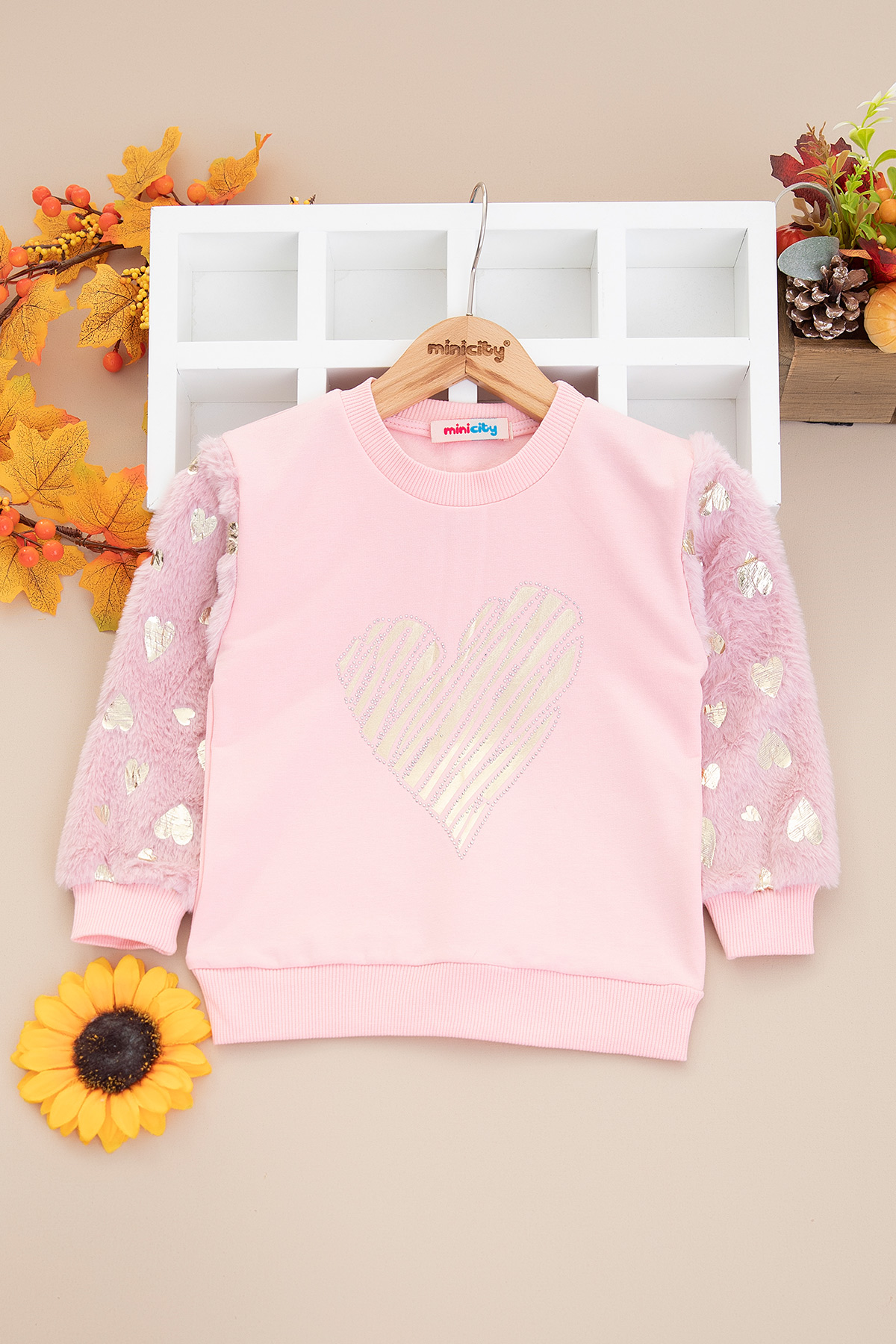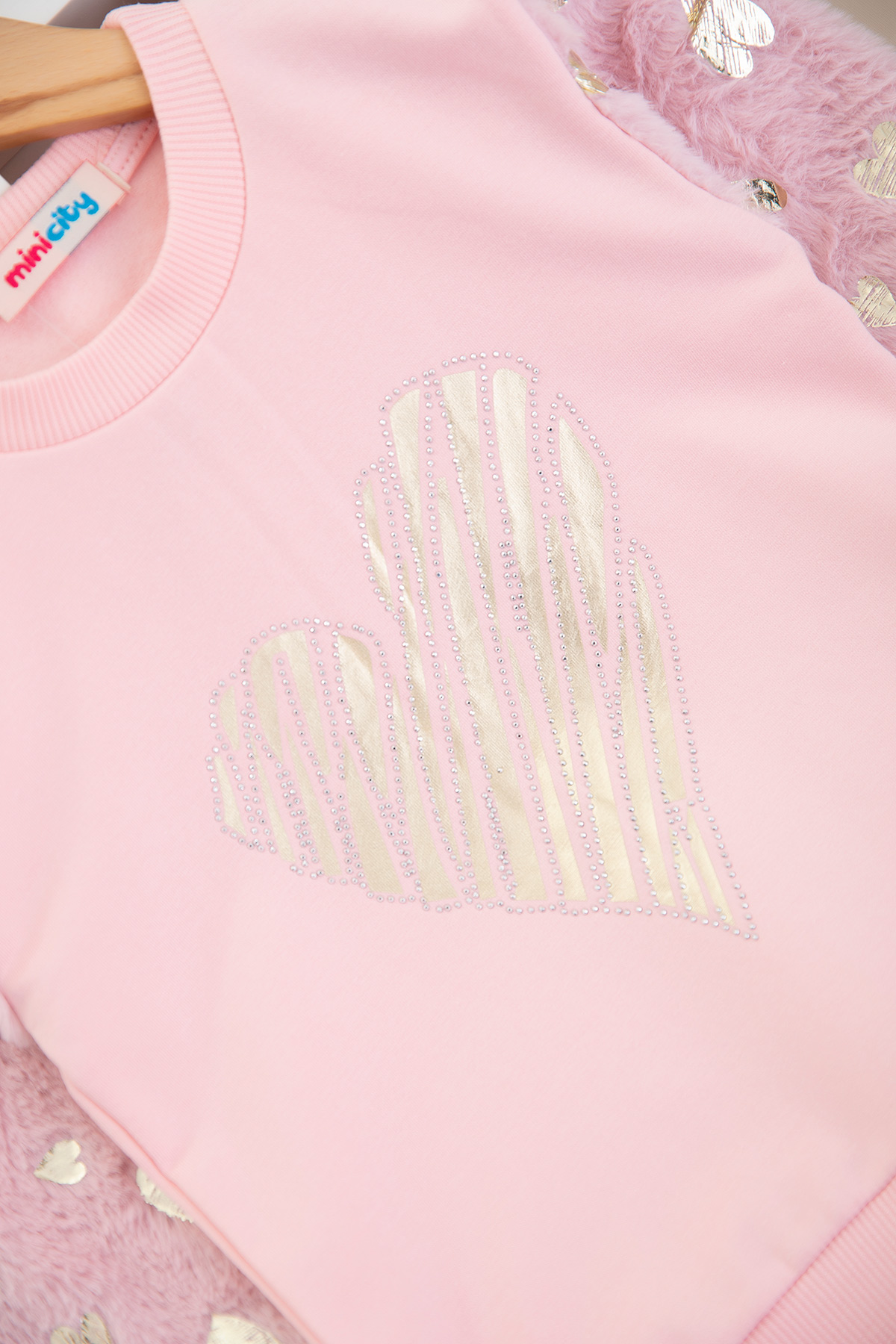Kız Çocuk Kol Peluş Kalp Varak Sweat - 7633 (9-12 Yaş)
