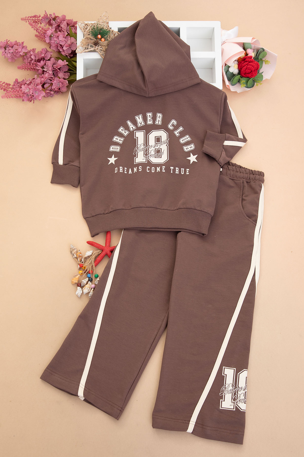 Kız Çocuk Kollar Biyeli Ön Baskılı Takım - 8250 (7-10 Yaş)