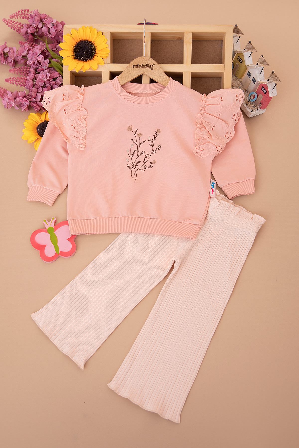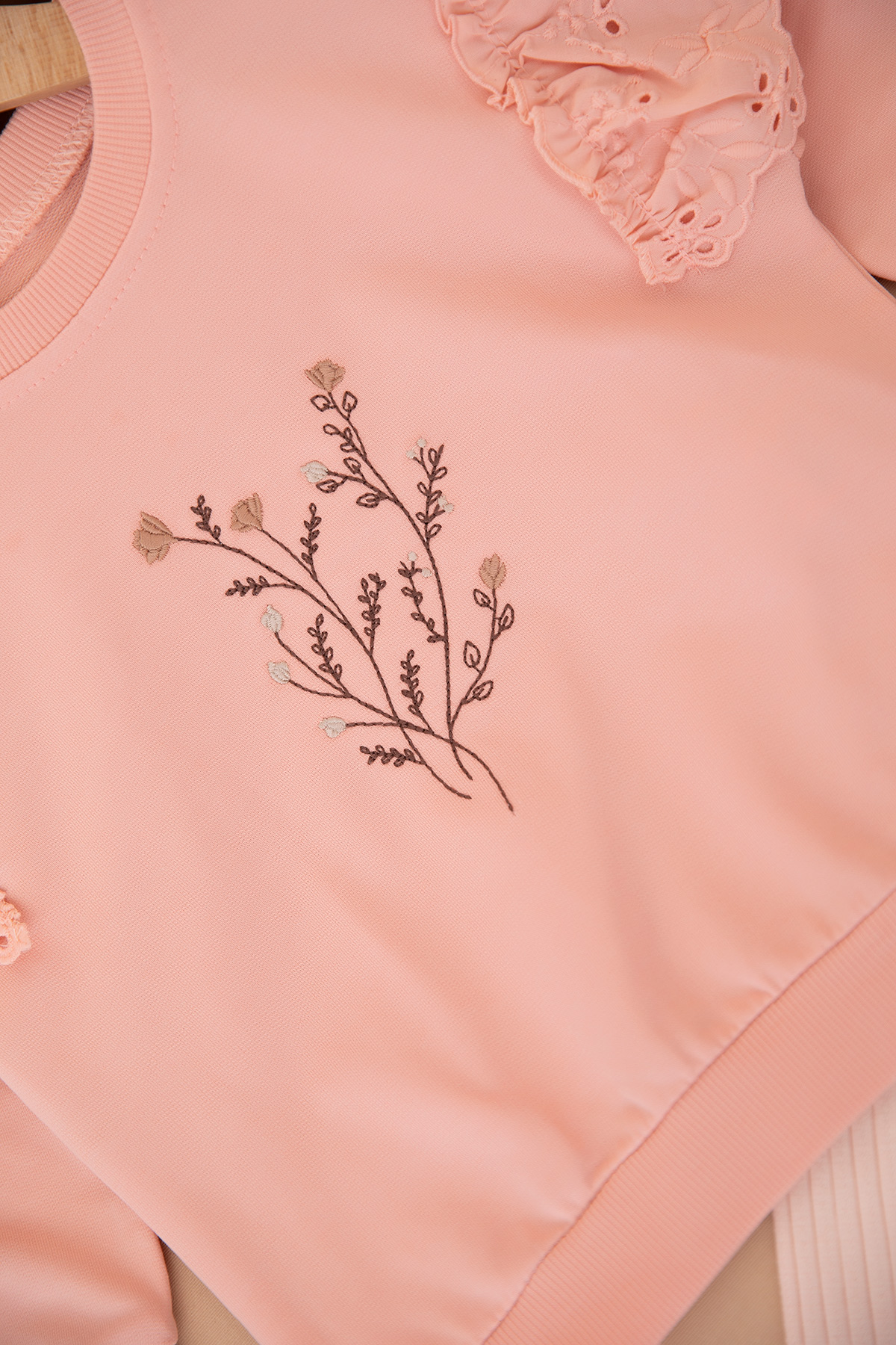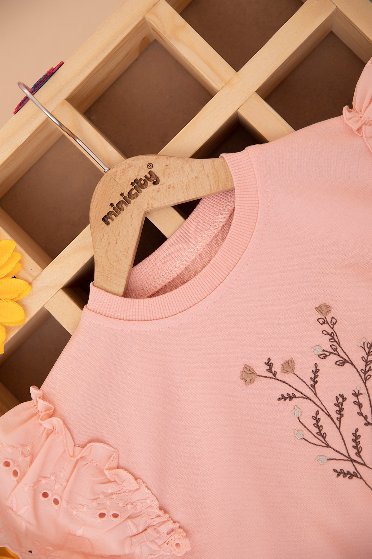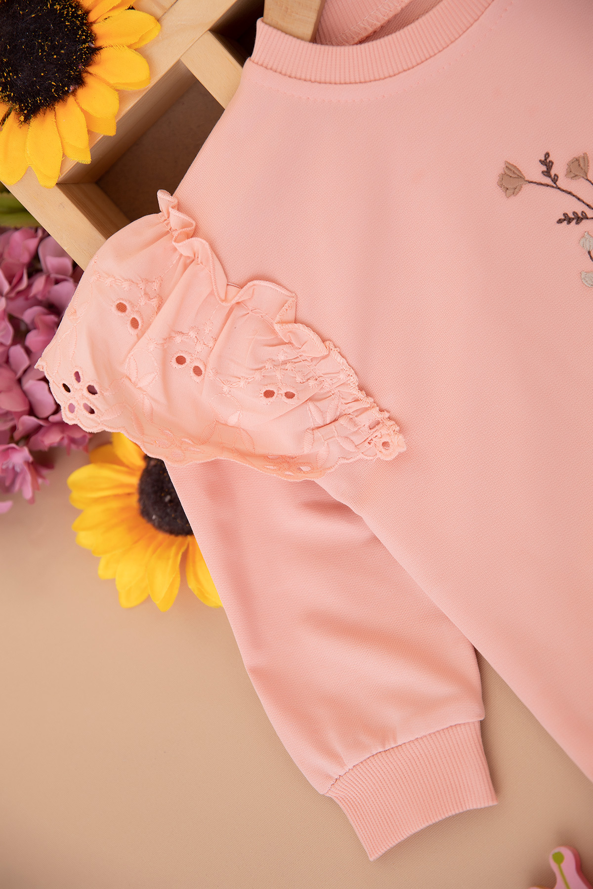 Kız Çocuk Kolları Brodeli Çiçekli Takım - 3074 (2-6 Yaş)