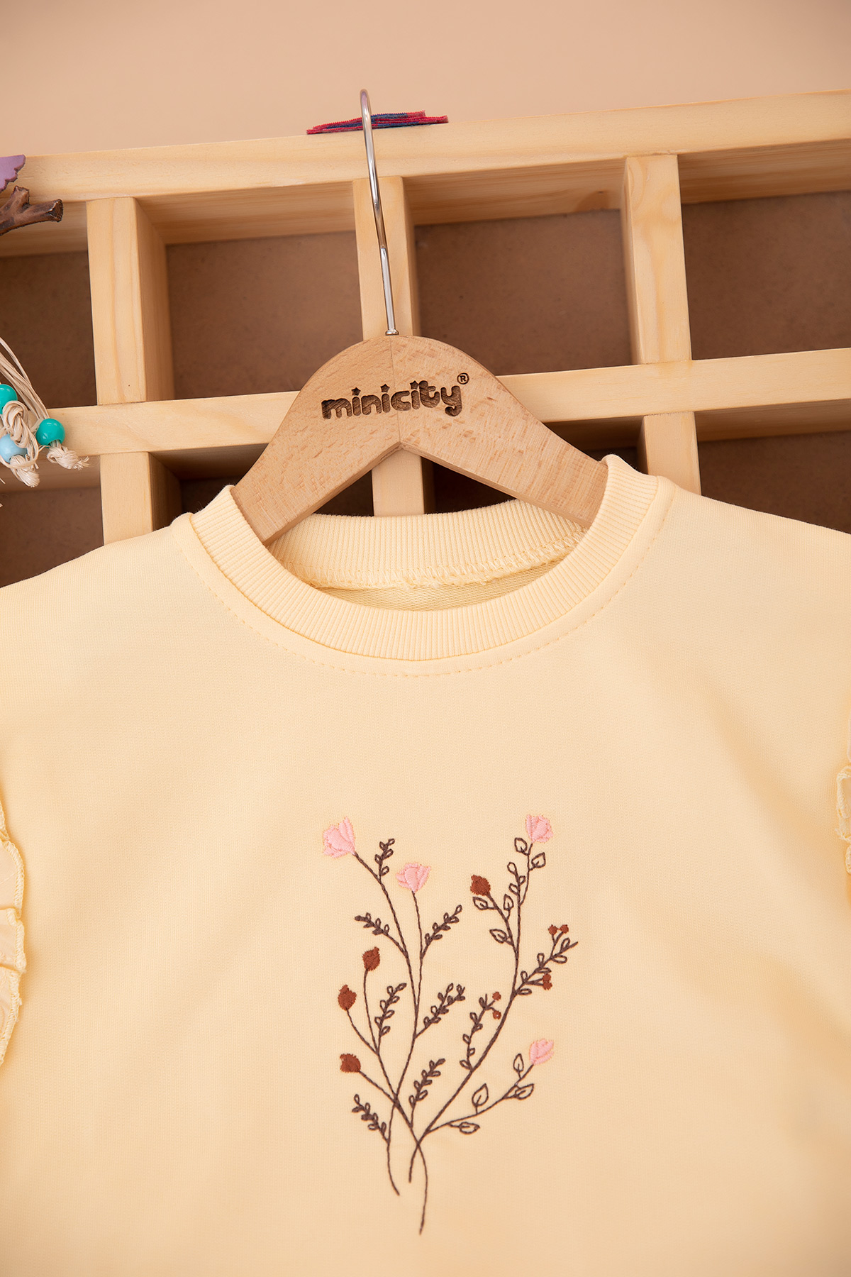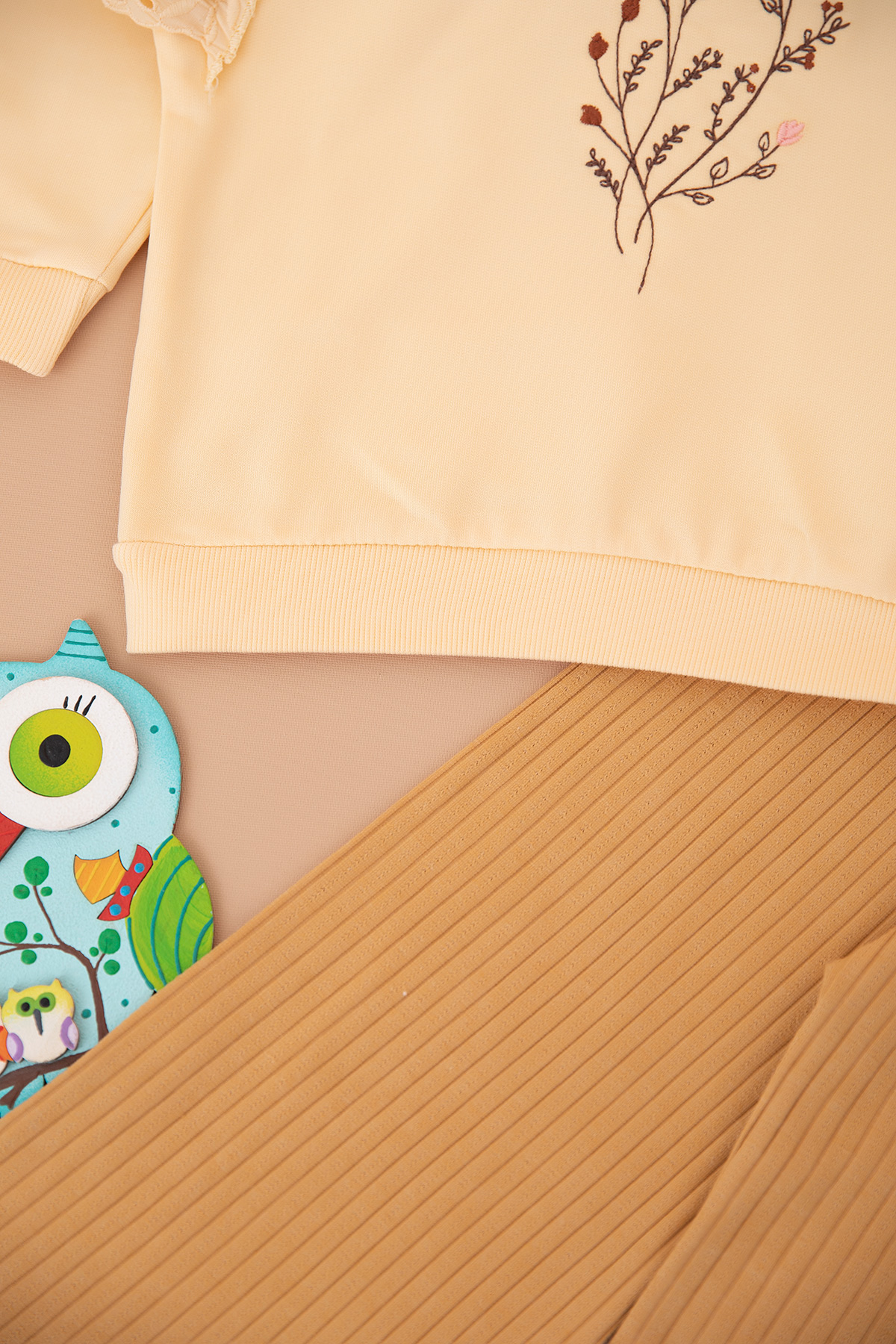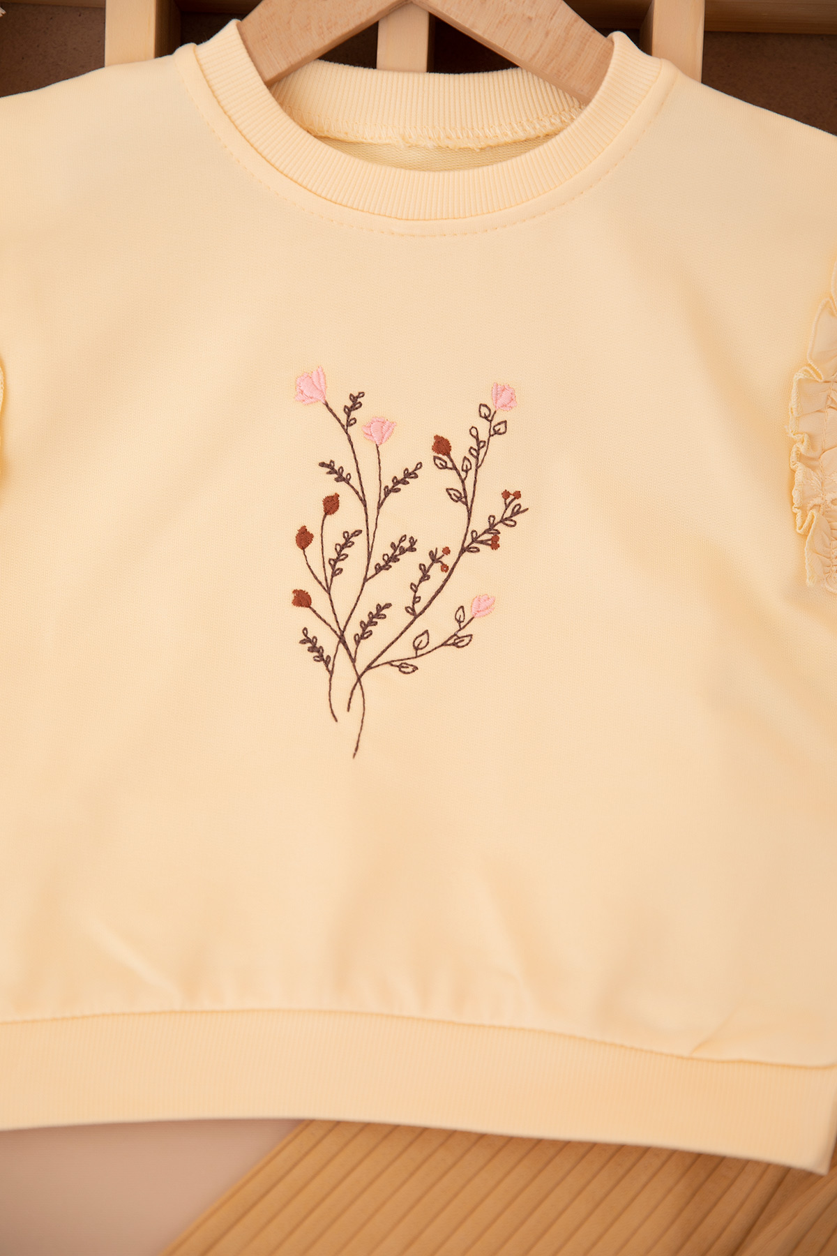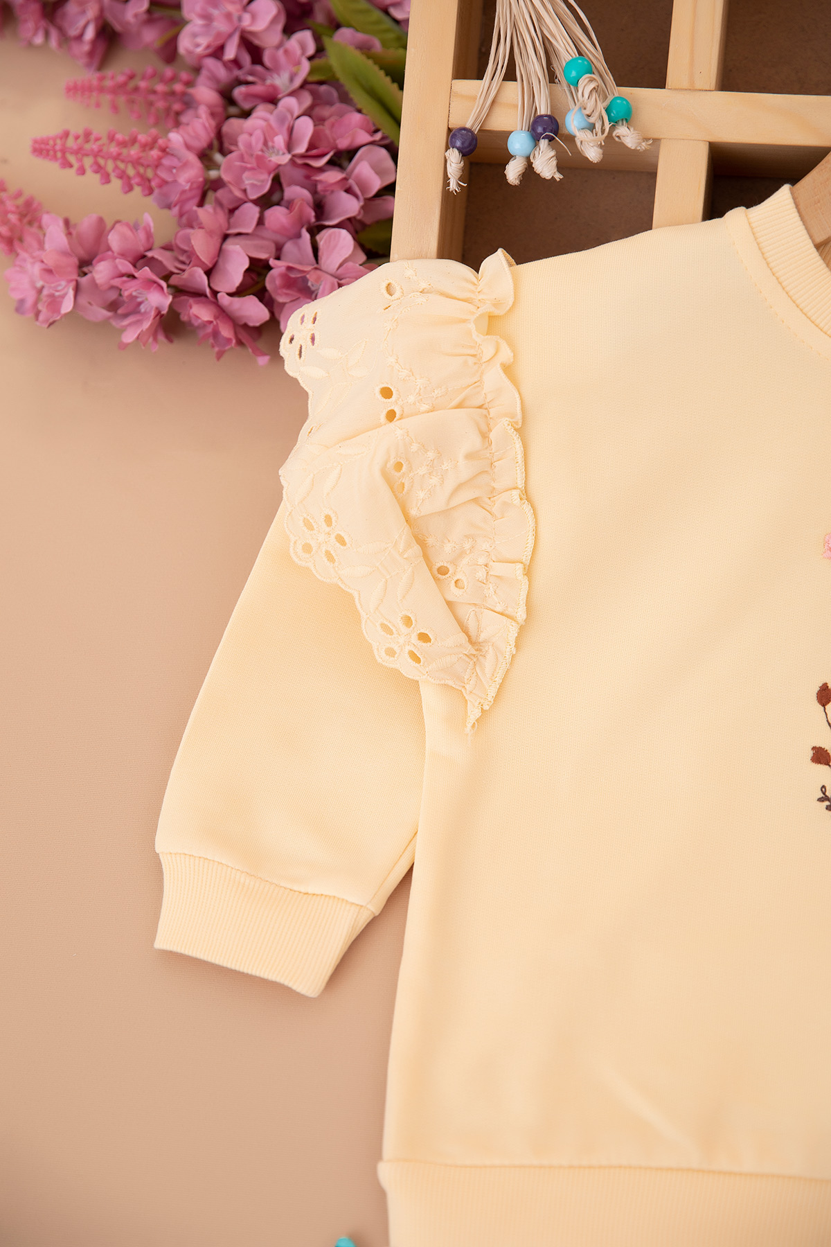 Kız Çocuk Kolları Brodeli Çiçekli Takım - 3074 (2-6 Yaş)