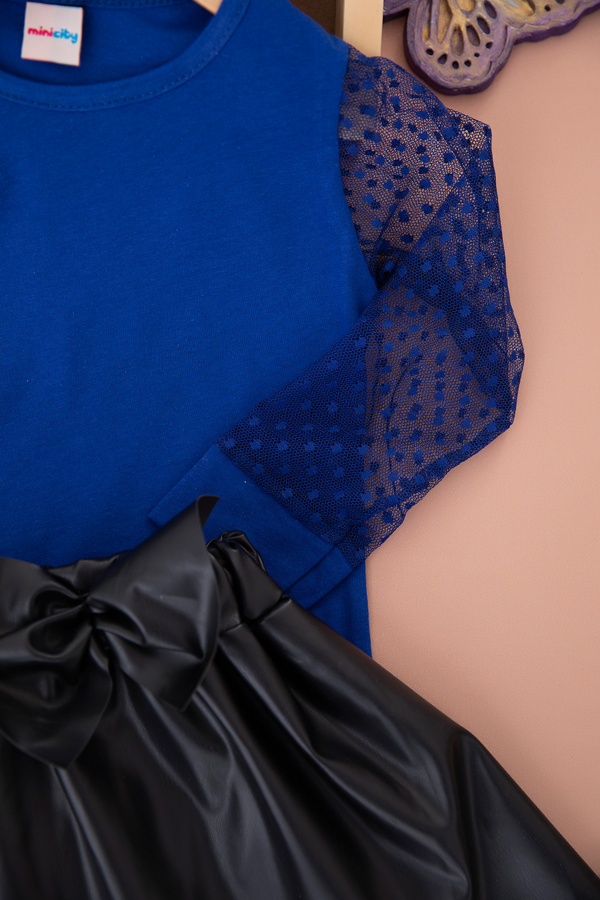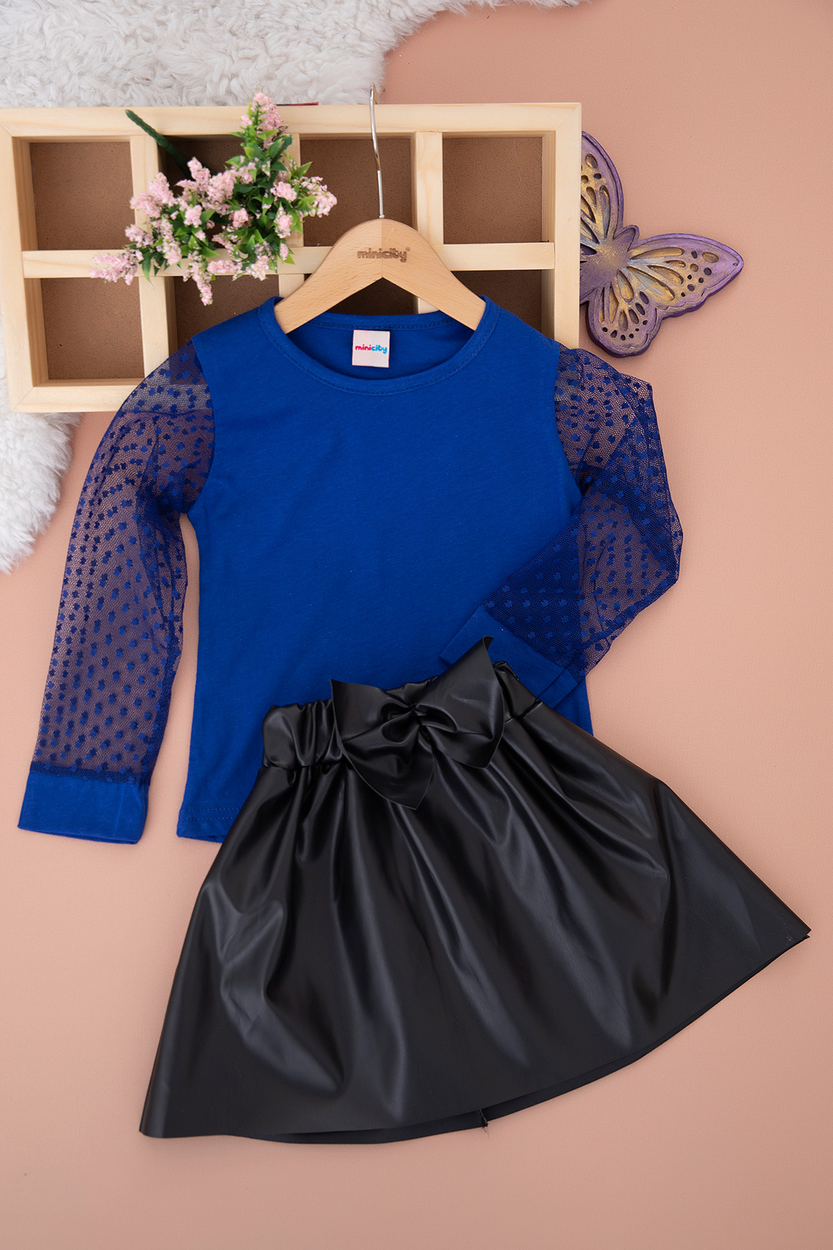 Kız Çocuk Kolları Dantelli Badi Deri Etekli Takım (3-10 Yaş)