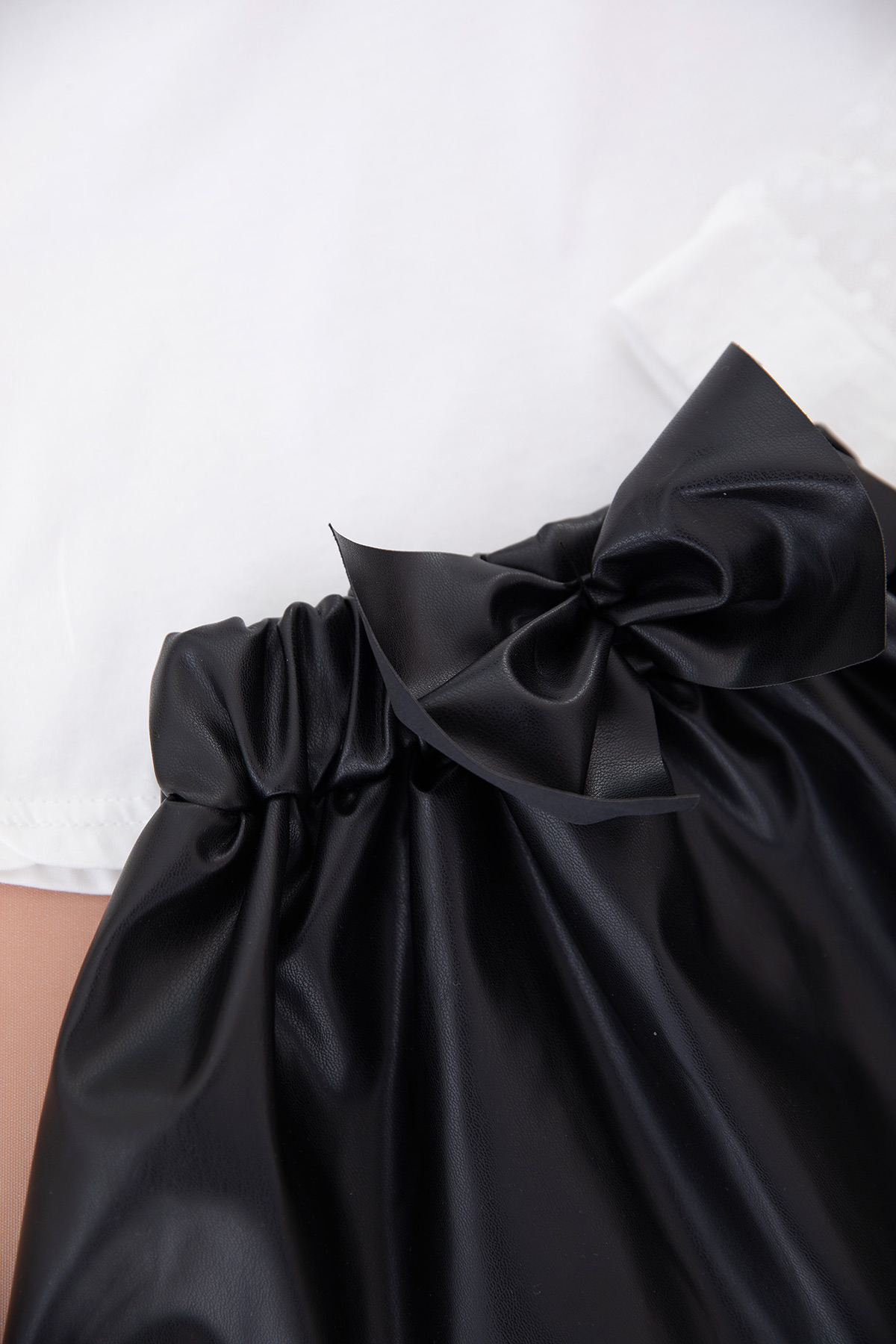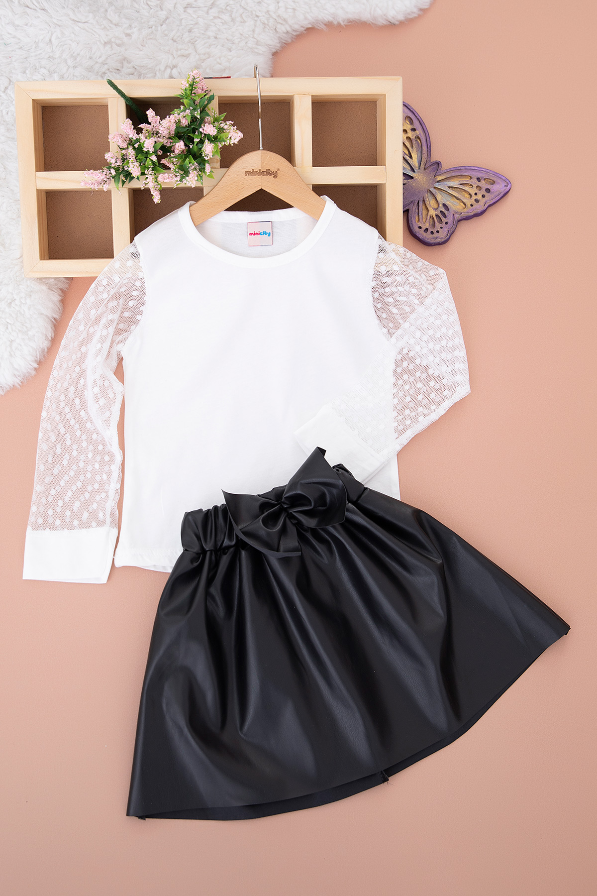 Kız Çocuk Kolları Dantelli Badi Deri Etekli Takım (3-10 Yaş)