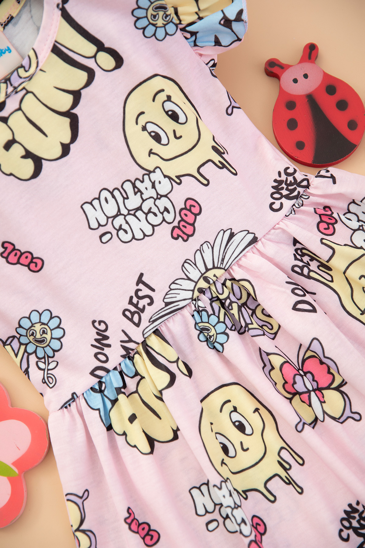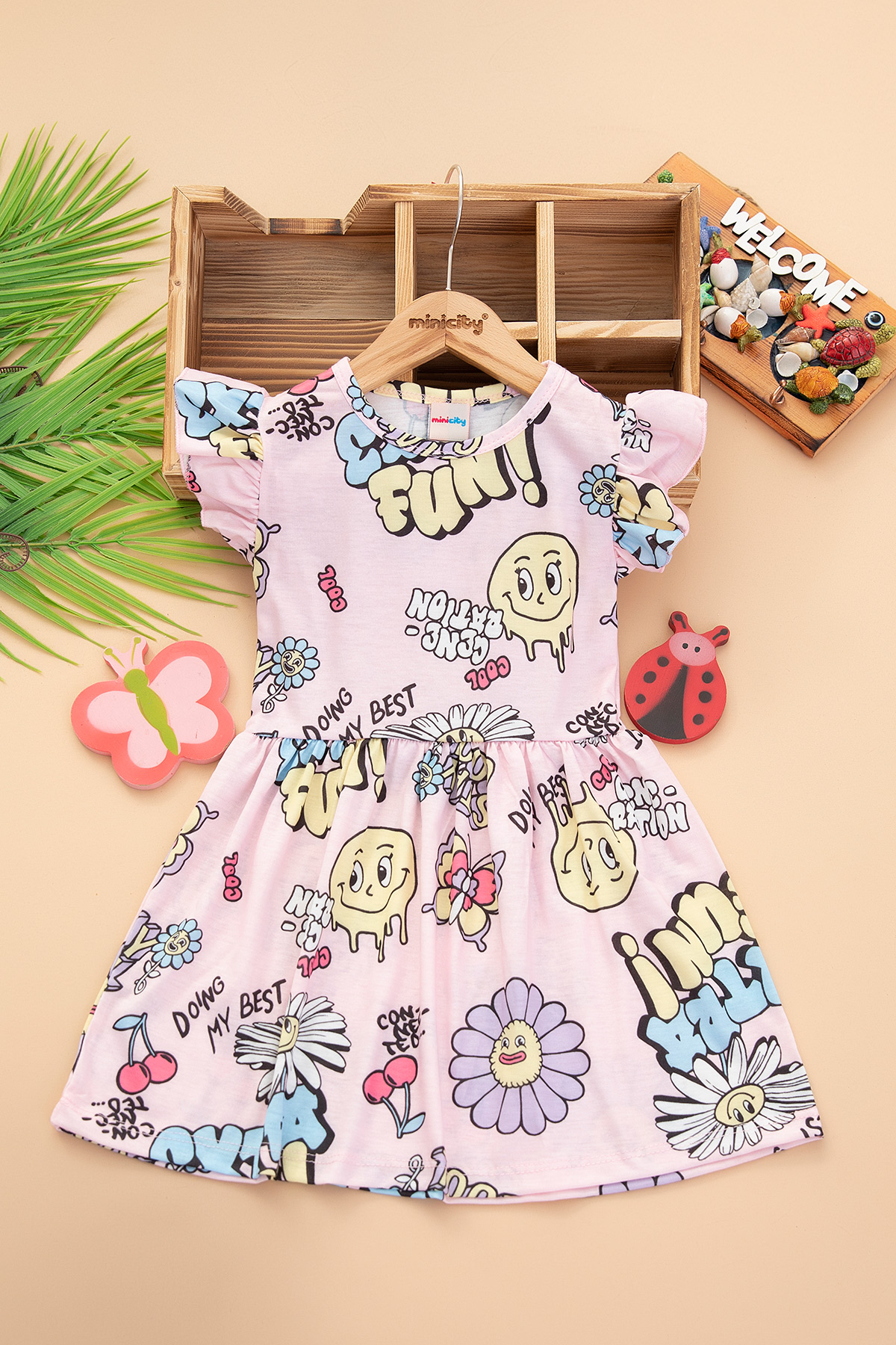 Kız Çocuk Kolları Fırfırlı Elbise - 6236 (3-10 Yaş)