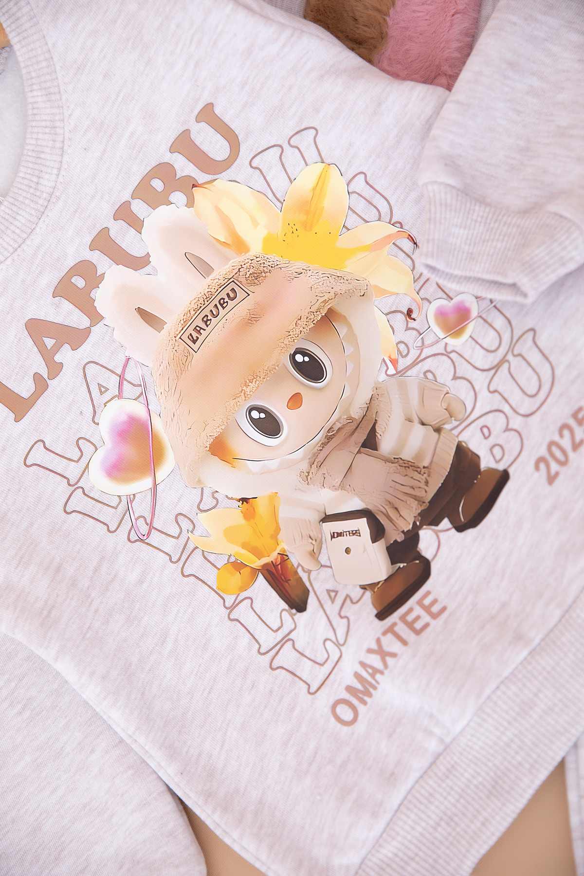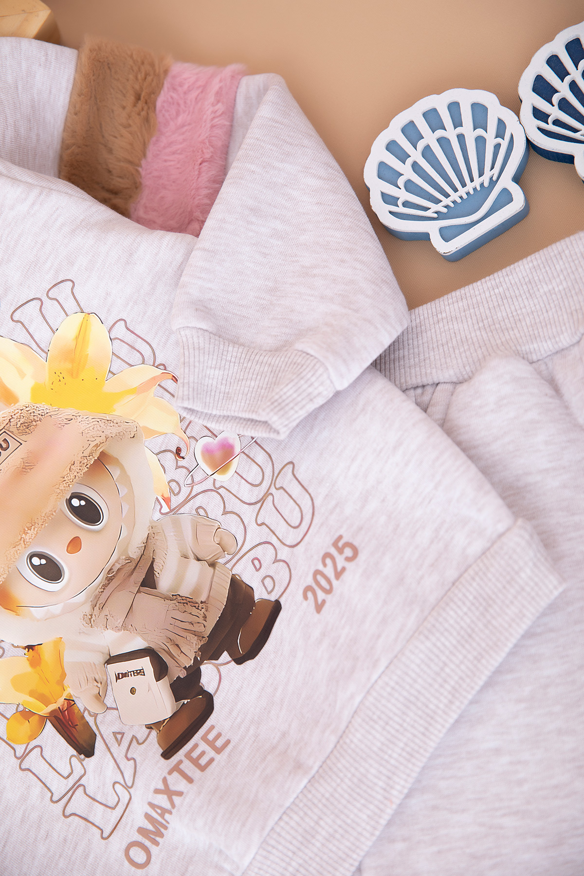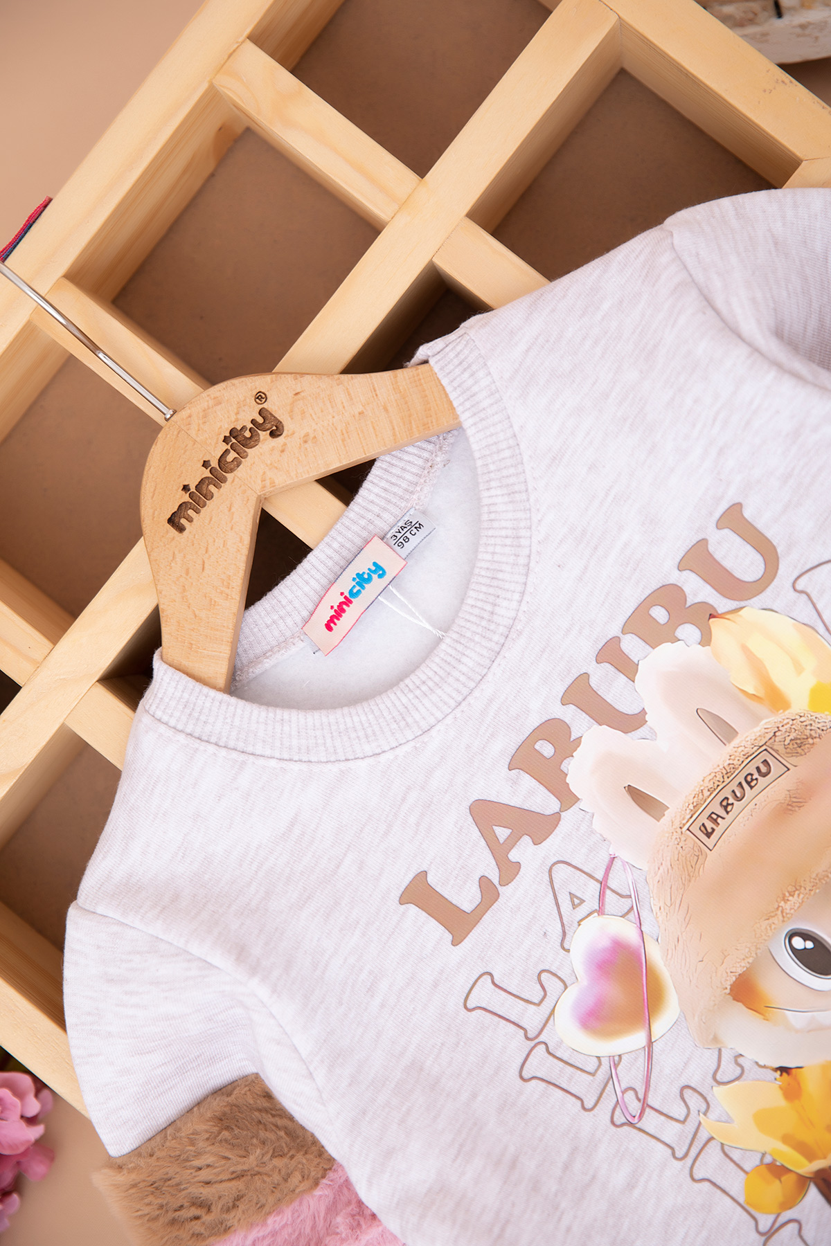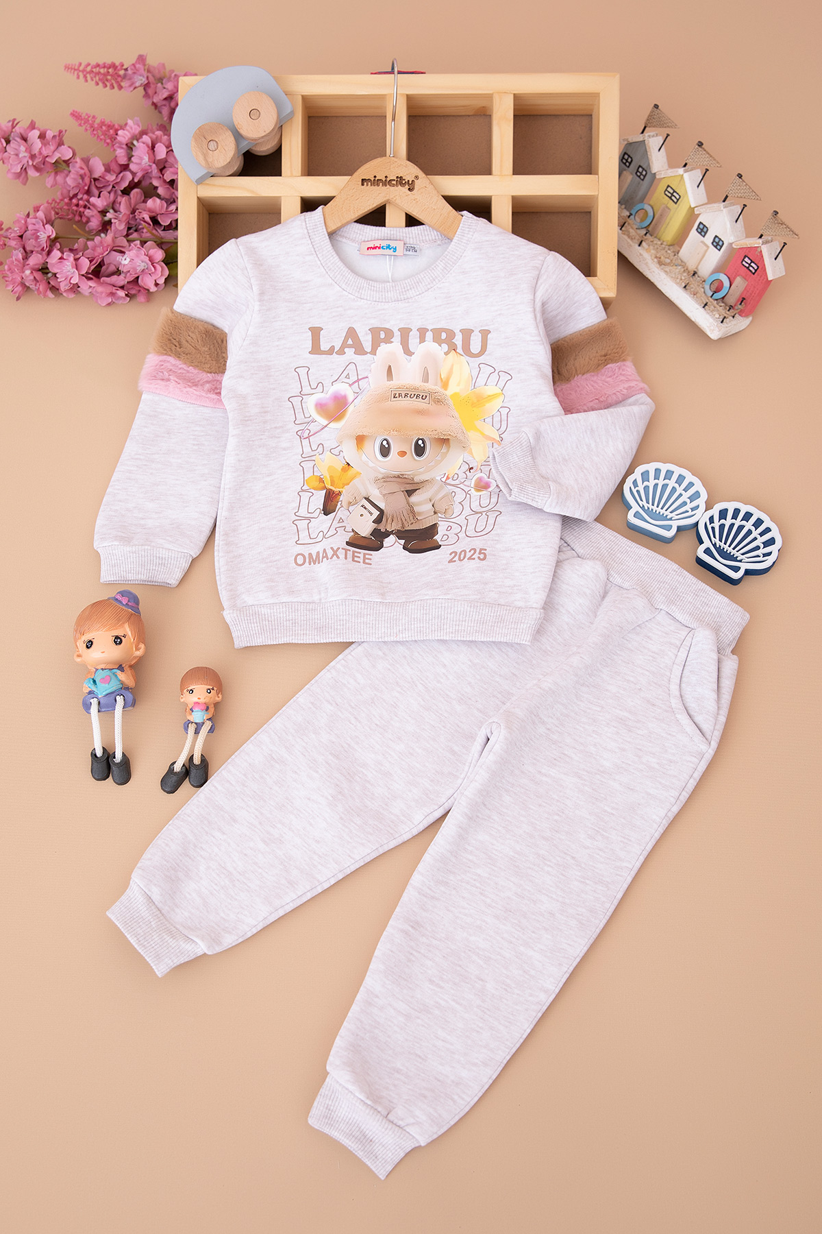 Kız Çocuk Kolları Pembe Peluş Üçip Takım - 263 (3-7 Yaş)