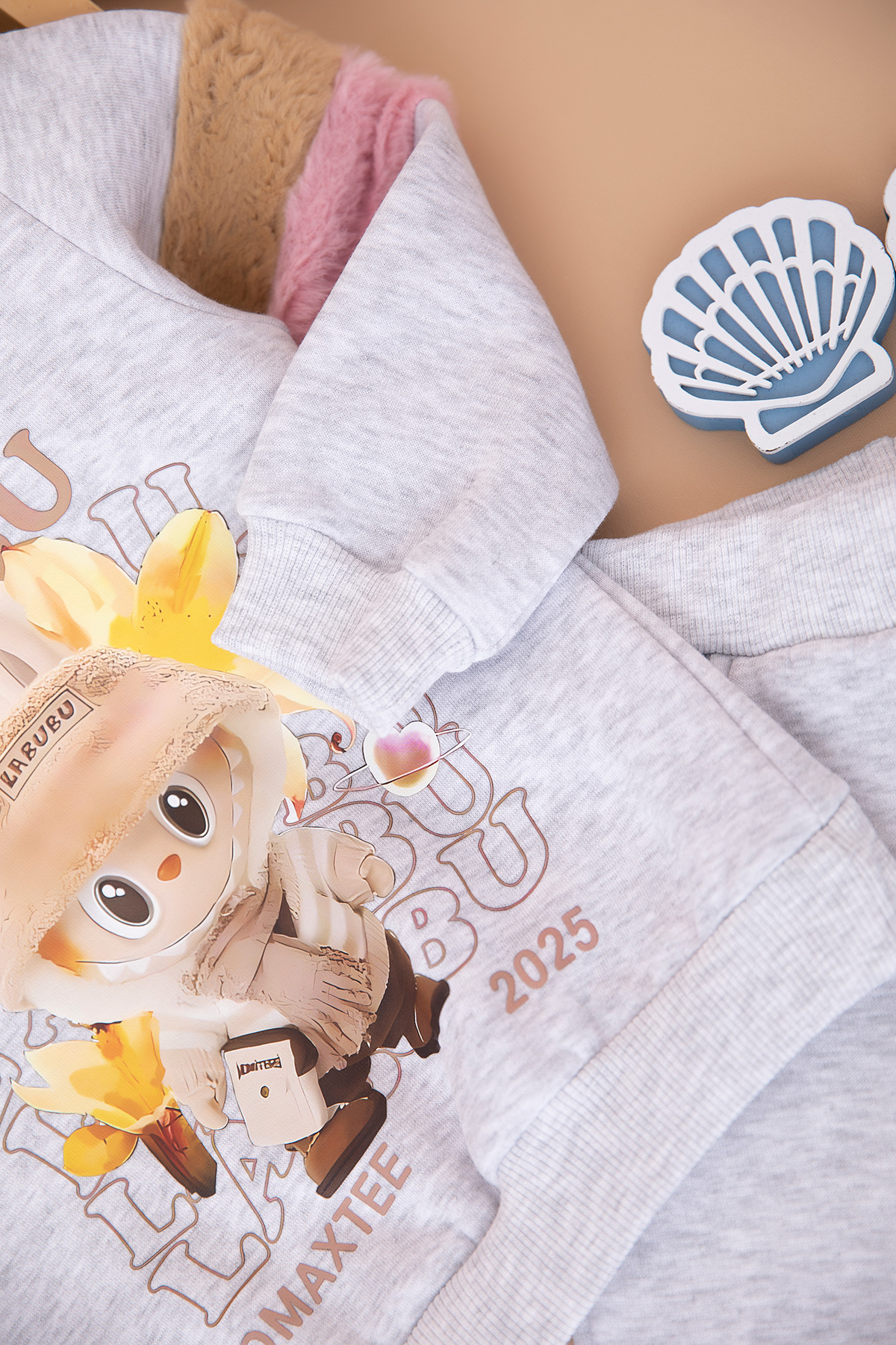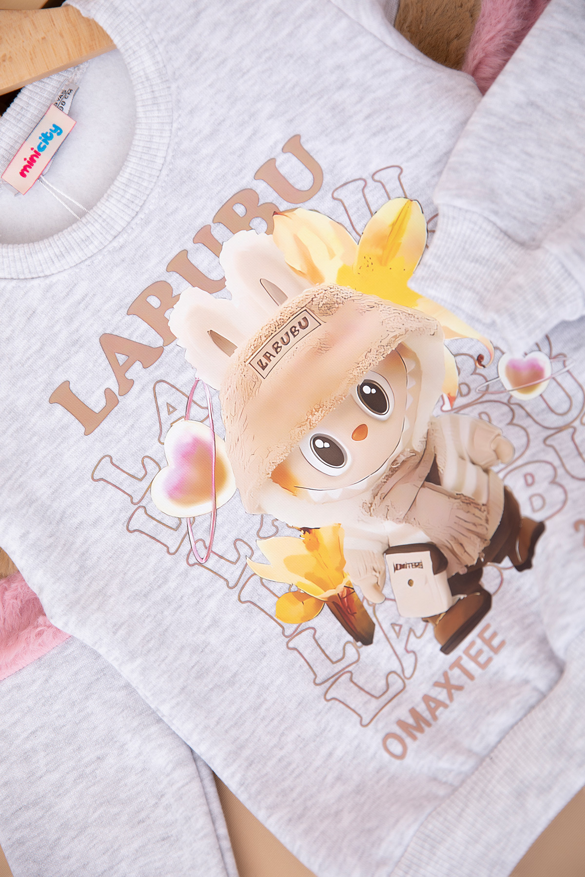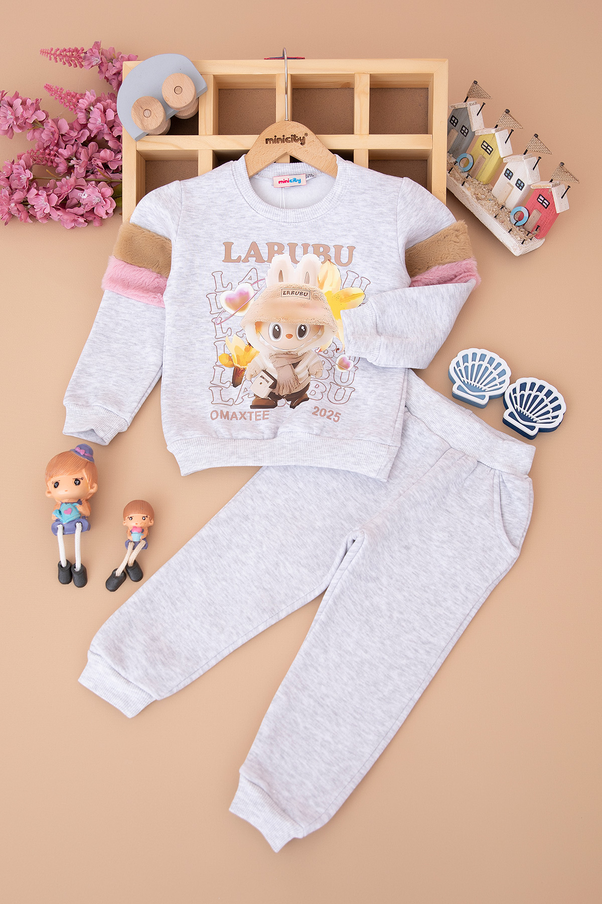 Kız Çocuk Kolları Pembe Peluş Üçip Takım - 263 (3-7 Yaş)