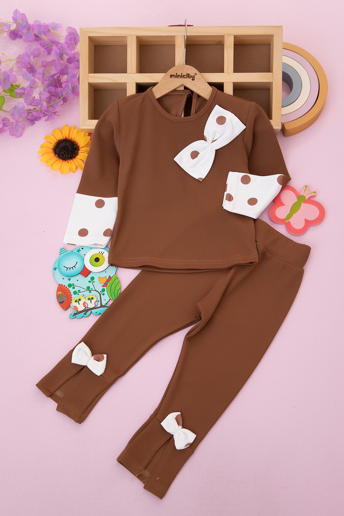 Kız Çocuk Kolları Puanlı Fiyonklu Takım - 257 (7-10 Yaş)