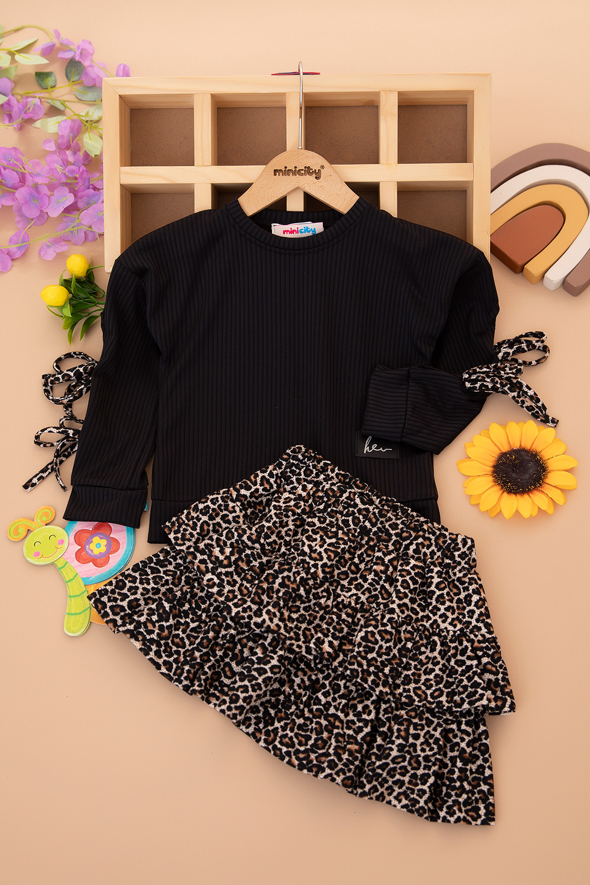 Kız Çocuk Kolu Biyeli Etekli Takım - 5525 (3-12 Yaş)