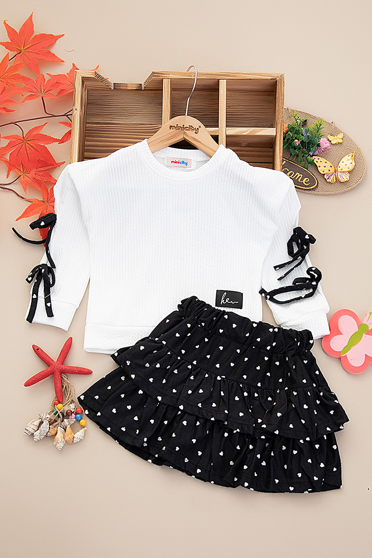 Kız Çocuk Kolu Biyeli Etekli Takım - 5525 (3-12 Yaş)