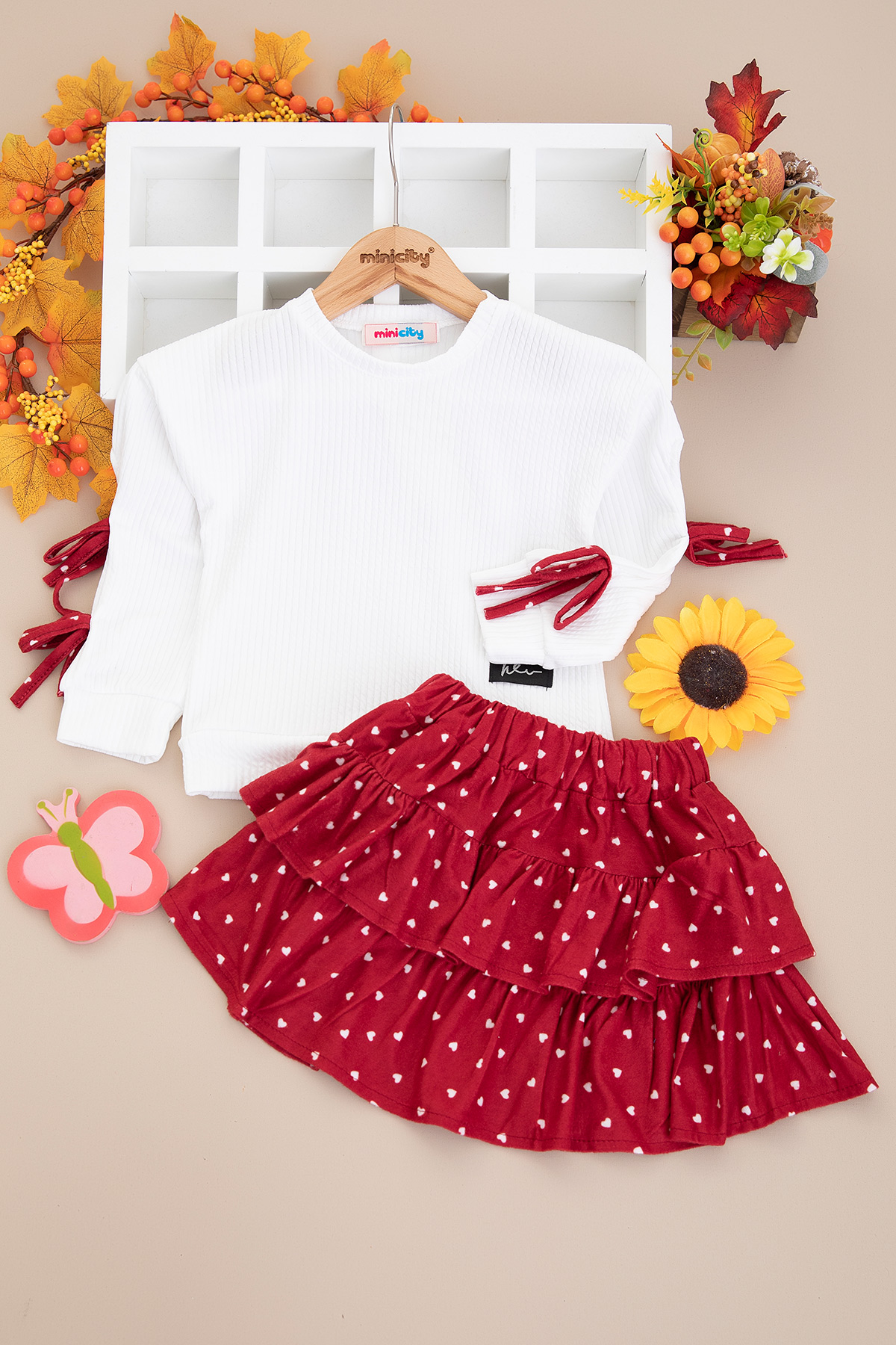 Kız Çocuk Kolu Biyeli Etekli Takım - 5525 (3-12 Yaş)