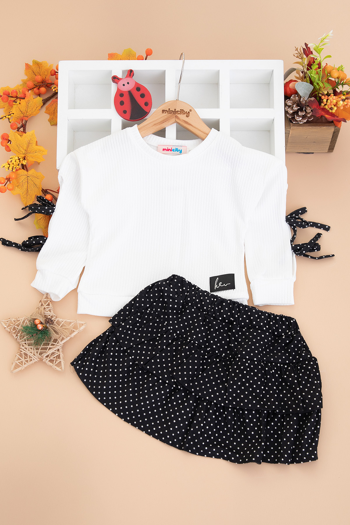 Kız Çocuk Kolu Biyeli Etekli Takım - 5525 (3-12 Yaş)